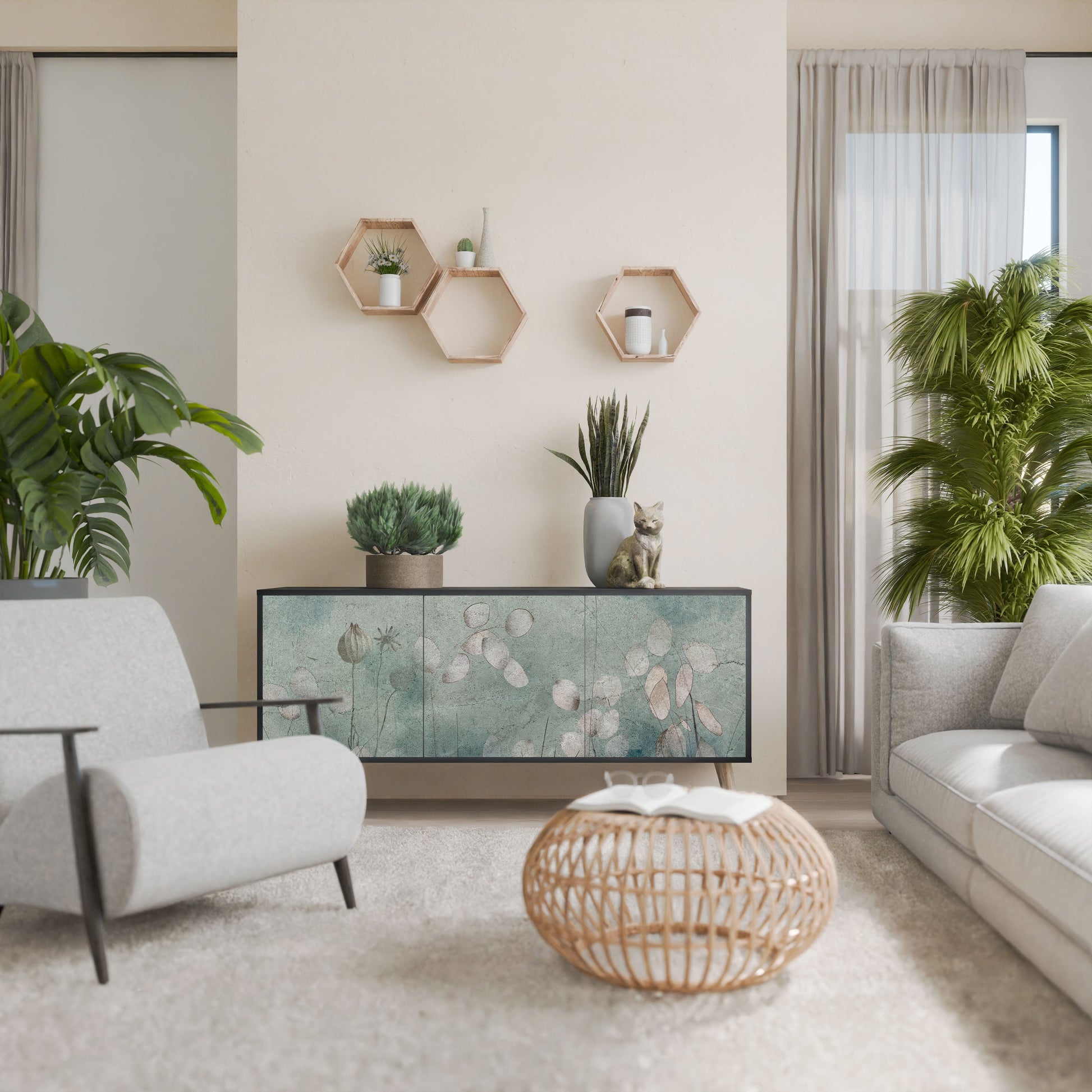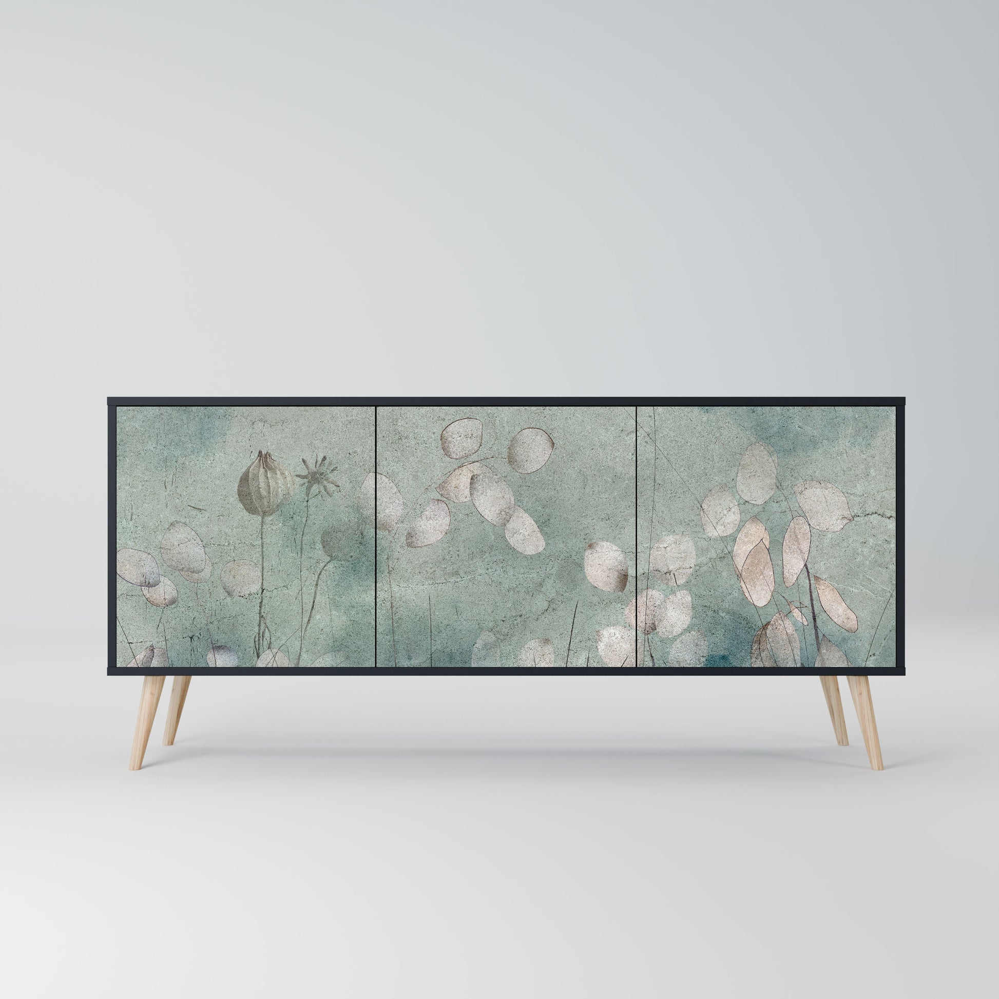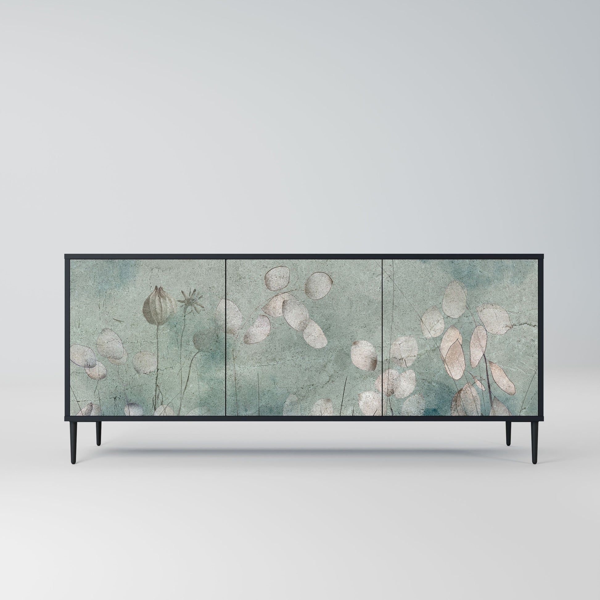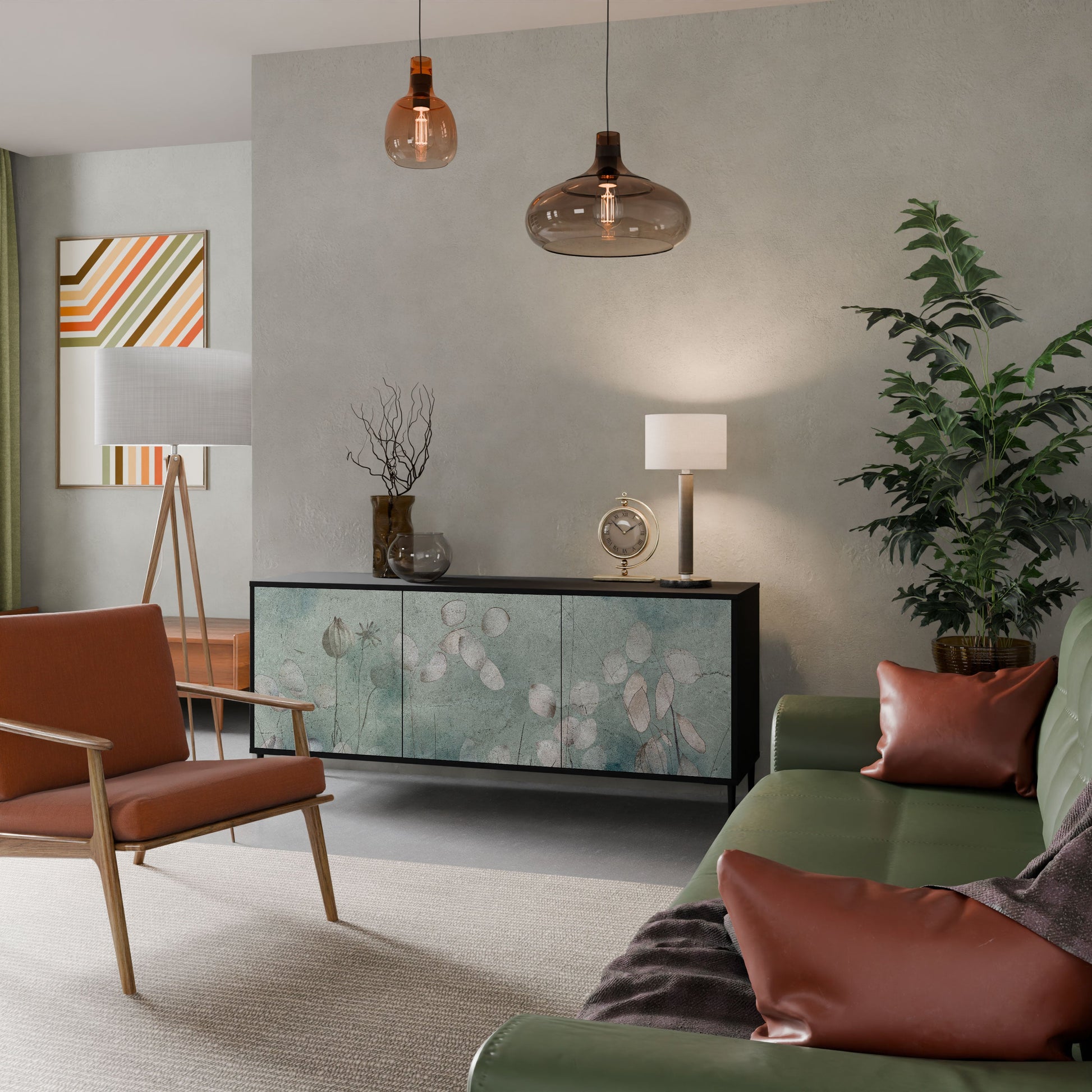 Eleganza e funzionalità in un unico mobile: la nostra credenza a 3 ante con corpo nero è la soluzione perfetta per gli amanti degli interni eleganti e moderni. Il corpo nero enfatizza il carattere audace del mobile, mentre i frontali con una stampa unica aggiungono un tocco artistico. Si adatta perfettamente al soggiorno, alla camera da letto o all'ufficio, completando sia gli arrangiamenti moderni che quelli industriali.