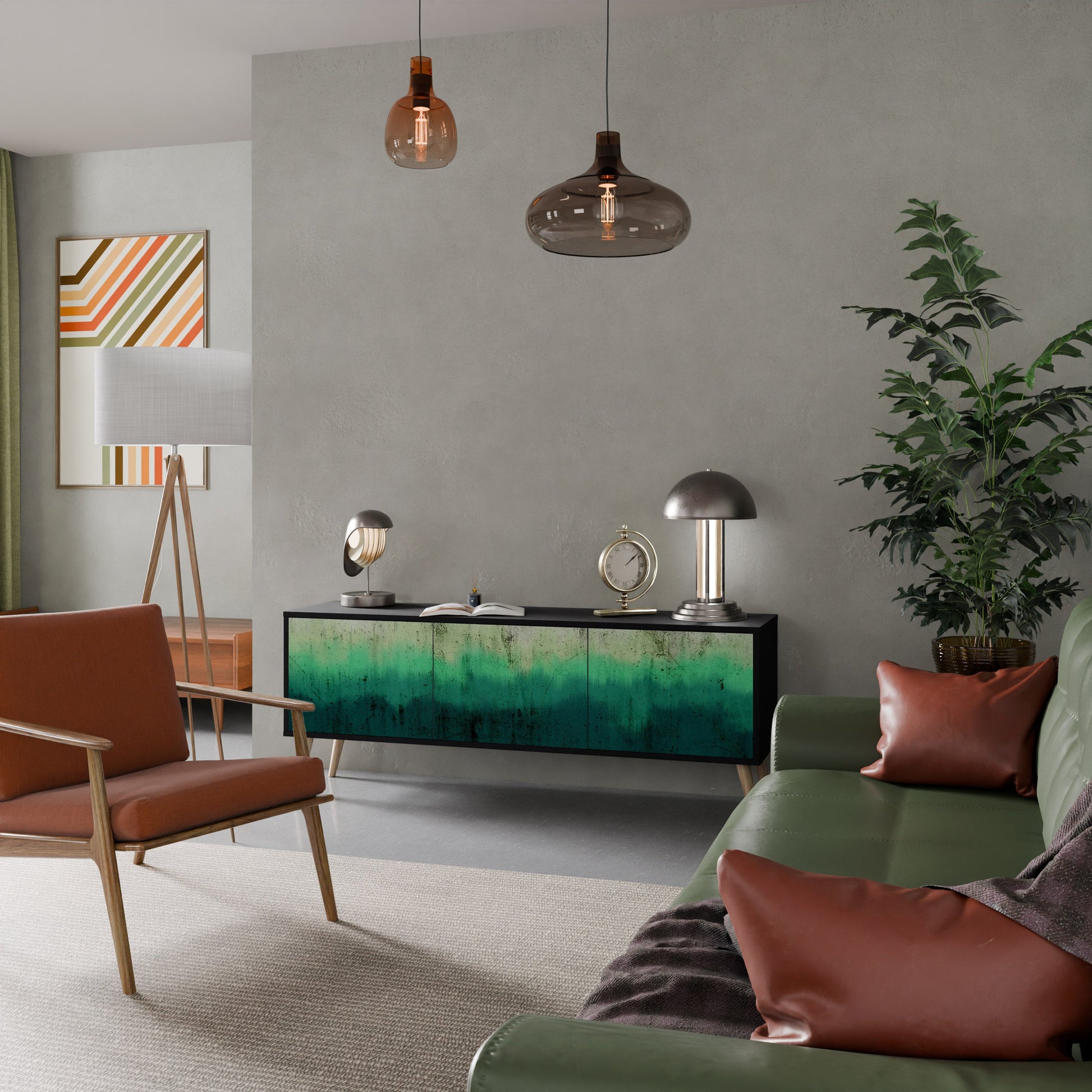 Il corpo nero del supporto crea un accento audace e moderno che si abbina magnificamente ad allestimenti industriali e minimalisti. I frontali con una stampa di design aggiungono carattere e unicità, rendendo questo pezzo non solo pratico ma anche un elemento decorativo di spicco.