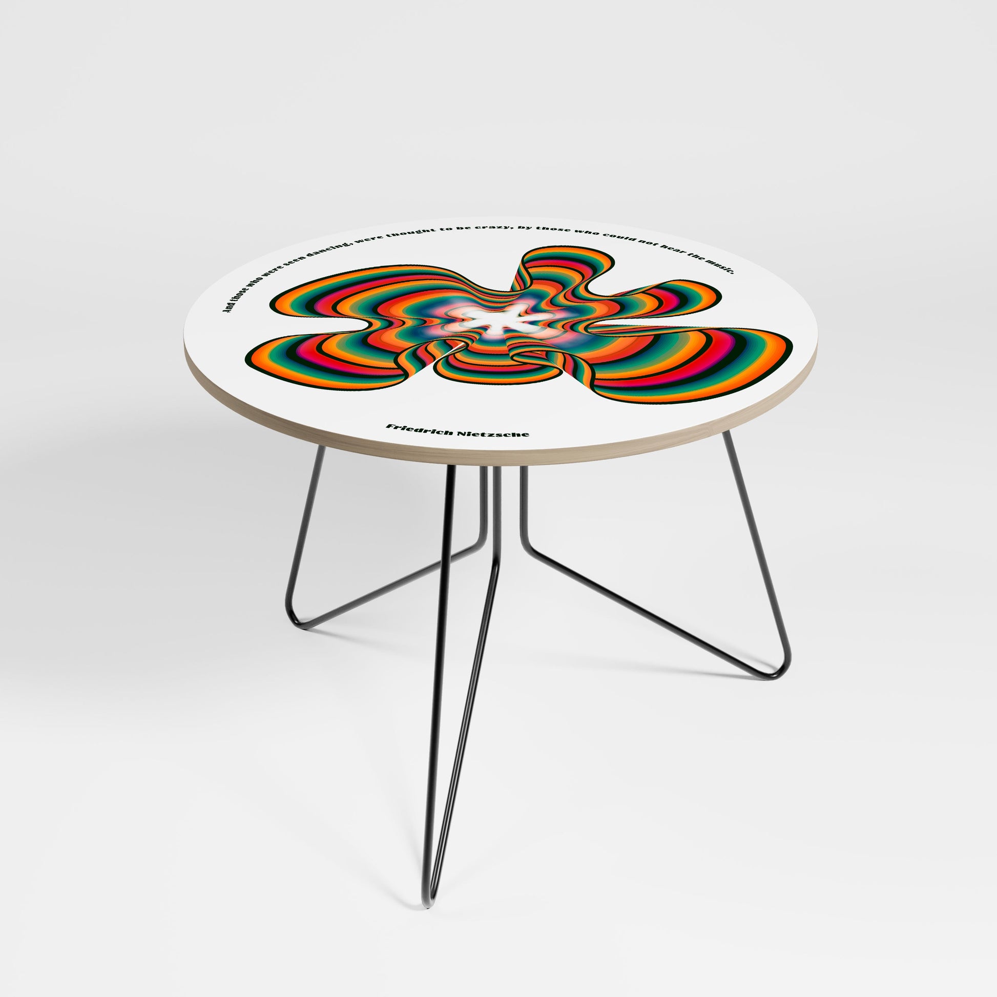 Il piano del tavolo presenta un motivo stampato di alta qualità, che aggiunge un tocco artistico distintivo al tuo spazio. Realizzato in resistente truciolato rivestito in laminato, garantisce un utilizzo duraturo e resistenza all'usura quotidiana.