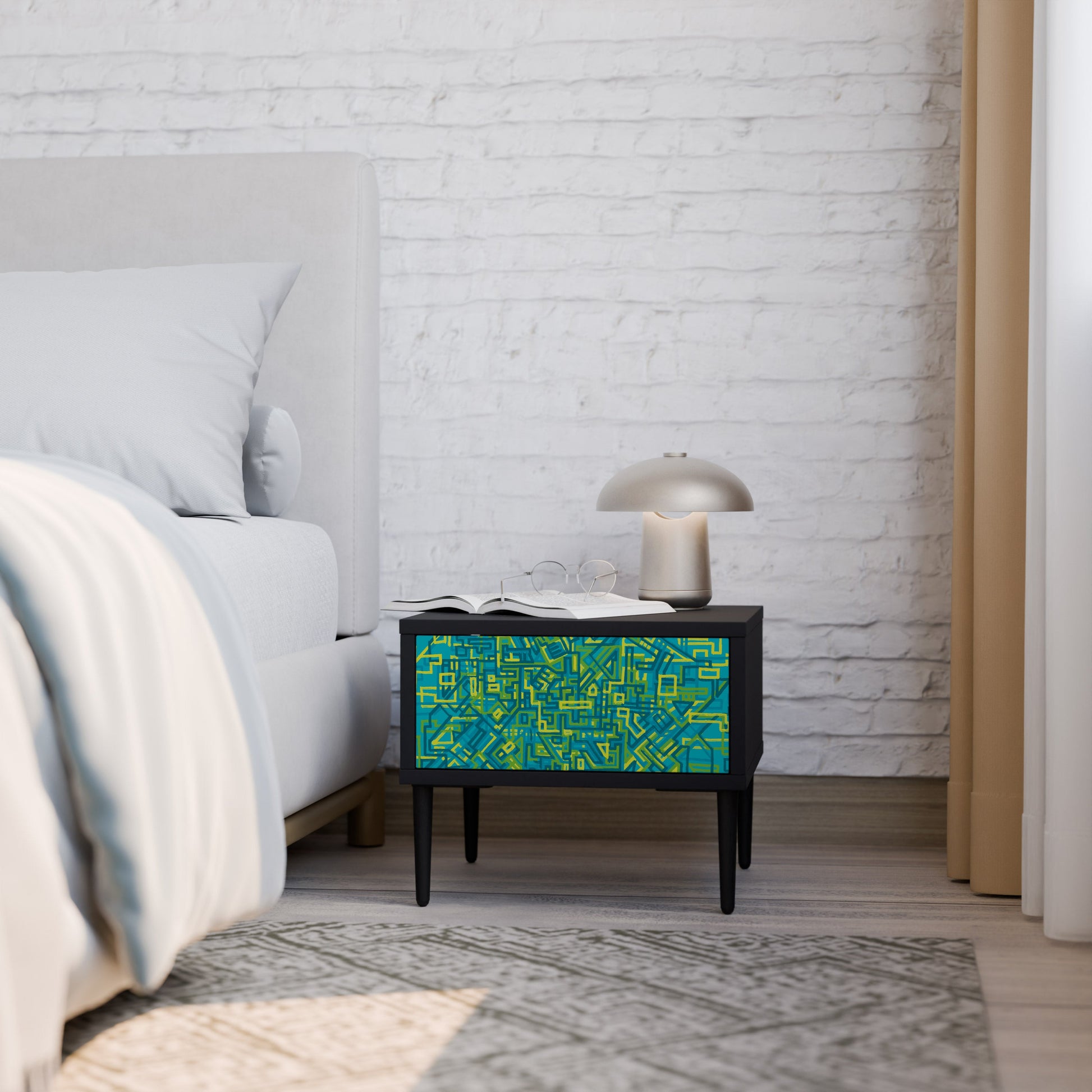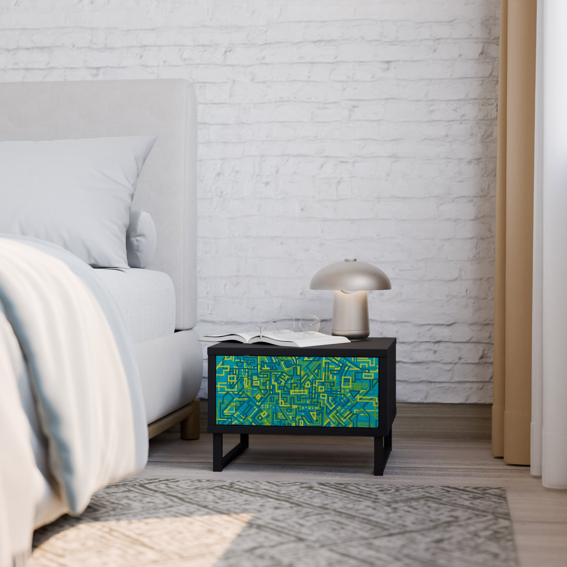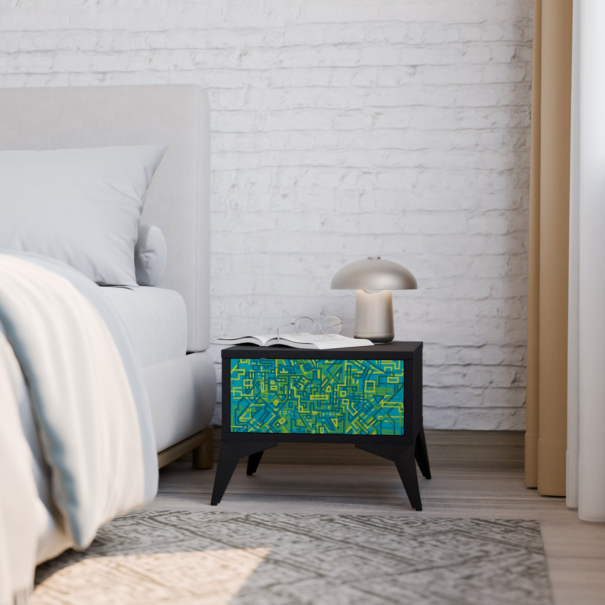 Scoprite raffinatezza e praticità in un design compatto con il nostro comodino con cassetto in un'elegante finitura nera. Questo mobile elegante e funzionale fonde stile contemporaneo e design minimalista, diventando un'aggiunta di grande impatto a qualsiasi camera da letto.