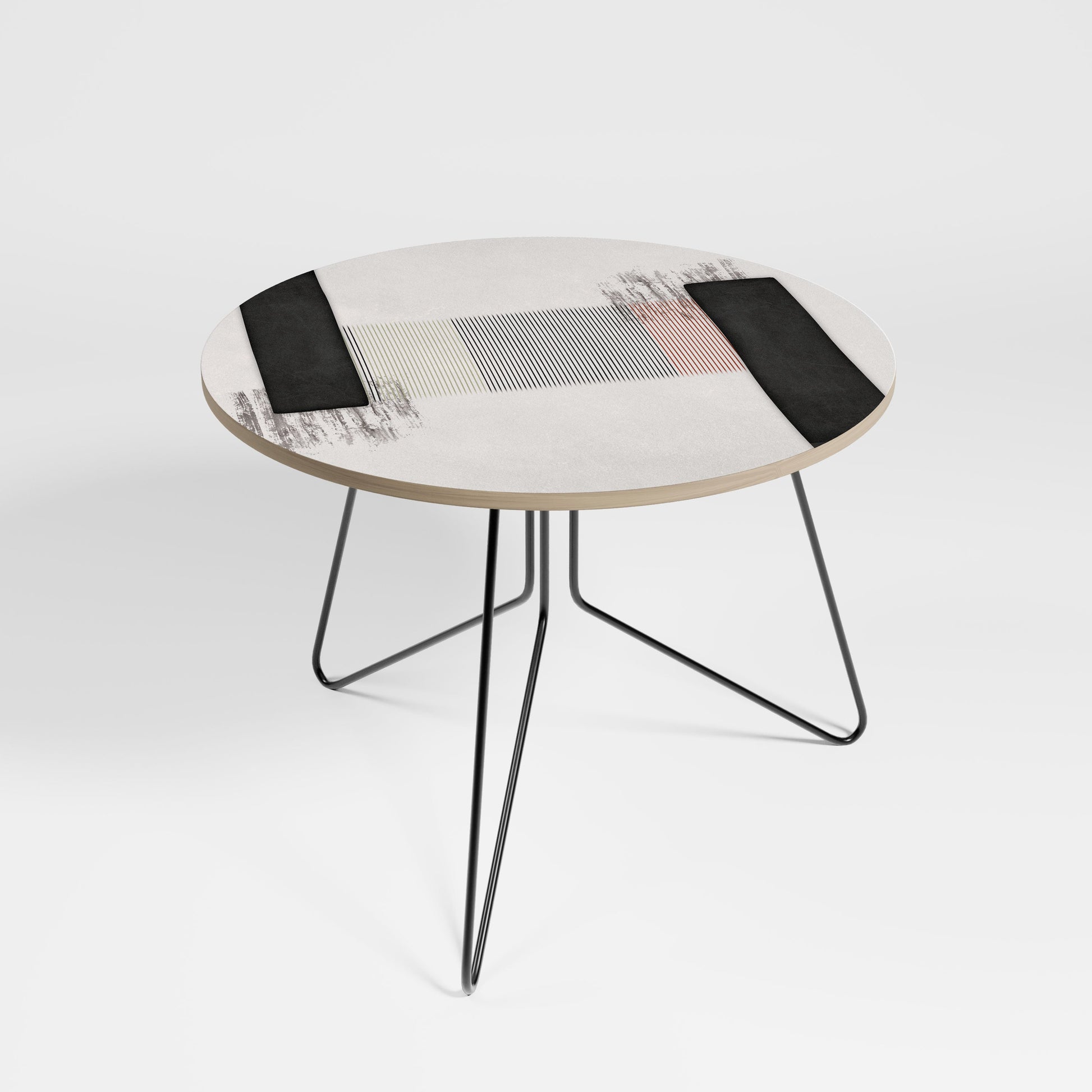 Il piano del tavolo presenta un motivo stampato di alta qualità, che aggiunge un tocco artistico distintivo al tuo spazio. Realizzato in resistente truciolato rivestito in laminato, garantisce un utilizzo duraturo e resistenza all'usura quotidiana.