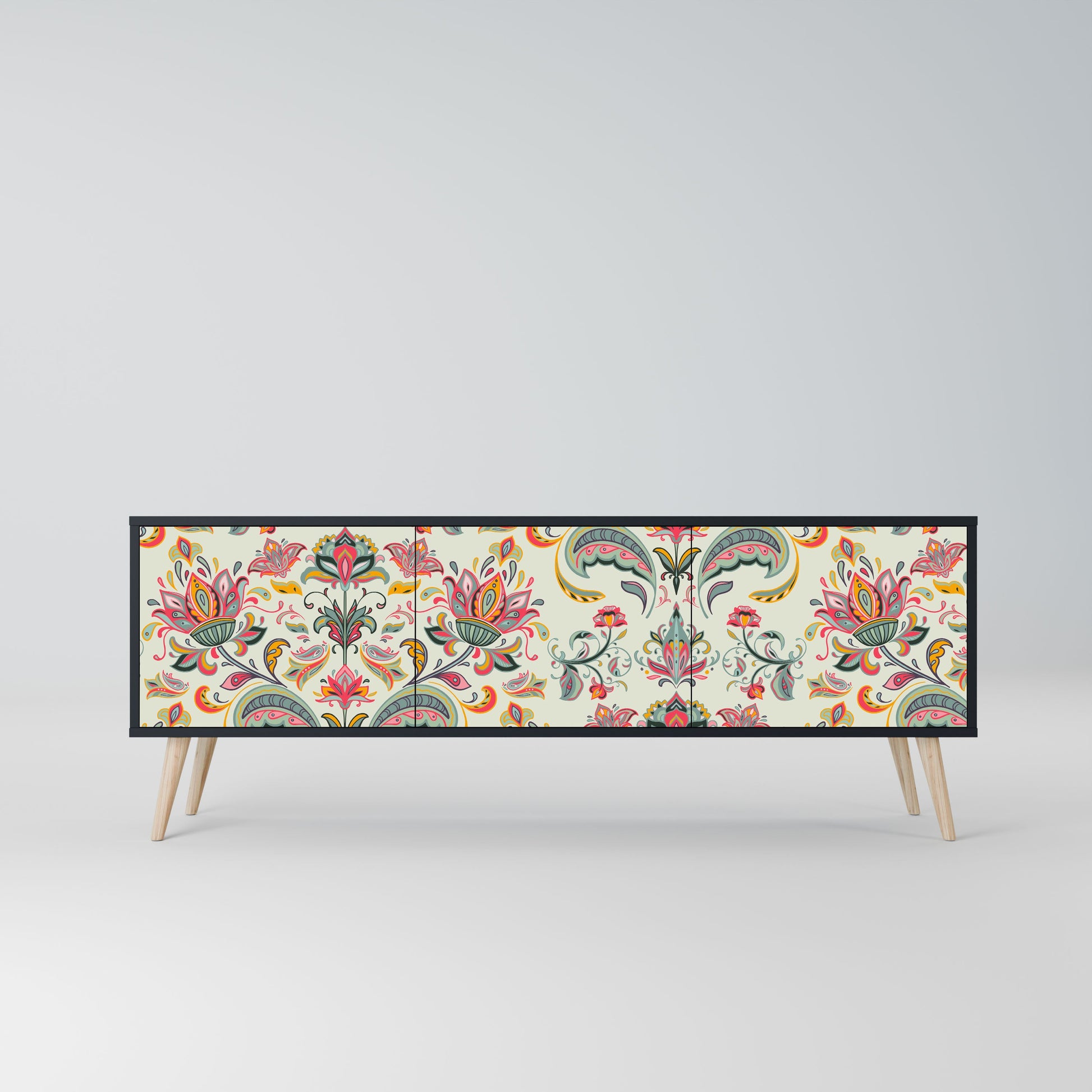 Mobile TV ORGANIC FOLKLORE a 3 ante con finitura nera