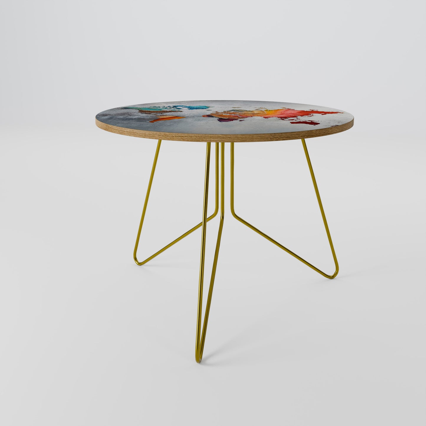 - Gambe con pinna dorata / Bordo del piano del tavolo effetto rovere