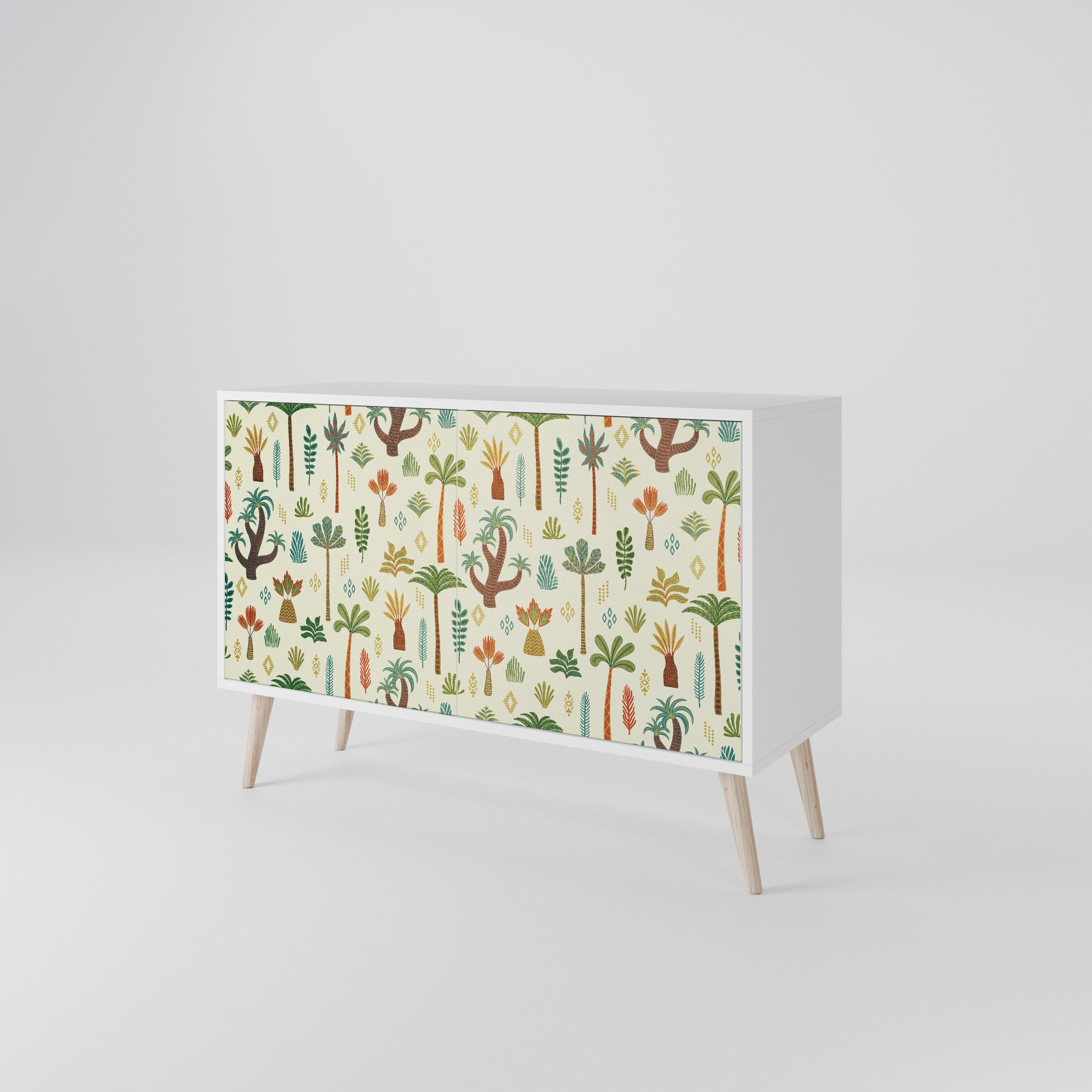 Eleganza e funzionalità in un unico mobile: la nostra madia a 2 ante con corpo bianco è la soluzione perfetta per gli amanti degli interni eleganti e moderni. Il corpo bianco sottolinea il carattere pulito e raffinato del mobile, mentre i frontali con una stampa unica aggiungono un tocco artistico. Si adatta perfettamente al soggiorno, alla camera da letto o all'ufficio, integrandosi con composizioni moderne e scandinave.