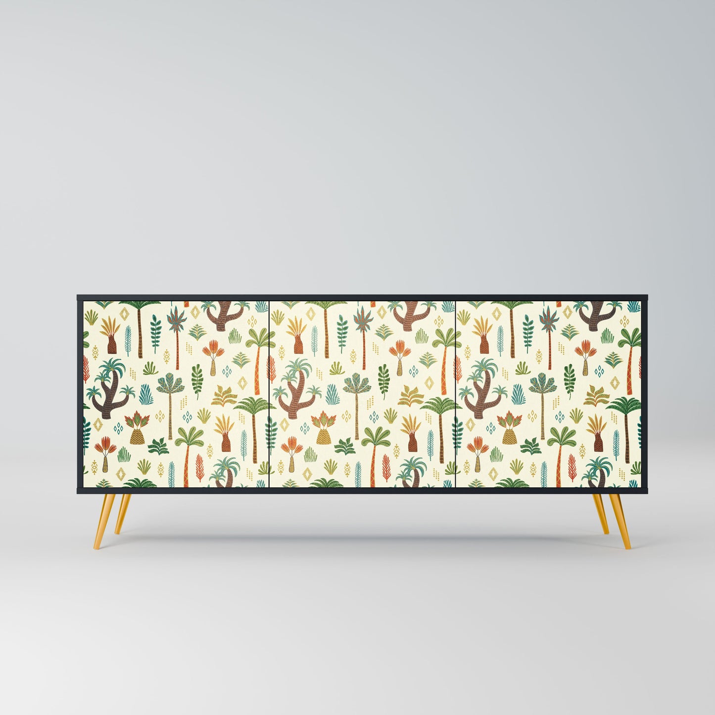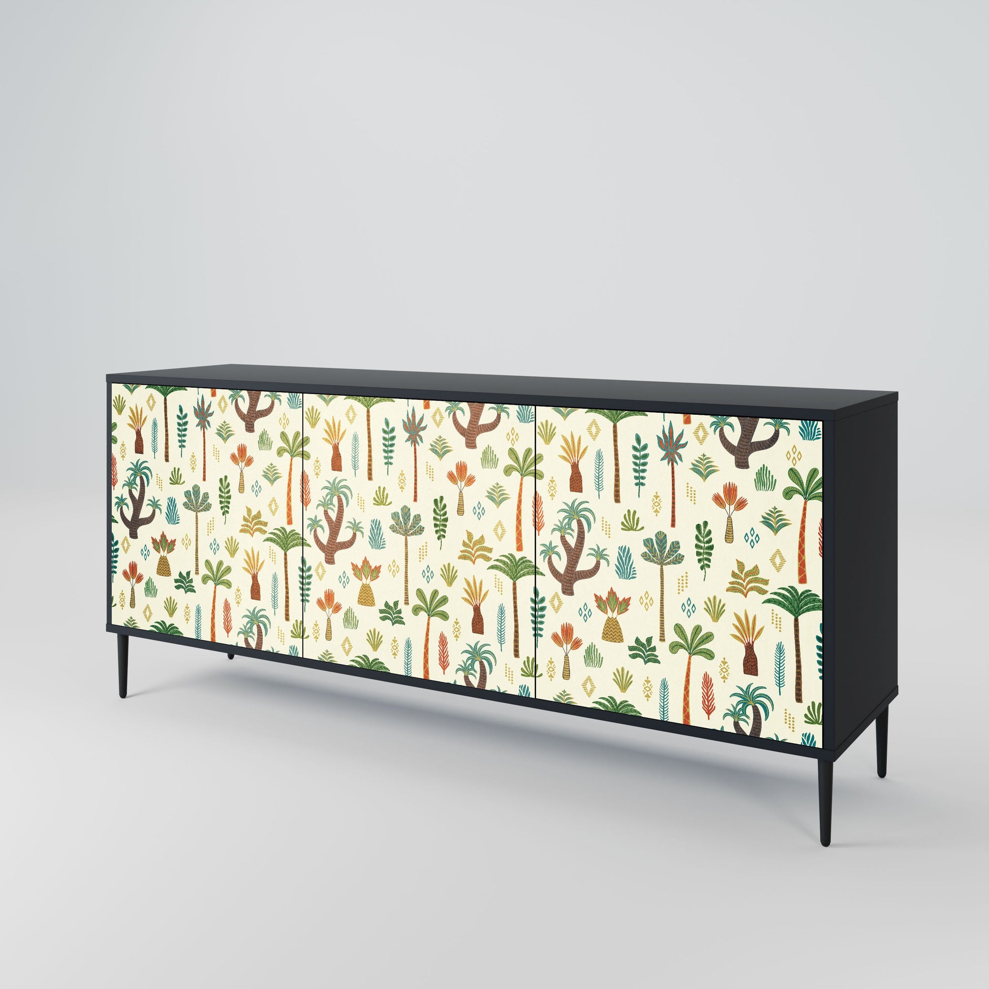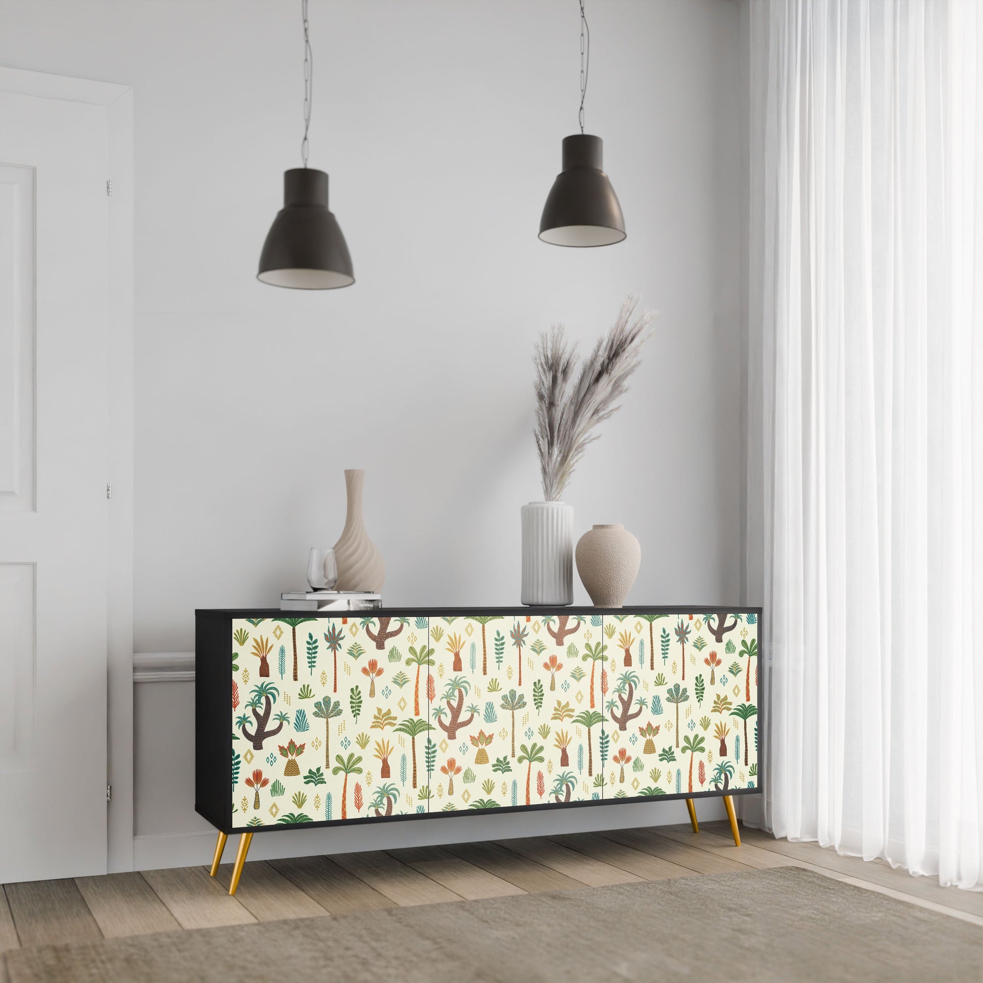 Eleganza e funzionalità in un unico mobile: la nostra credenza a 3 ante con corpo nero è la soluzione perfetta per gli amanti degli interni eleganti e moderni. Il corpo nero enfatizza il carattere audace del mobile, mentre i frontali con una stampa unica aggiungono un tocco artistico. Si adatta perfettamente al soggiorno, alla camera da letto o all'ufficio, completando sia gli arrangiamenti moderni che quelli industriali.