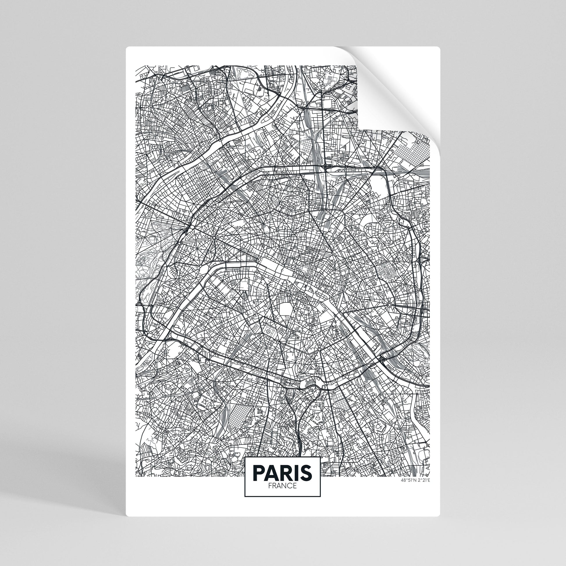 Poster verticale staccabile e attaccabile della planimetria di Parigi