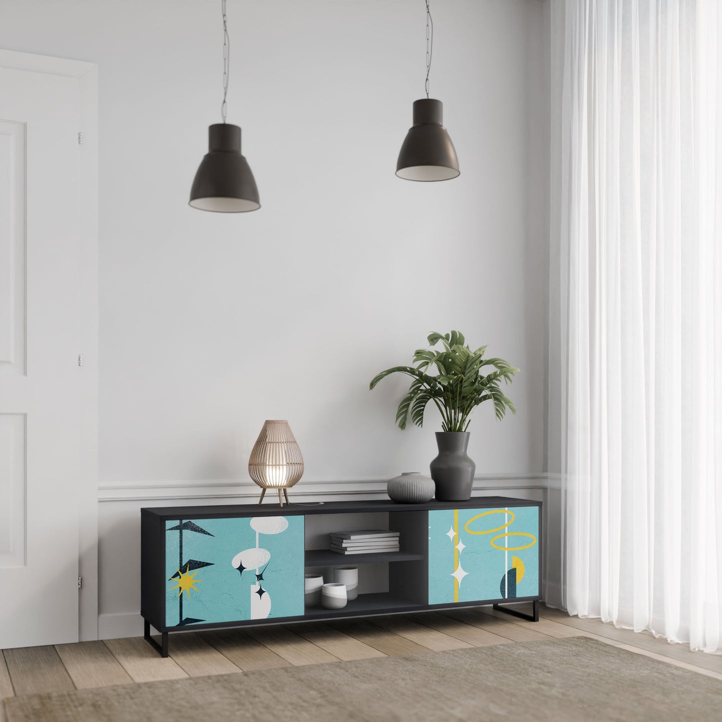 Il corpo nero conferisce al mobile TV un aspetto elegante e moderno, mentre i frontali con una stampa eccezionale attirano l'attenzione, rendendolo il punto focale di ogni stanza. L'interno spazioso offre spazio per dispositivi elettronici, cavi, telecomandi e altri accessori, aiutandoti a mantenere ordine e organizzazione.