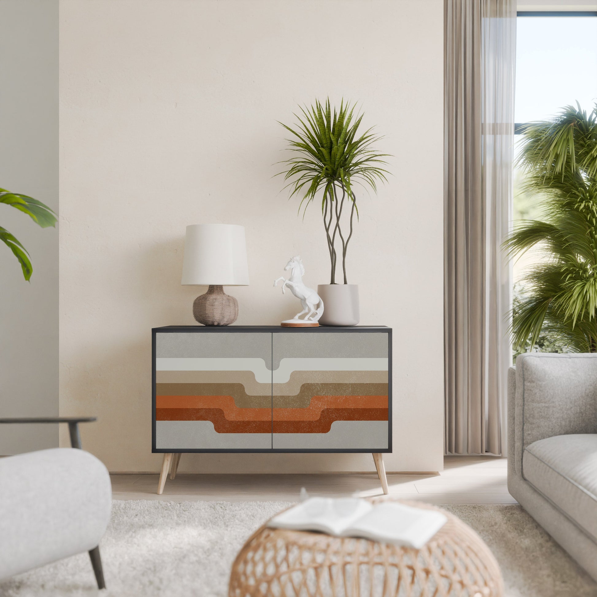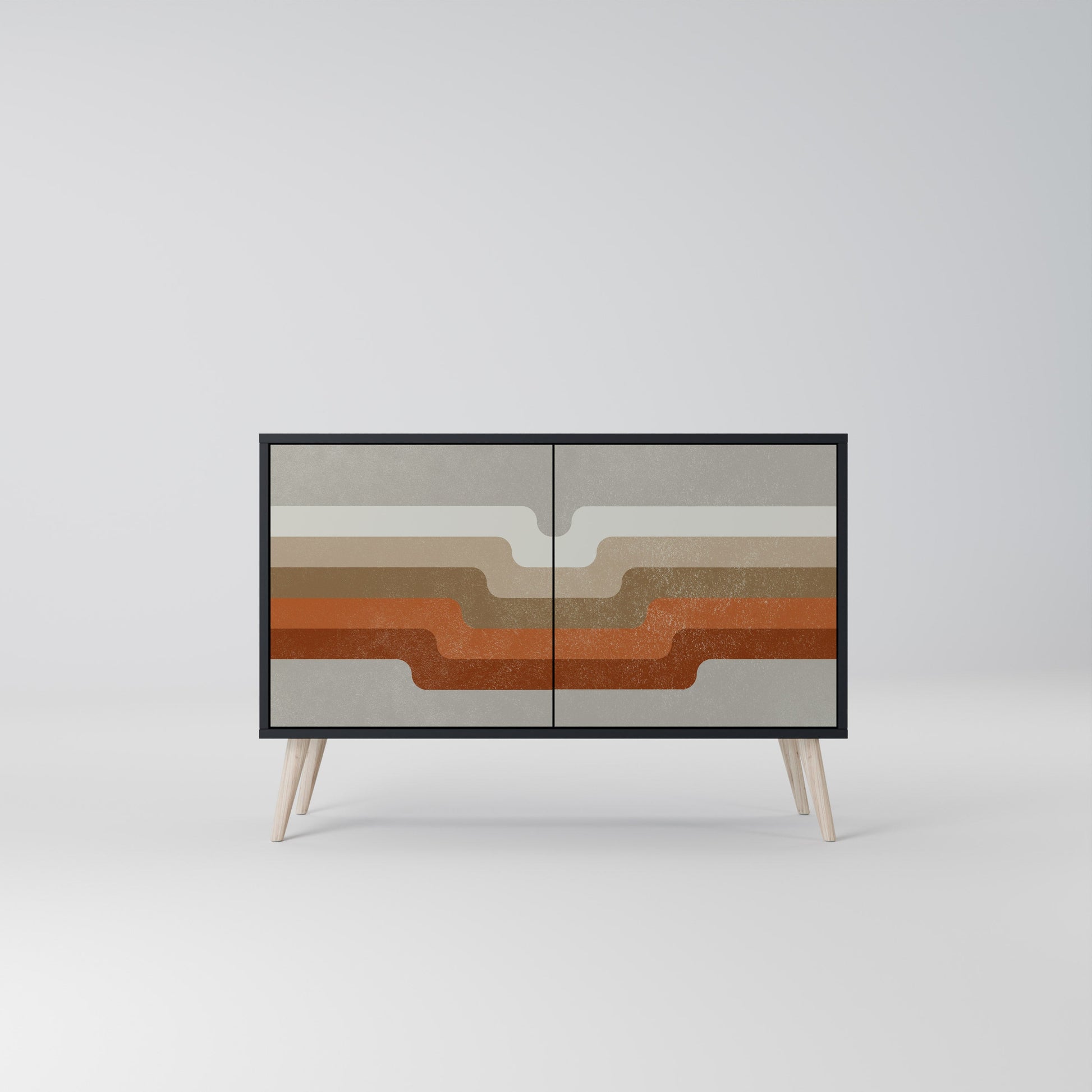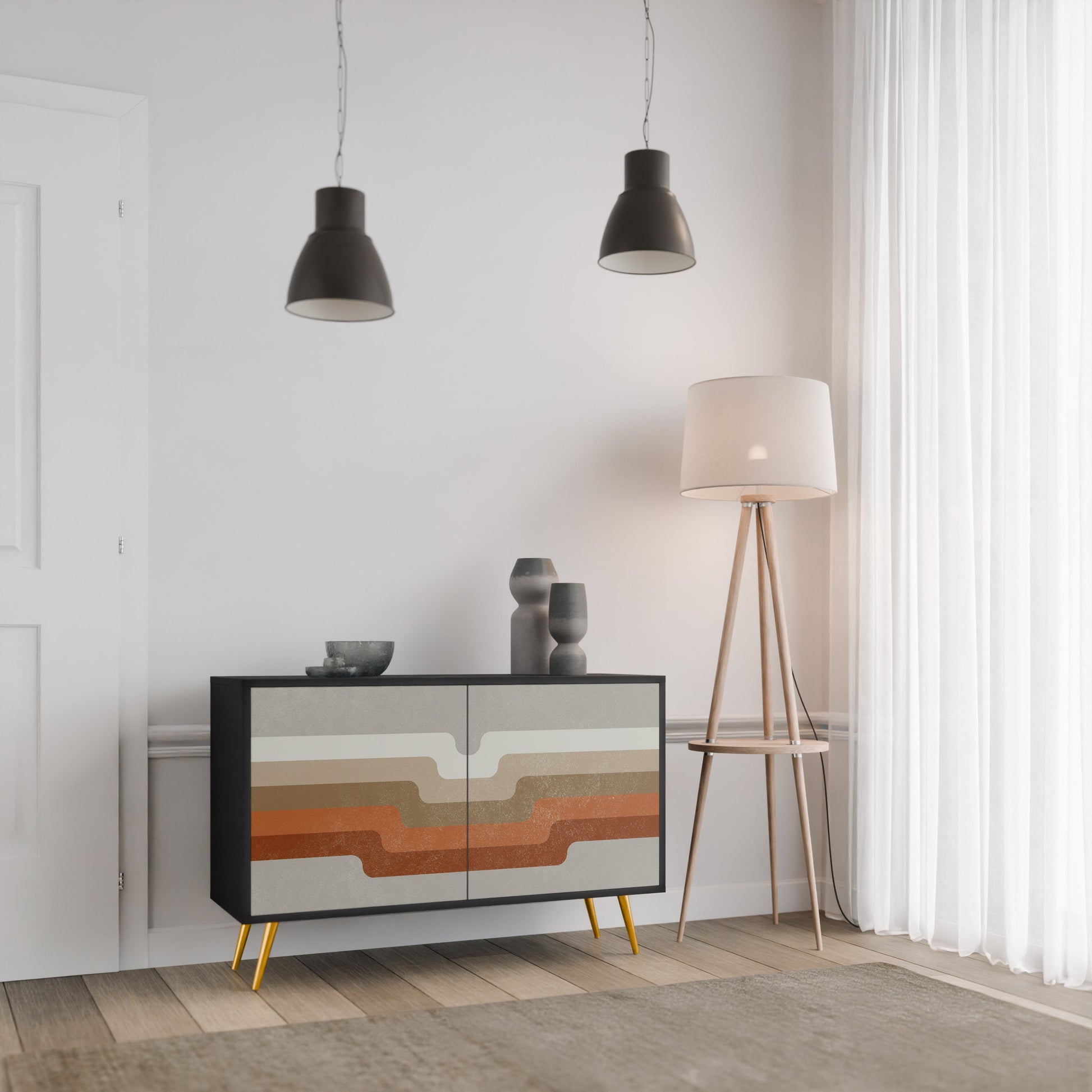 Eleganza e funzionalità in un unico mobile: la nostra credenza a 2 ante con corpo nero è la soluzione perfetta per gli amanti degli interni eleganti e moderni. Il corpo nero enfatizza il carattere audace del mobile, mentre i frontali con una stampa unica aggiungono un tocco artistico. Si adatta perfettamente al soggiorno, alla camera da letto o all'ufficio, completando sia gli arrangiamenti moderni che quelli industriali.