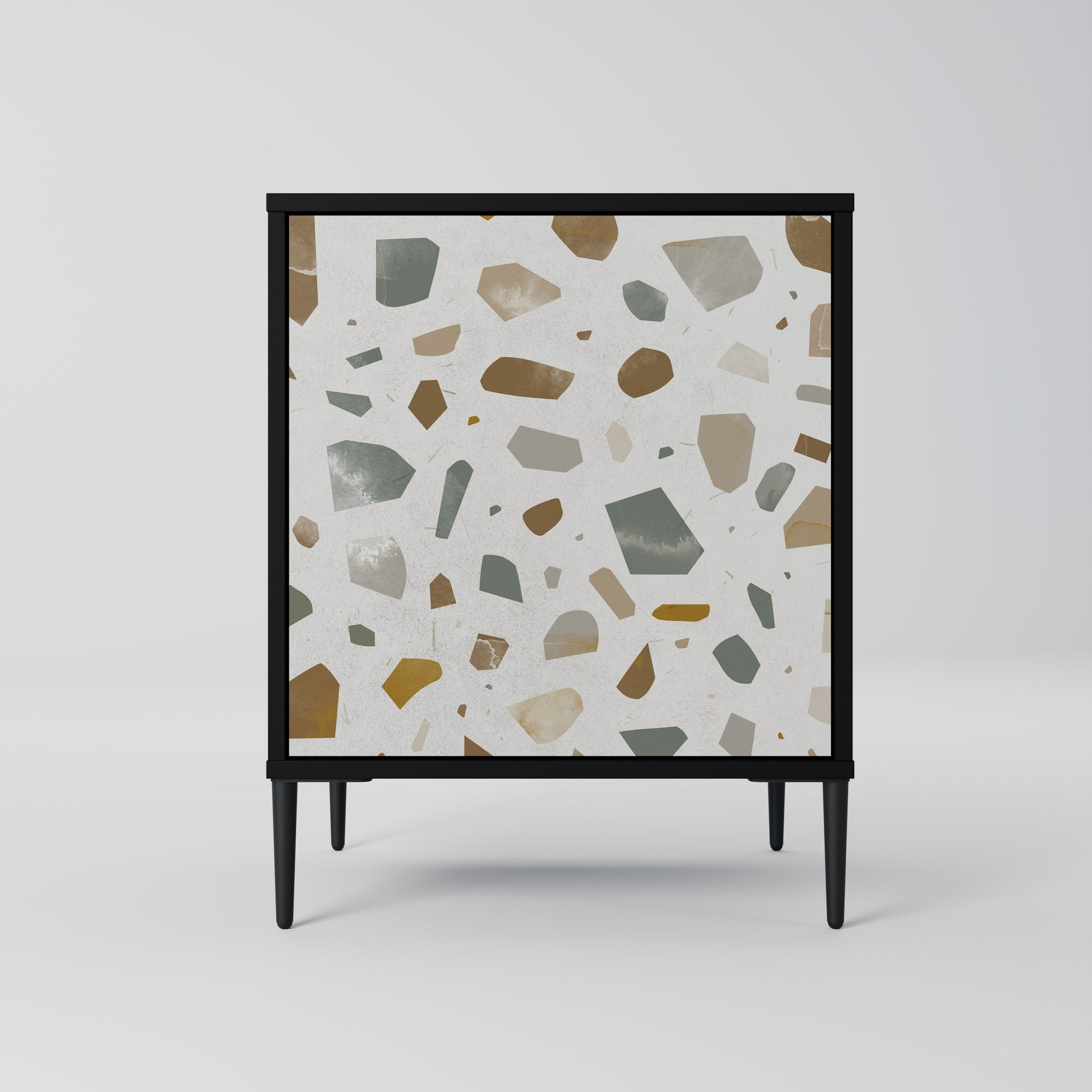 Questo mobile compatto ma straordinariamente elegante colpisce per il suo design minimalista, che si adatta perfettamente sia agli interni moderni che a quelli classici. Il corpo nero enfatizza il carattere audace del mobile, mentre i frontali con una stampa esclusiva aggiungono un tocco artistico.