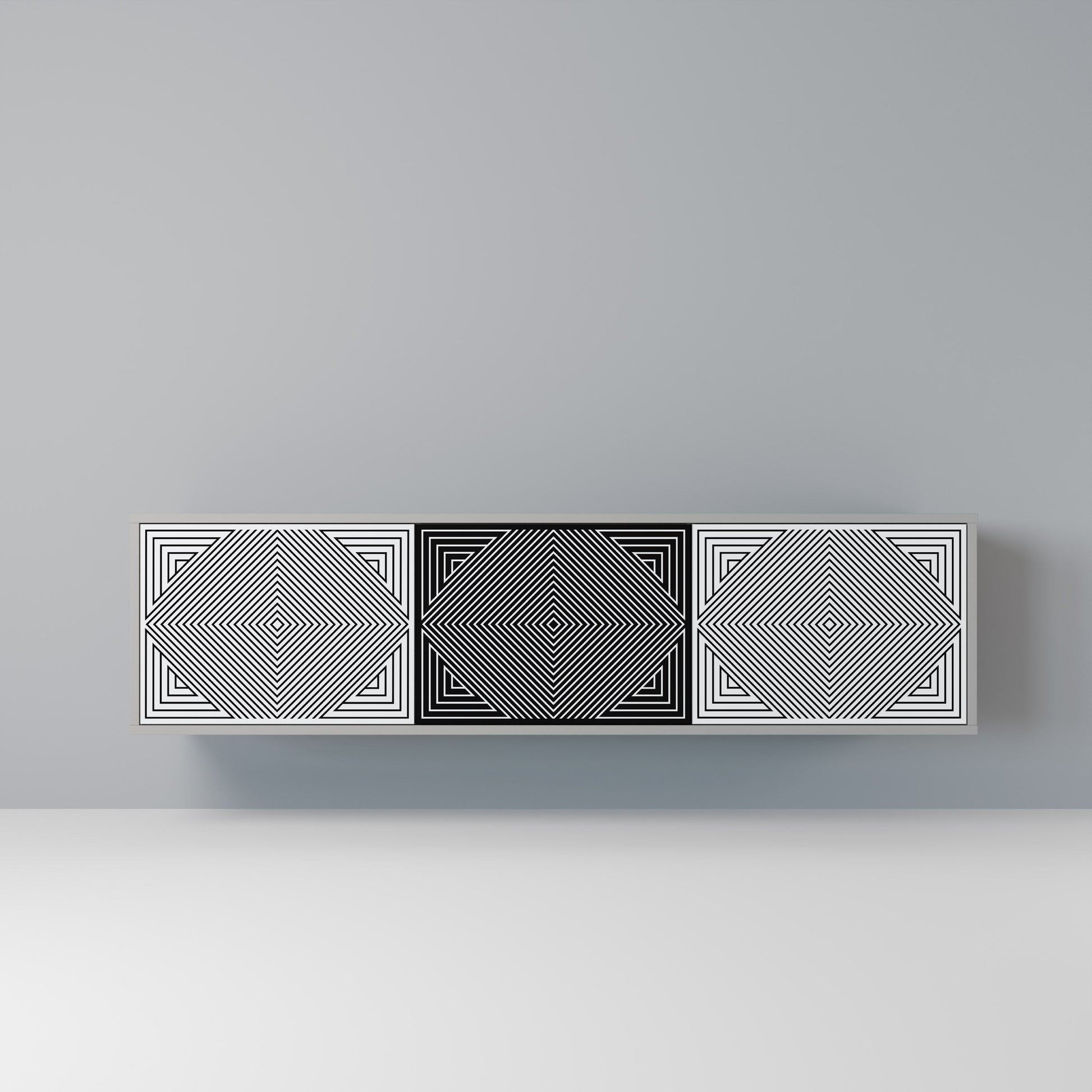 Mobile TV POLYGON ILLUSION a 3 ante in finitura grigia