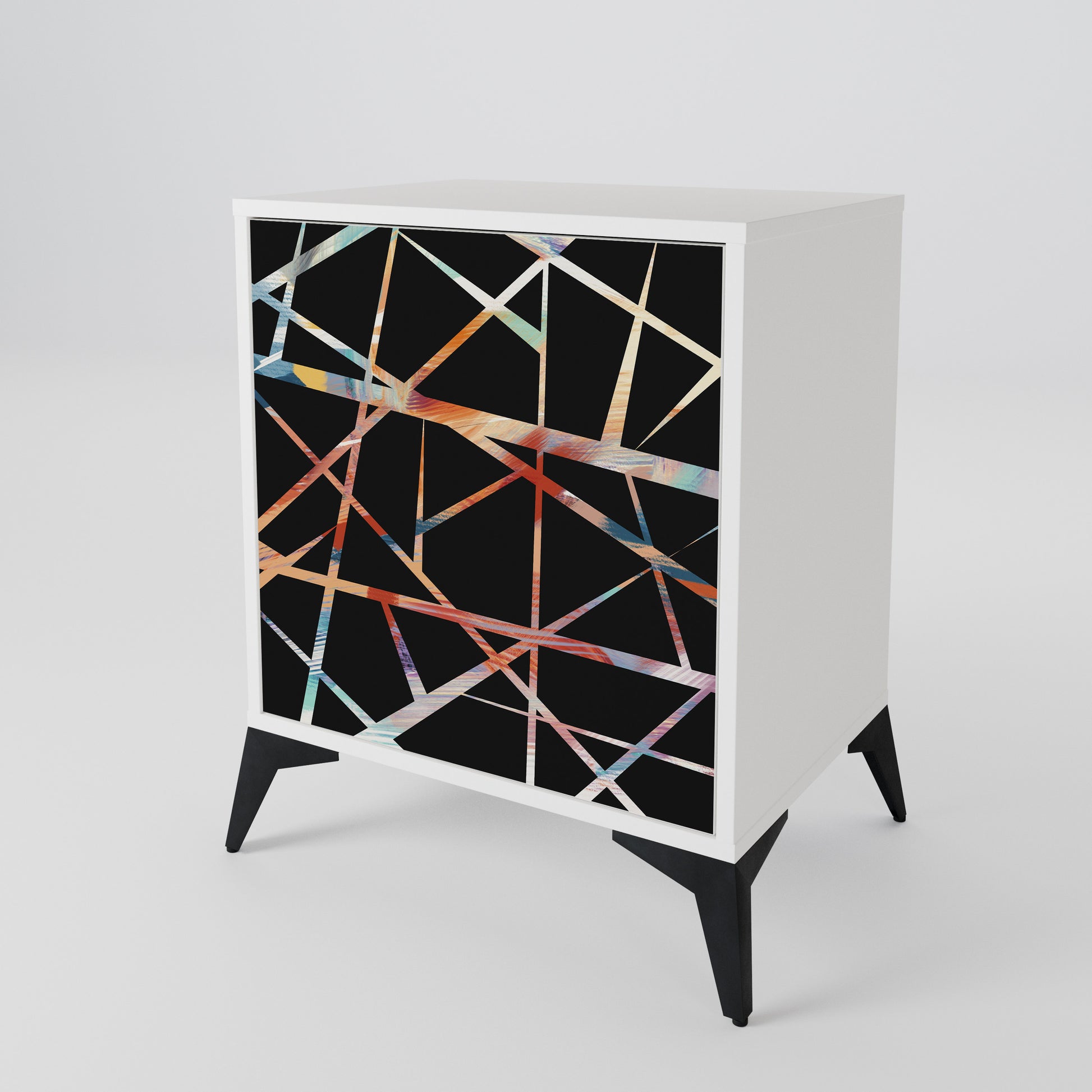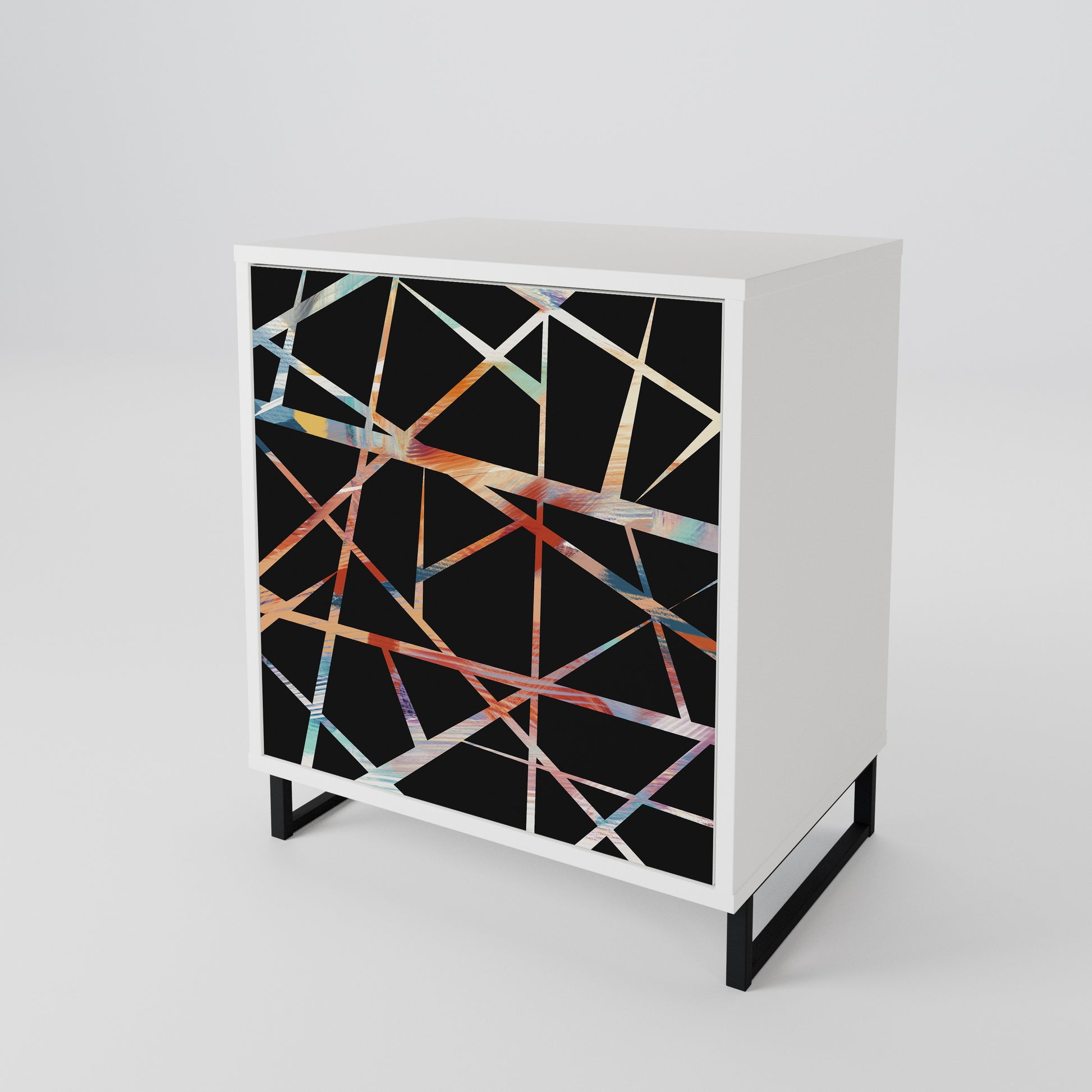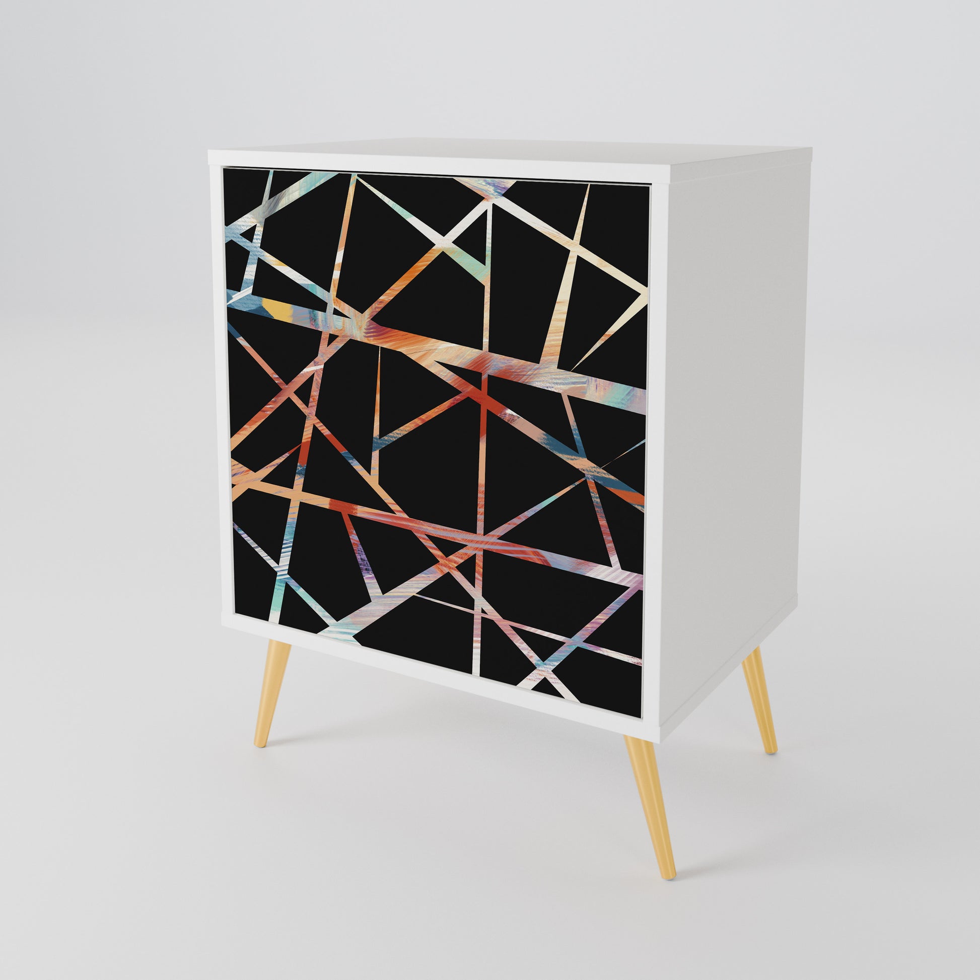 Questo mobile compatto ma straordinariamente elegante colpisce per il suo design minimalista, adattandosi perfettamente sia ad interni moderni che classici. Il colore bianco candido del corpo conferisce al mobile un carattere luminoso e rinfrescante, mentre i frontali con una stampa unica aggiungono un tocco artistico.