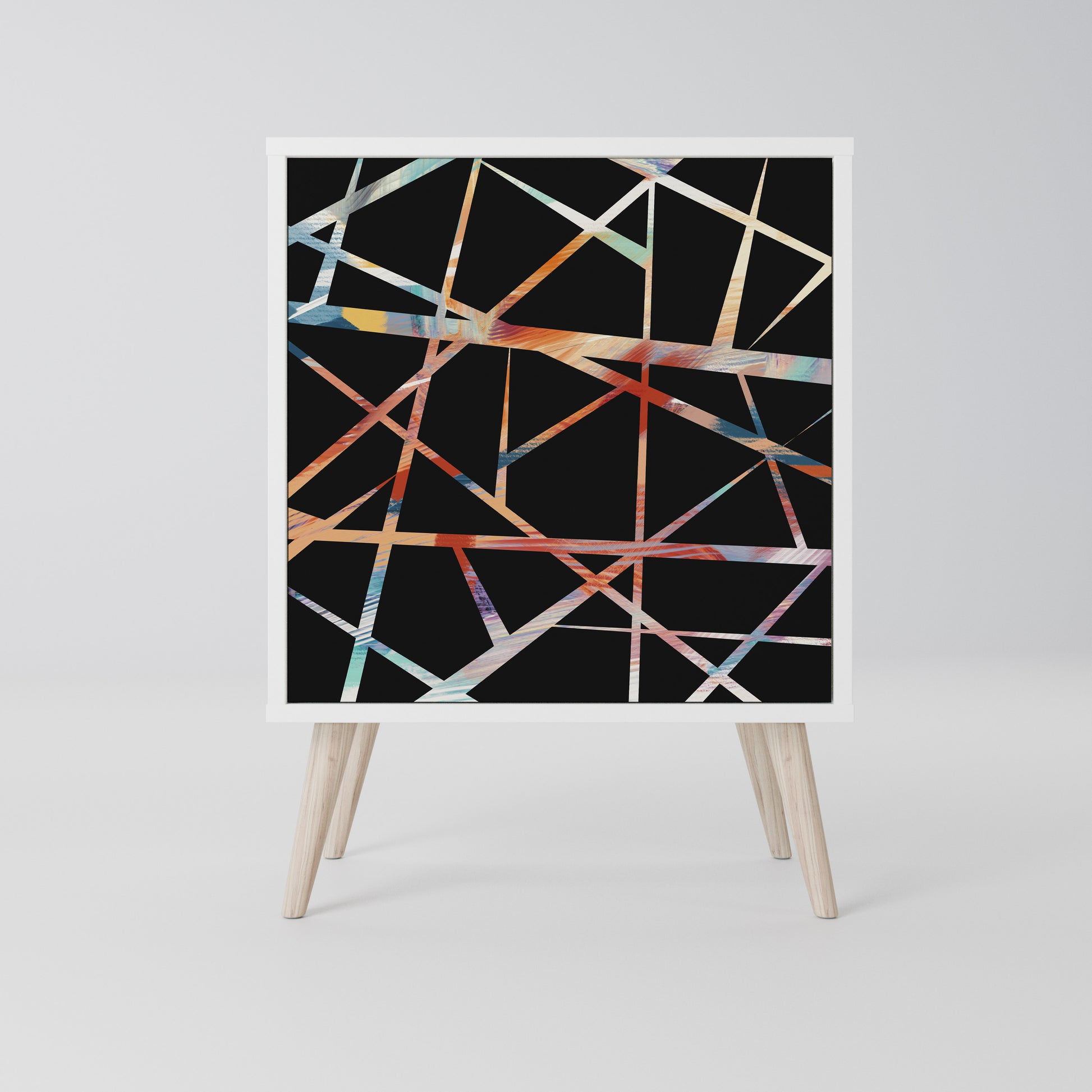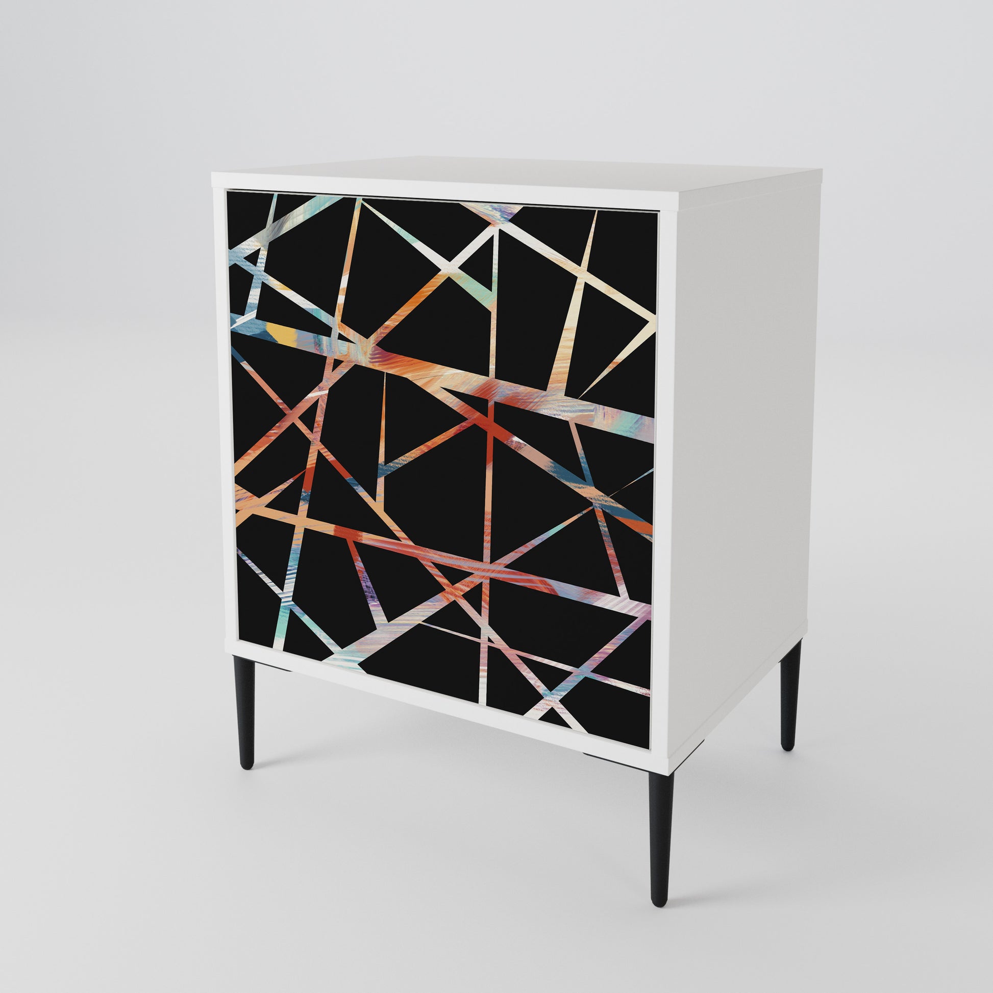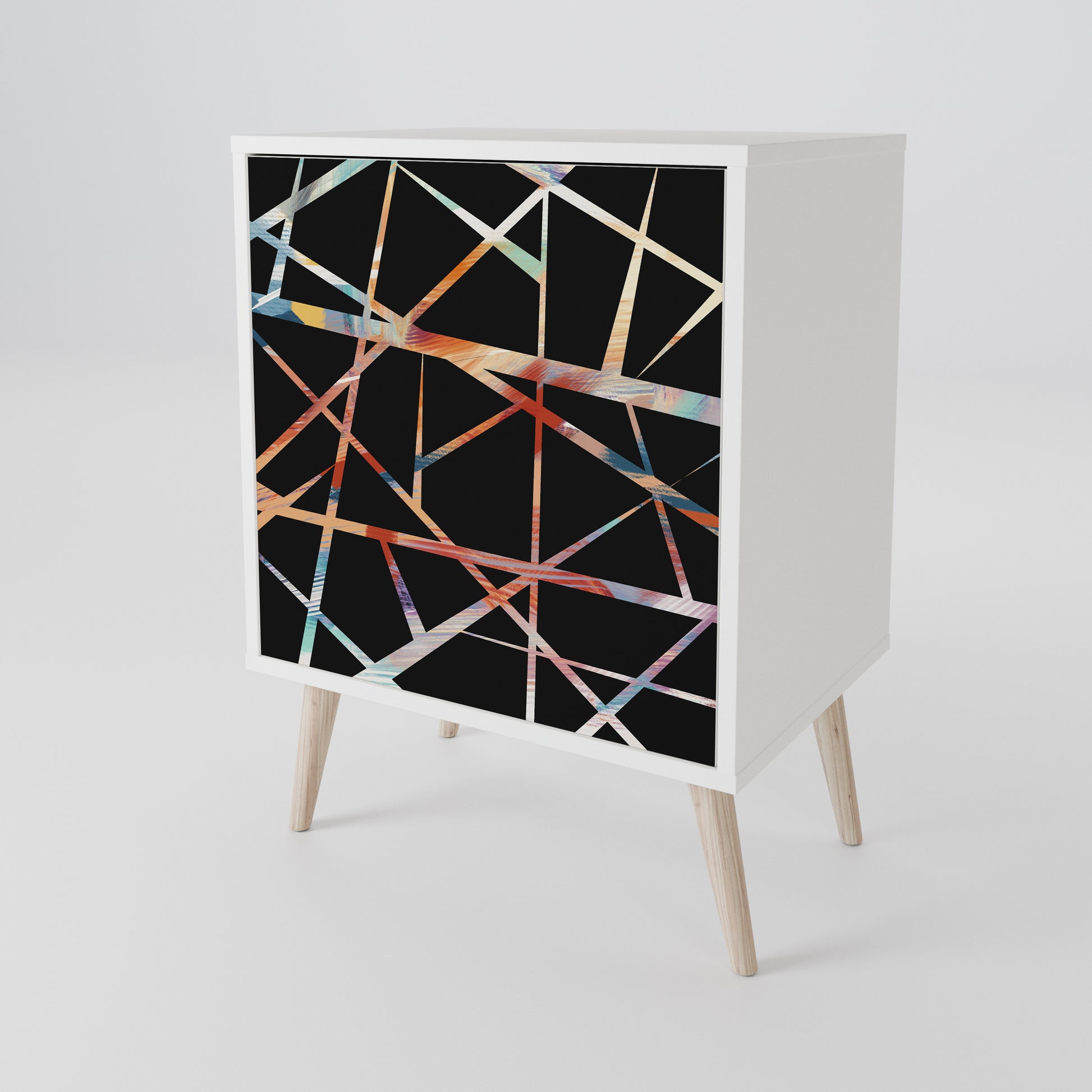 Questo mobile compatto ma straordinariamente elegante colpisce per il suo design minimalista, adattandosi perfettamente sia ad interni moderni che classici. Il colore bianco candido del corpo conferisce al mobile un carattere luminoso e rinfrescante, mentre i frontali con una stampa unica aggiungono un tocco artistico.