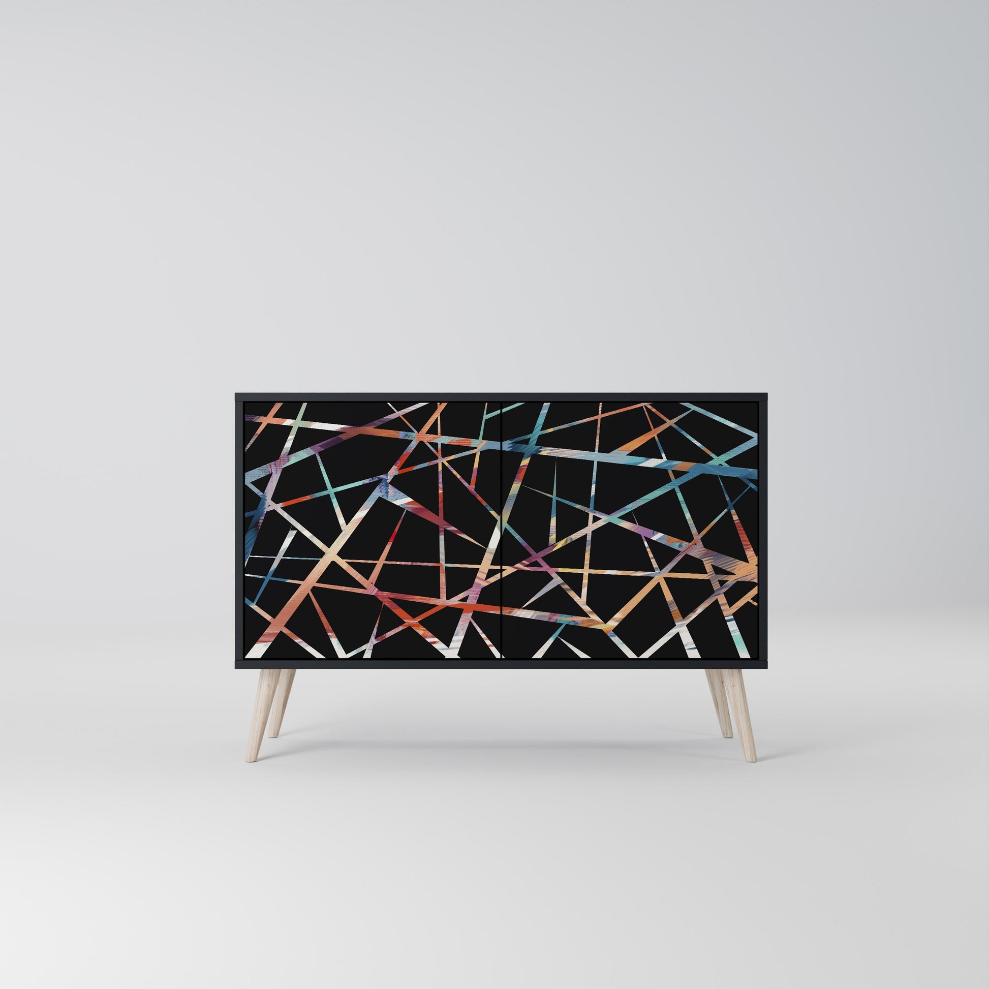 Eleganza e funzionalità in un unico mobile: la nostra credenza a 2 ante con corpo nero è la soluzione perfetta per gli amanti degli interni eleganti e moderni. Il corpo nero enfatizza il carattere audace del mobile, mentre i frontali con una stampa unica aggiungono un tocco artistico. Si adatta perfettamente al soggiorno, alla camera da letto o all'ufficio, completando sia gli arrangiamenti moderni che quelli industriali.