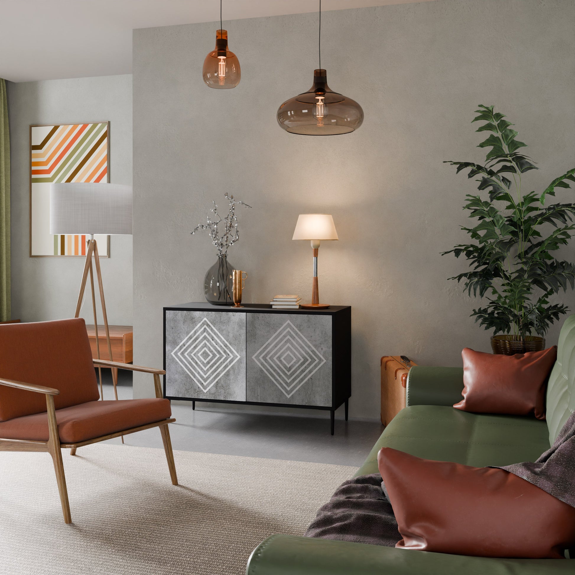 Eleganza e funzionalità in un unico mobile: la nostra credenza a 2 ante con corpo nero è la soluzione perfetta per gli amanti degli interni eleganti e moderni. Il corpo nero enfatizza il carattere audace del mobile, mentre i frontali con una stampa unica aggiungono un tocco artistico. Si adatta perfettamente al soggiorno, alla camera da letto o all'ufficio, completando sia gli arrangiamenti moderni che quelli industriali.
