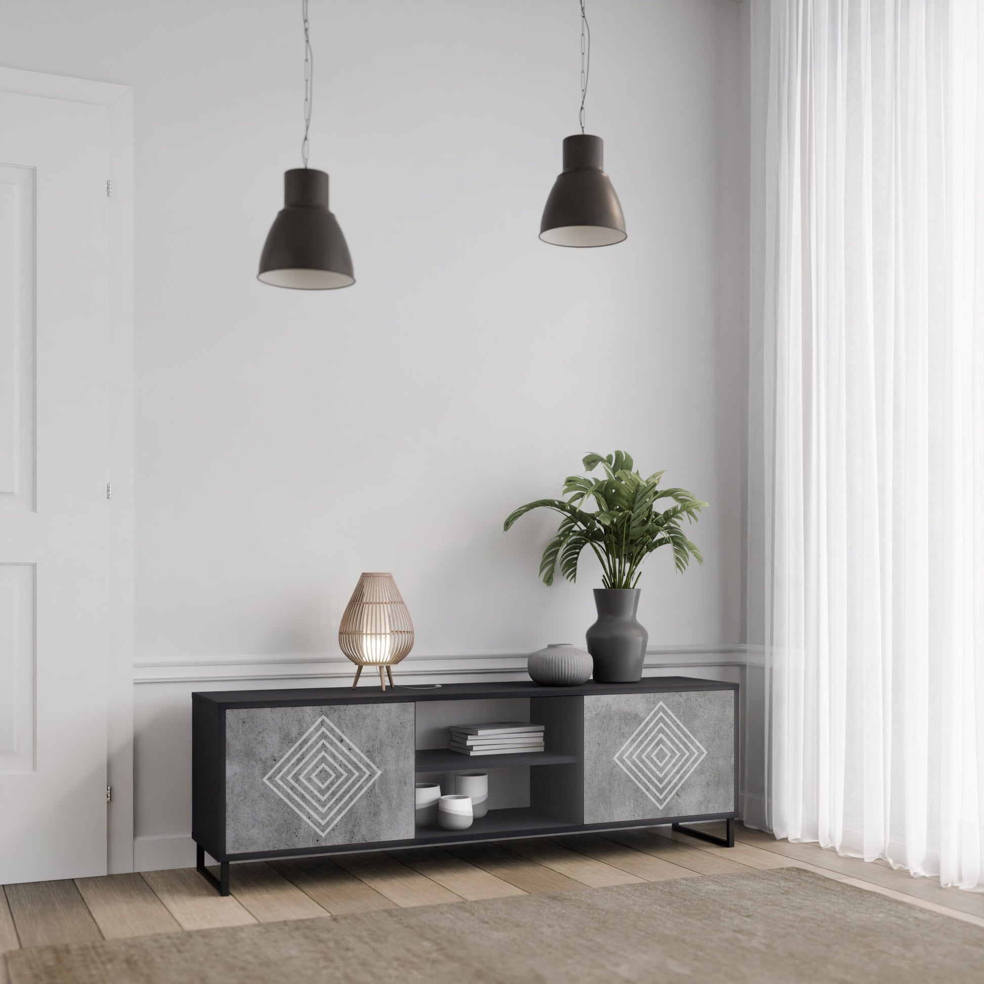 Mobile TV POLYGONAL ARTISTRY a 2 ante in finitura nera