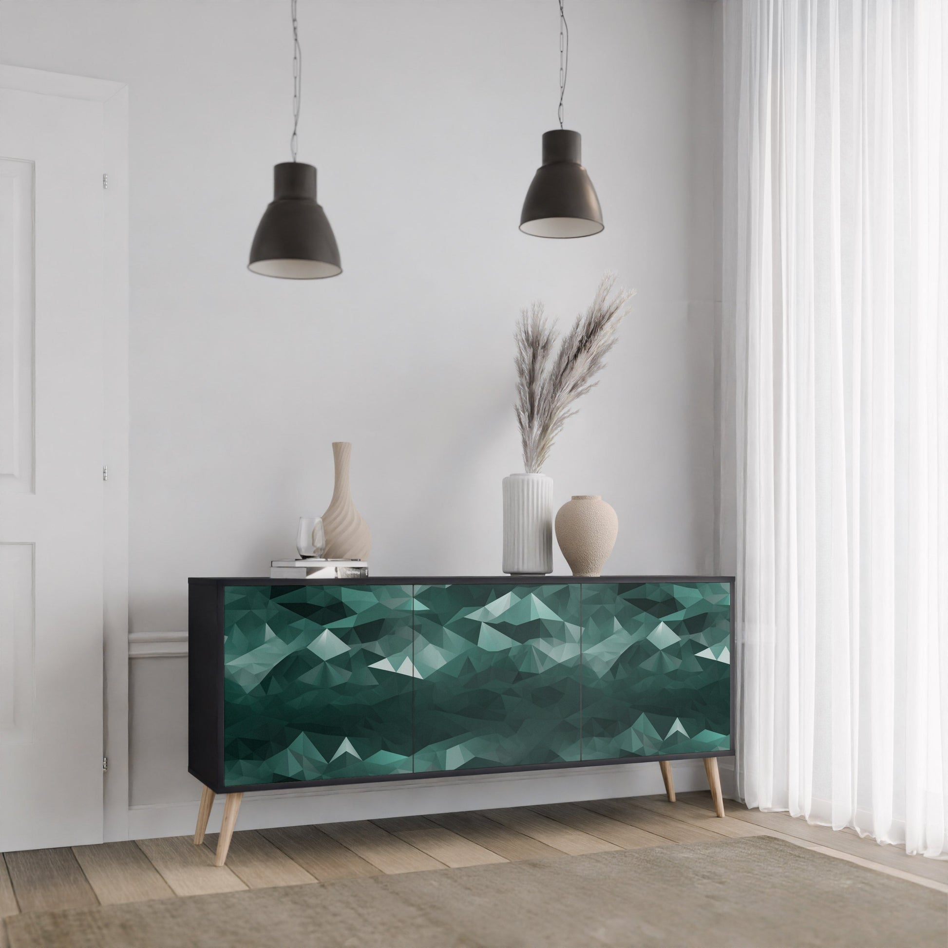 Eleganza e funzionalità in un unico mobile: la nostra credenza a 3 ante con corpo nero è la soluzione perfetta per gli amanti degli interni eleganti e moderni. Il corpo nero enfatizza il carattere audace del mobile, mentre i frontali con una stampa unica aggiungono un tocco artistico. Si adatta perfettamente al soggiorno, alla camera da letto o all'ufficio, completando sia gli arrangiamenti moderni che quelli industriali.