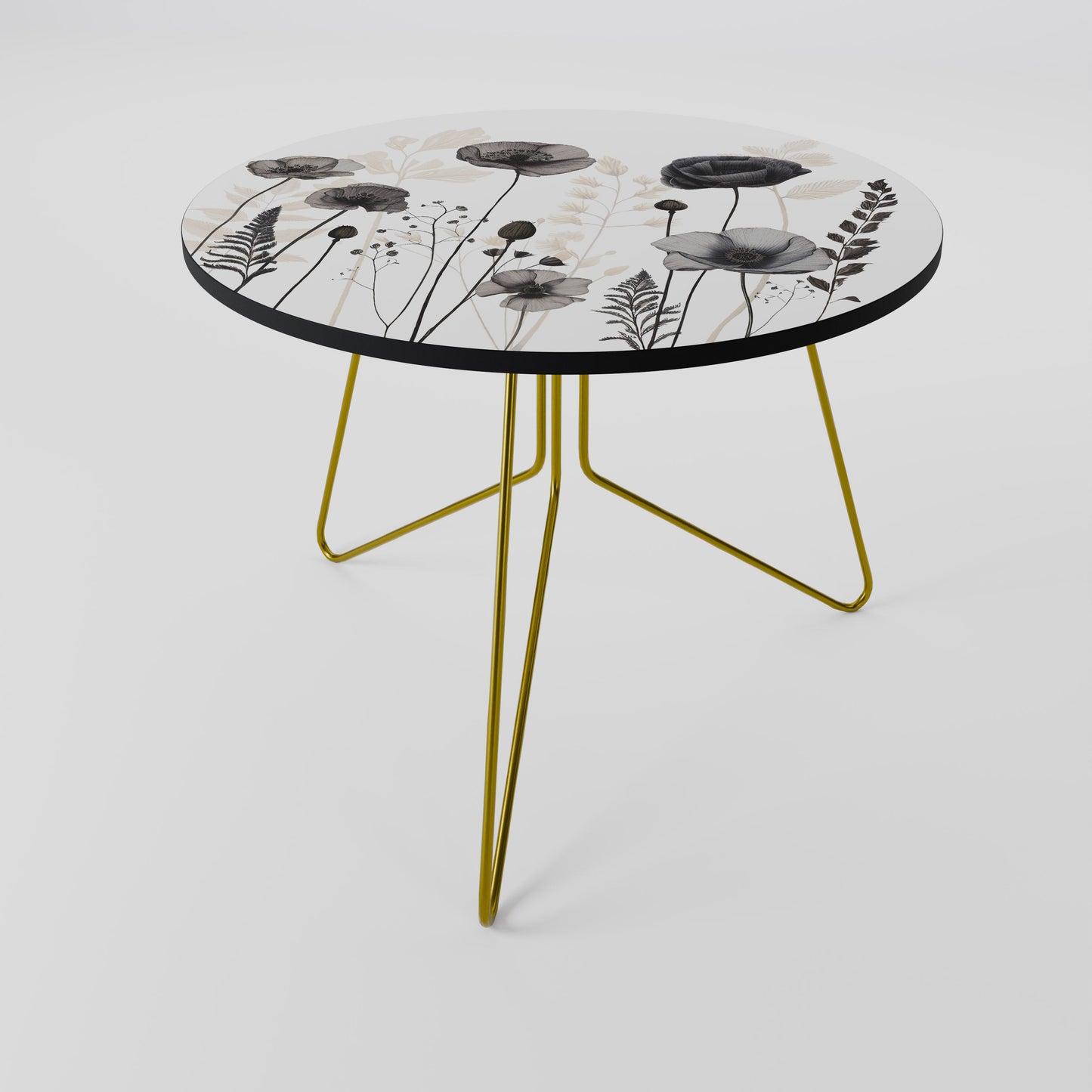 - Gambe con pinna dorata / Bordo del tavolo con finitura nera