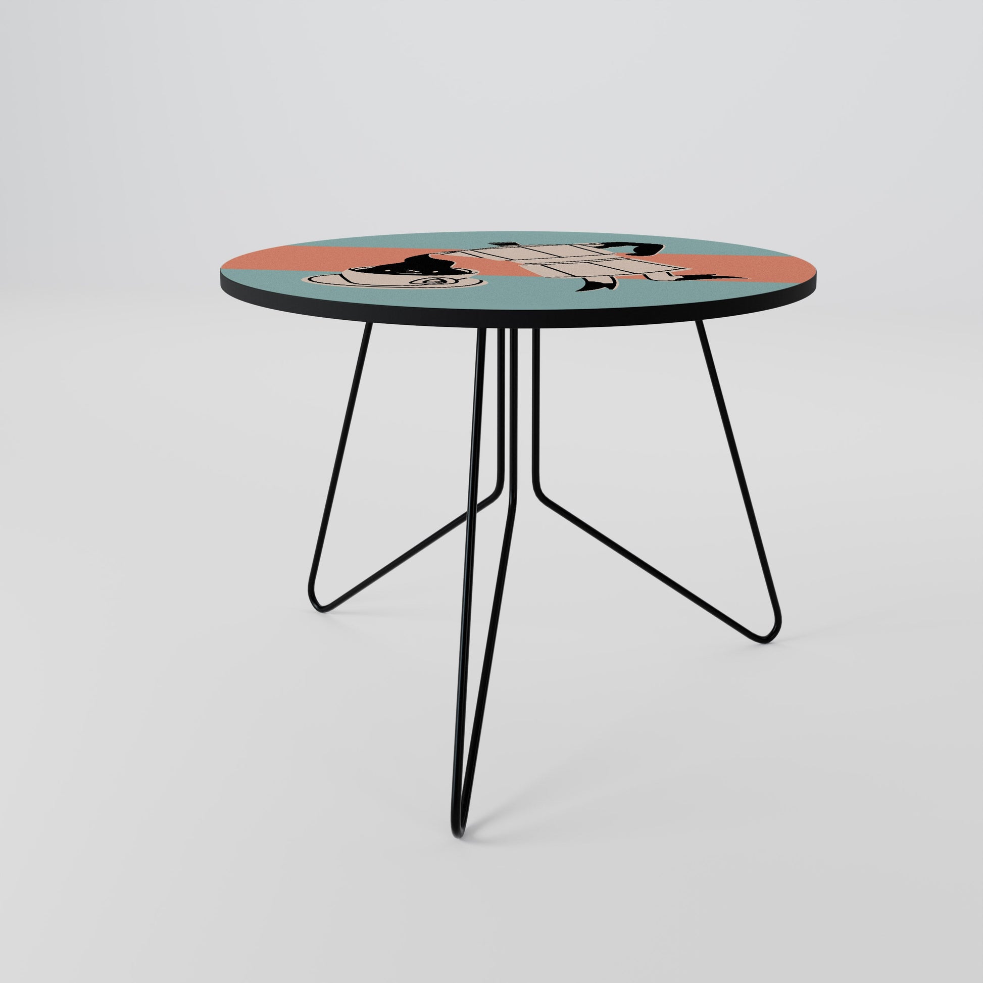 Il piano del tavolo presenta un motivo stampato di alta qualità, che aggiunge un tocco artistico distintivo al tuo spazio. Realizzato in resistente truciolato rivestito in laminato, garantisce un utilizzo duraturo e resistenza all'usura quotidiana.
