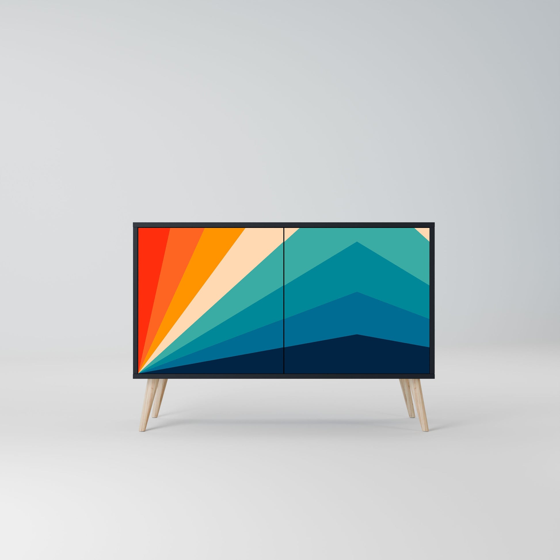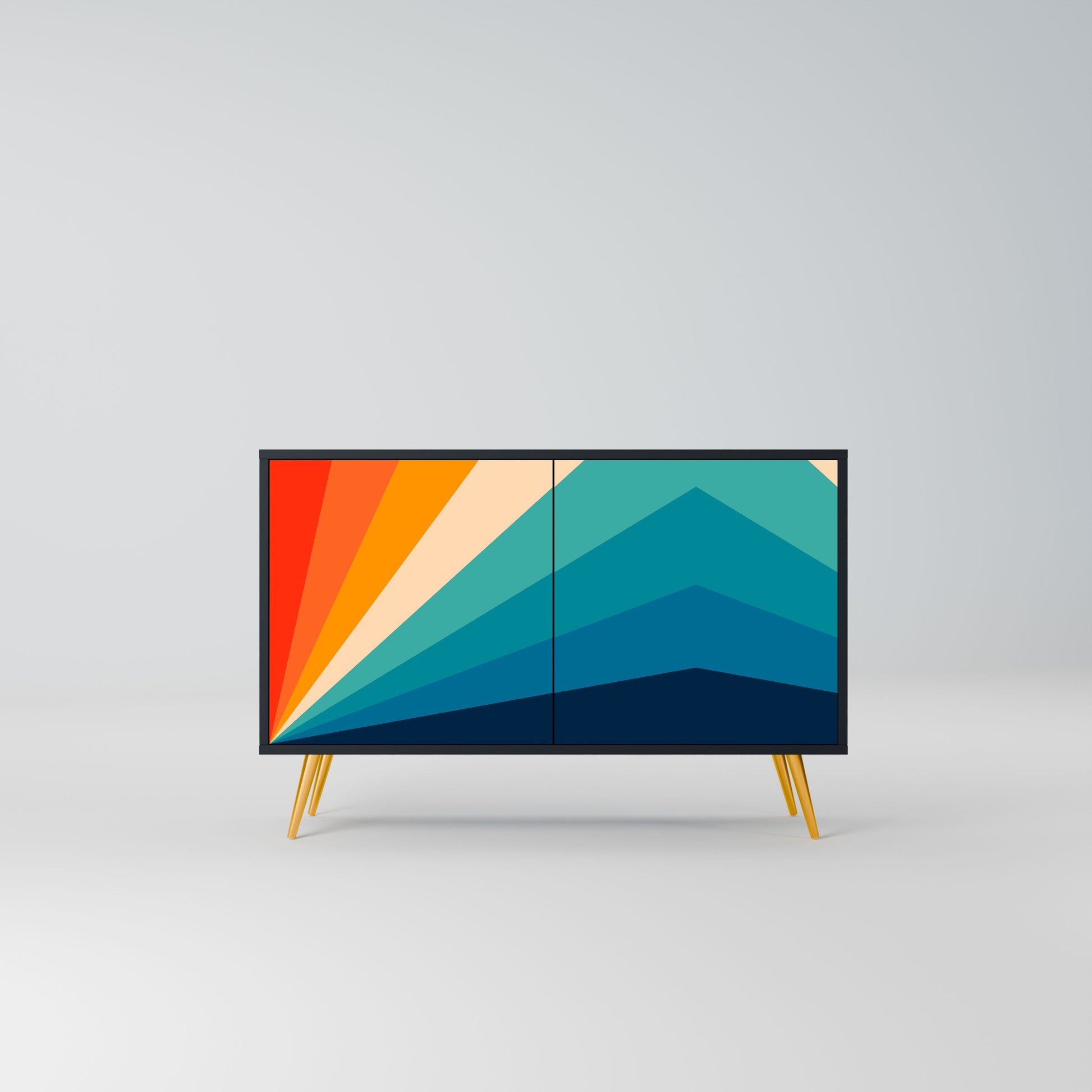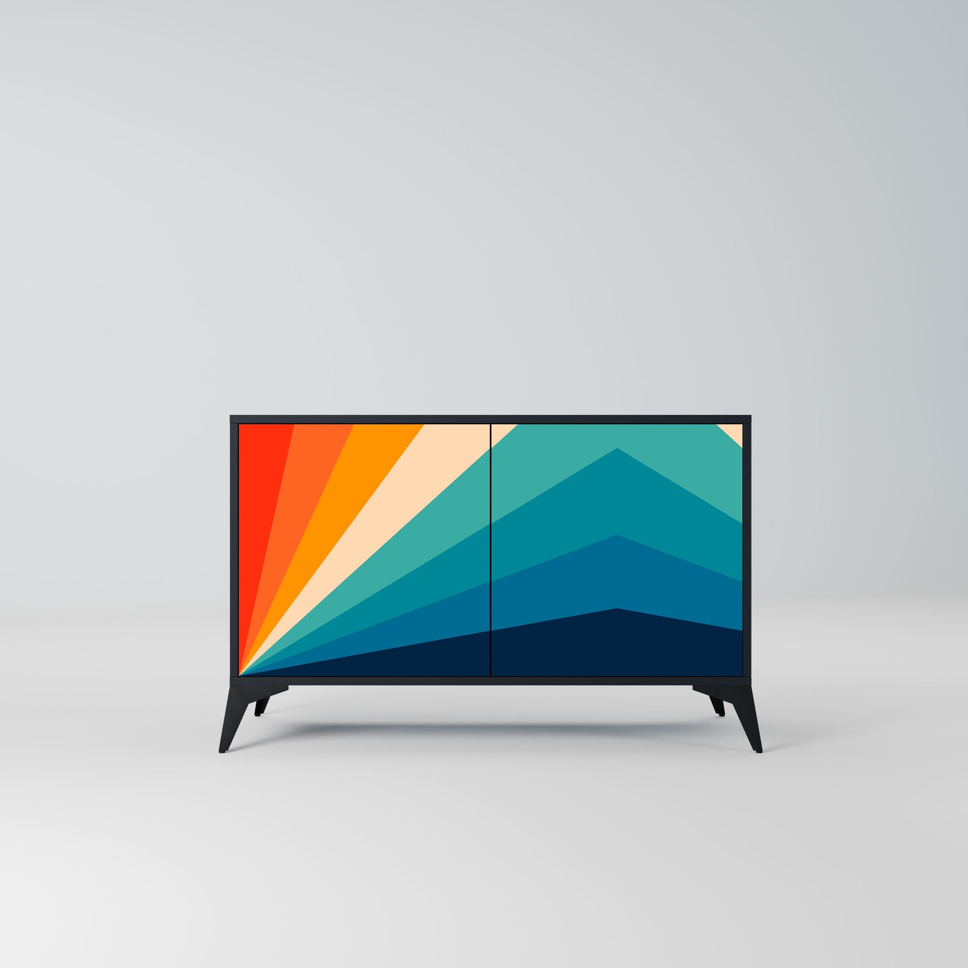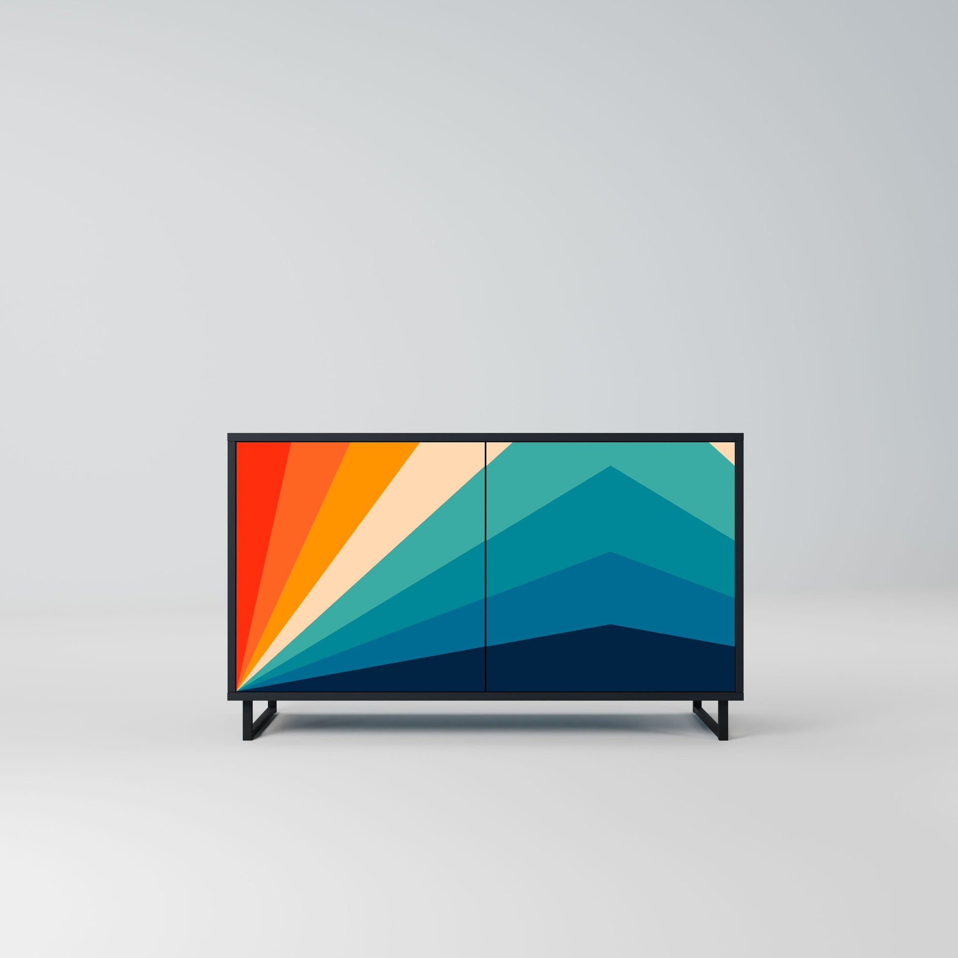 Eleganza e funzionalità in un unico mobile: la nostra credenza a 2 ante con corpo nero è la soluzione perfetta per gli amanti degli interni eleganti e moderni. Il corpo nero enfatizza il carattere audace del mobile, mentre i frontali con una stampa unica aggiungono un tocco artistico. Si adatta perfettamente al soggiorno, alla camera da letto o all'ufficio, completando sia gli arrangiamenti moderni che quelli industriali.