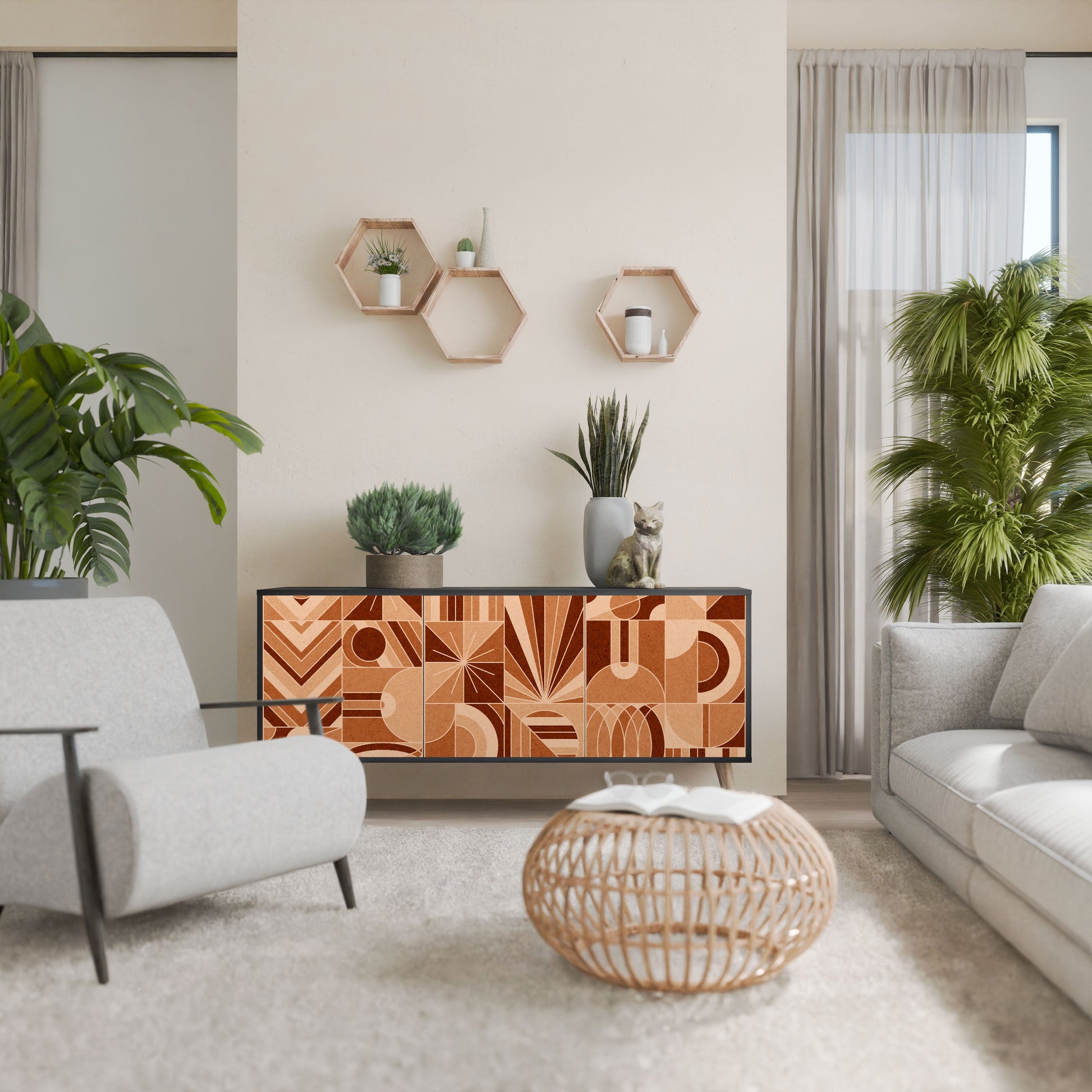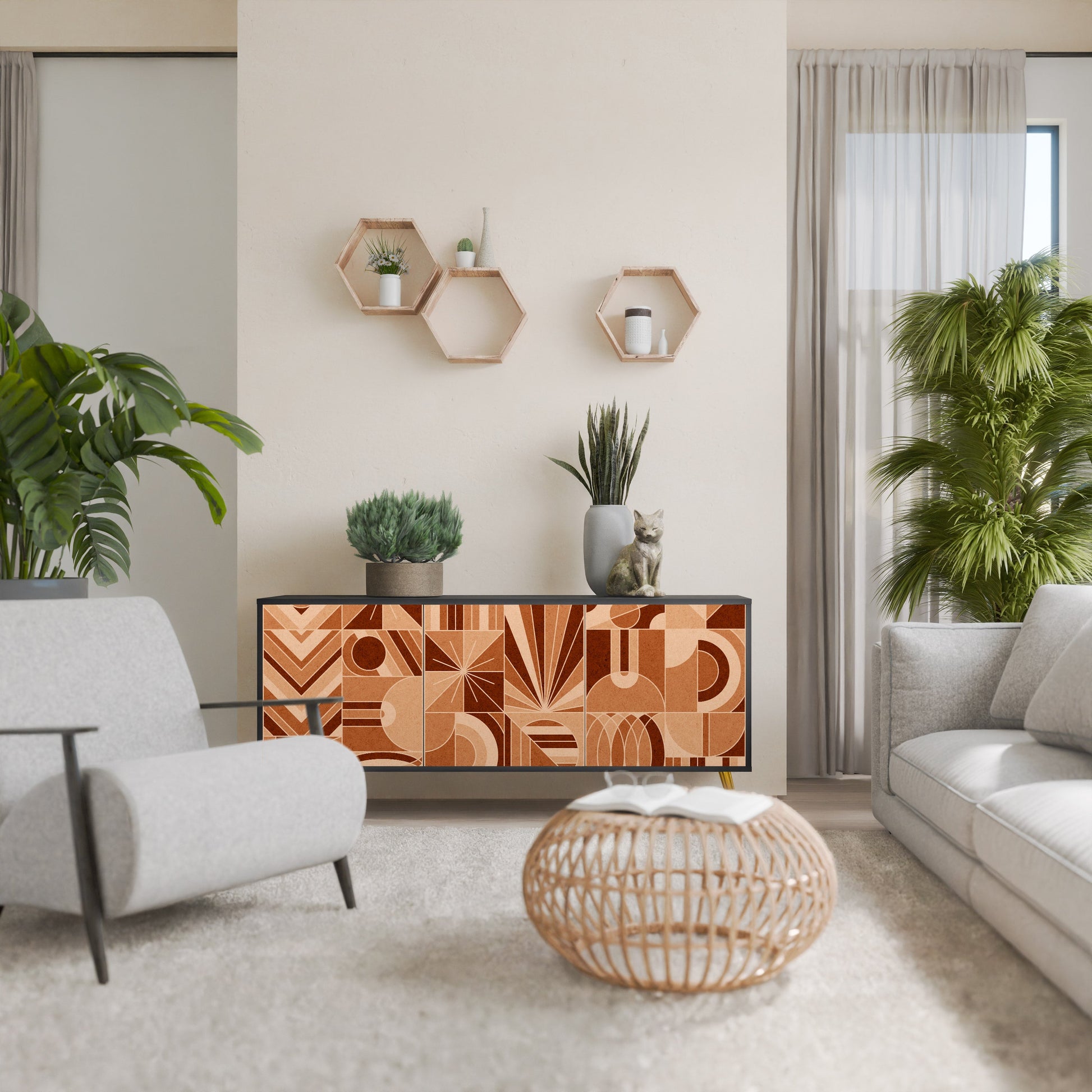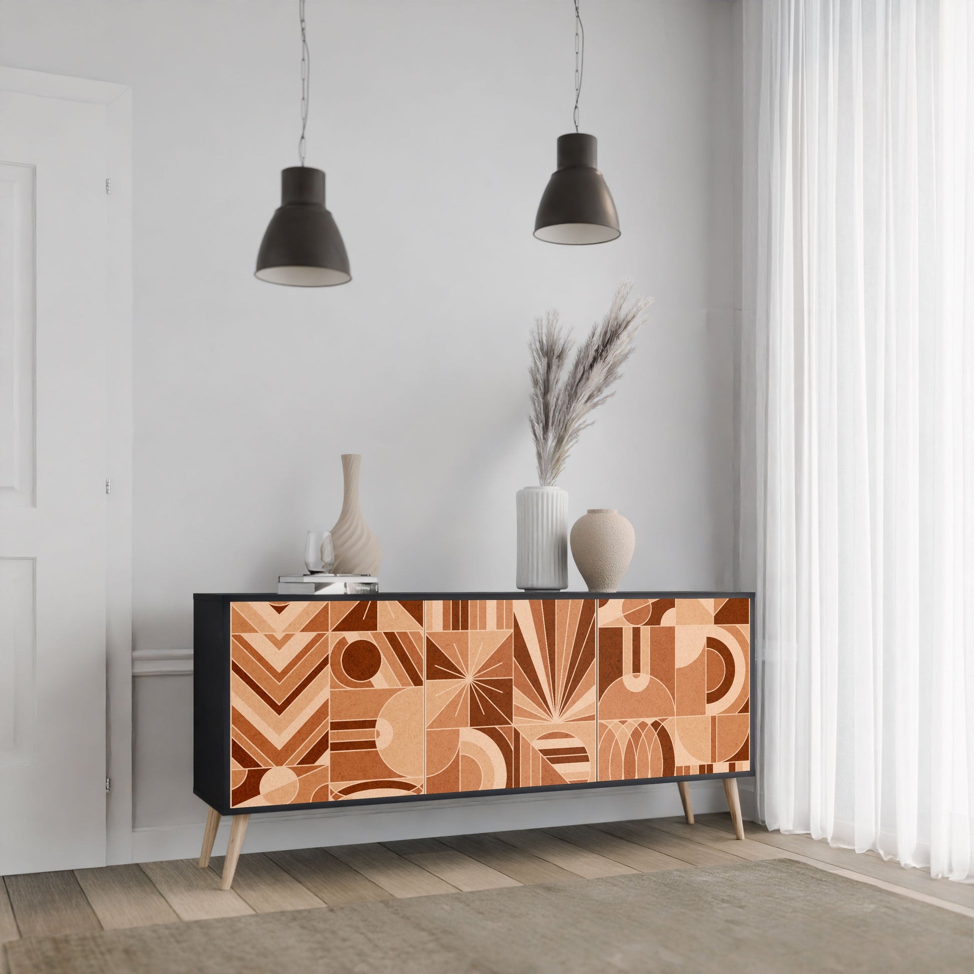 Eleganza e funzionalità in un unico mobile: la nostra credenza a 3 ante con corpo nero è la soluzione perfetta per gli amanti degli interni eleganti e moderni. Il corpo nero enfatizza il carattere audace del mobile, mentre i frontali con una stampa unica aggiungono un tocco artistico. Si adatta perfettamente al soggiorno, alla camera da letto o all'ufficio, completando sia gli arrangiamenti moderni che quelli industriali.