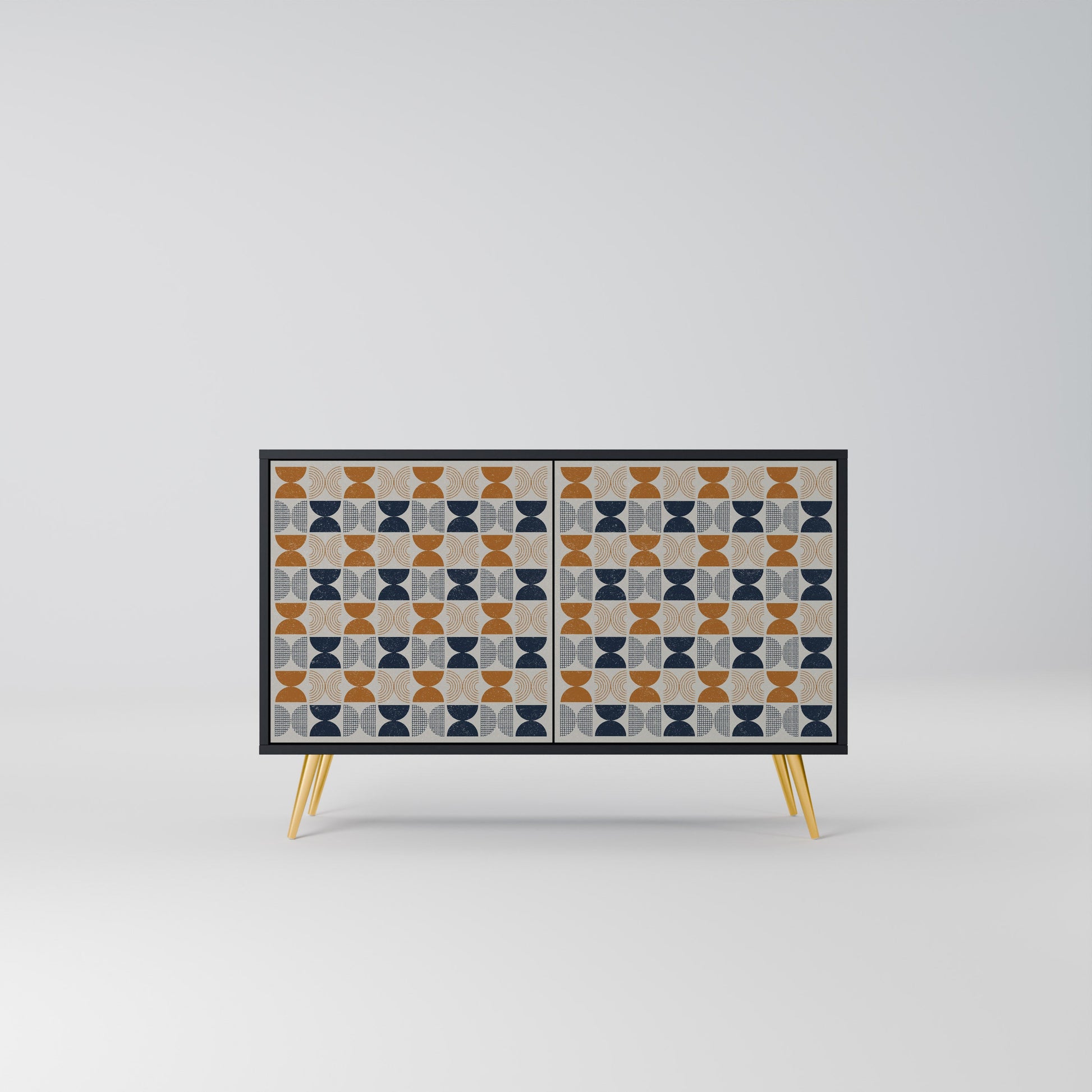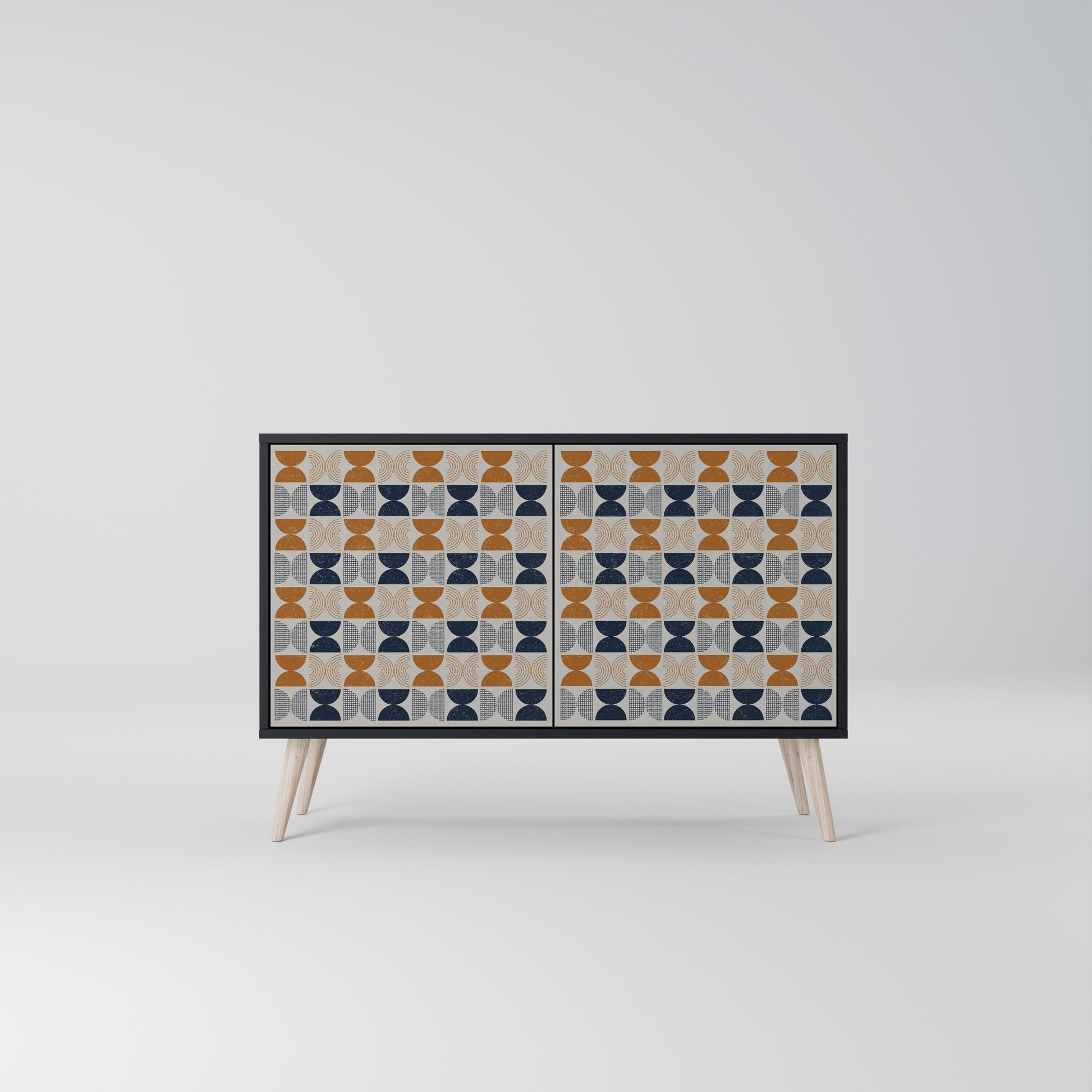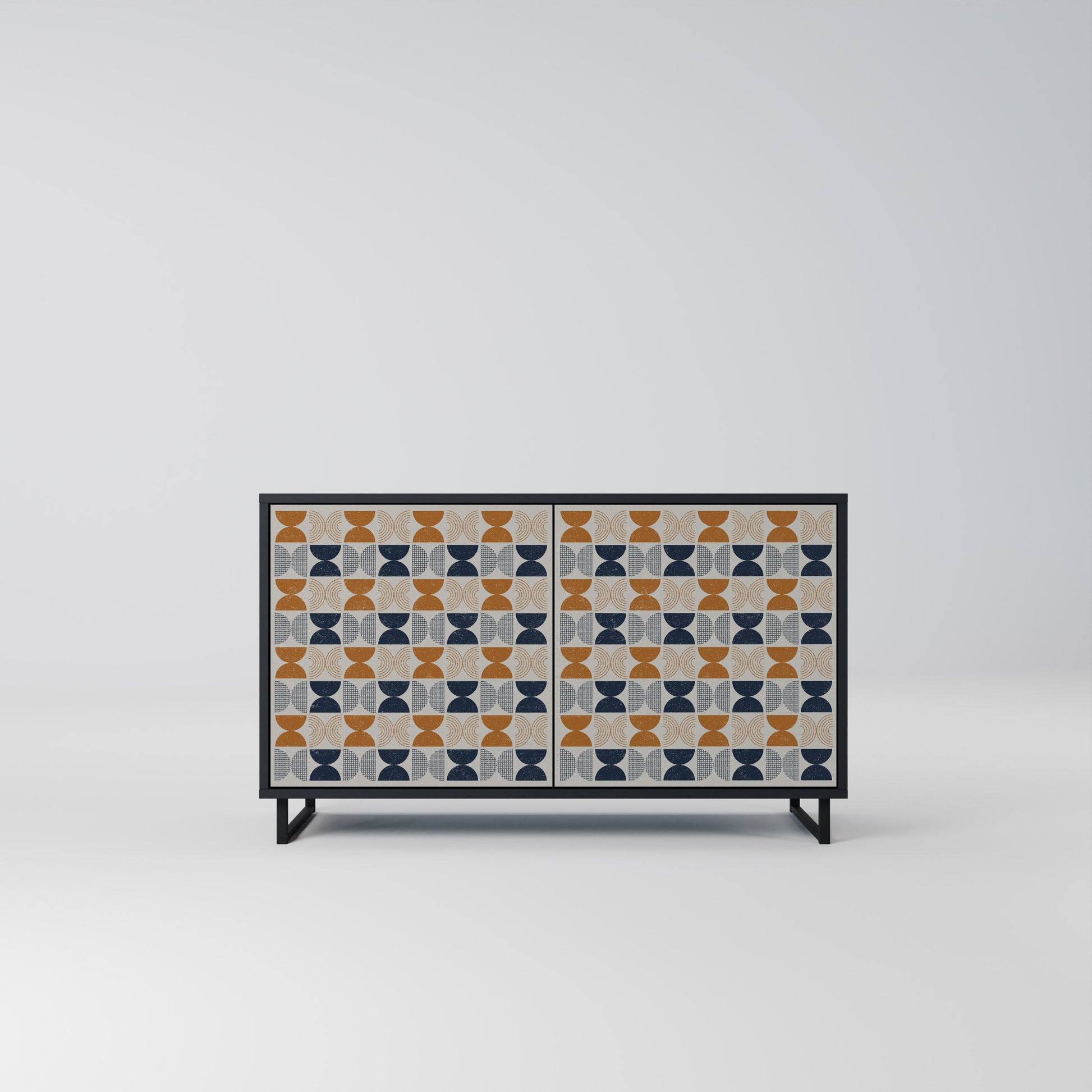 Eleganza e funzionalità in un unico mobile: la nostra credenza a 2 ante con corpo nero è la soluzione perfetta per gli amanti degli interni eleganti e moderni. Il corpo nero enfatizza il carattere audace del mobile, mentre i frontali con una stampa unica aggiungono un tocco artistico. Si adatta perfettamente al soggiorno, alla camera da letto o all'ufficio, completando sia gli arrangiamenti moderni che quelli industriali.
