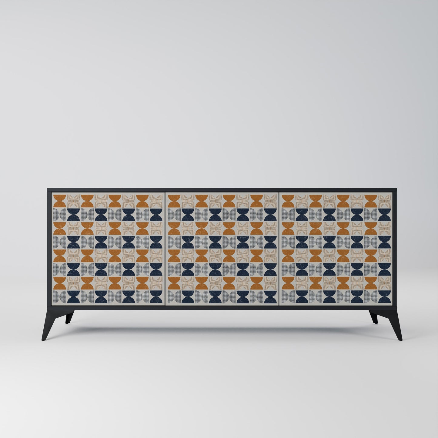 Eleganza e funzionalità in un unico mobile: la nostra credenza a 3 ante con corpo nero è la soluzione perfetta per gli amanti degli interni eleganti e moderni. Il corpo nero enfatizza il carattere audace del mobile, mentre i frontali con una stampa unica aggiungono un tocco artistico. Si adatta perfettamente al soggiorno, alla camera da letto o all'ufficio, completando sia gli arrangiamenti moderni che quelli industriali.