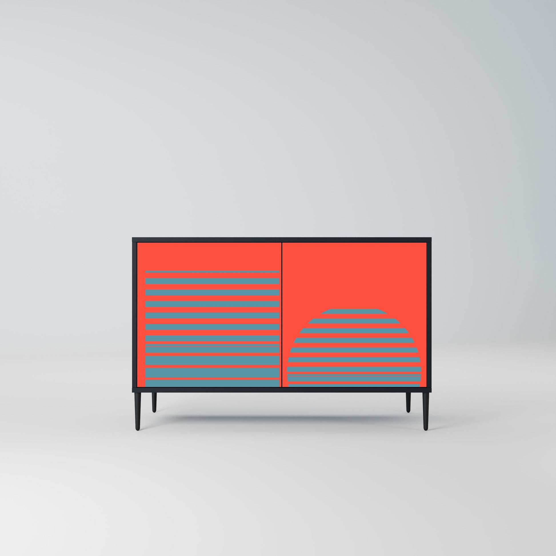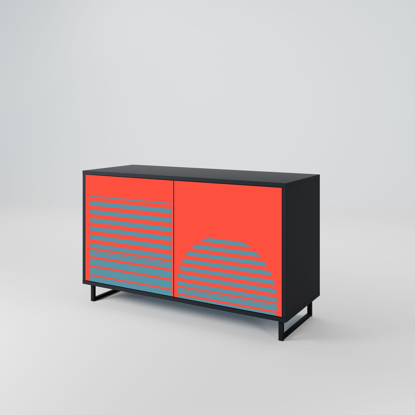 Eleganza e funzionalità in un unico mobile: la nostra credenza a 2 ante con corpo nero è la soluzione perfetta per gli amanti degli interni eleganti e moderni. Il corpo nero enfatizza il carattere audace del mobile, mentre i frontali con una stampa unica aggiungono un tocco artistico. Si adatta perfettamente al soggiorno, alla camera da letto o all'ufficio, completando sia gli arrangiamenti moderni che quelli industriali.