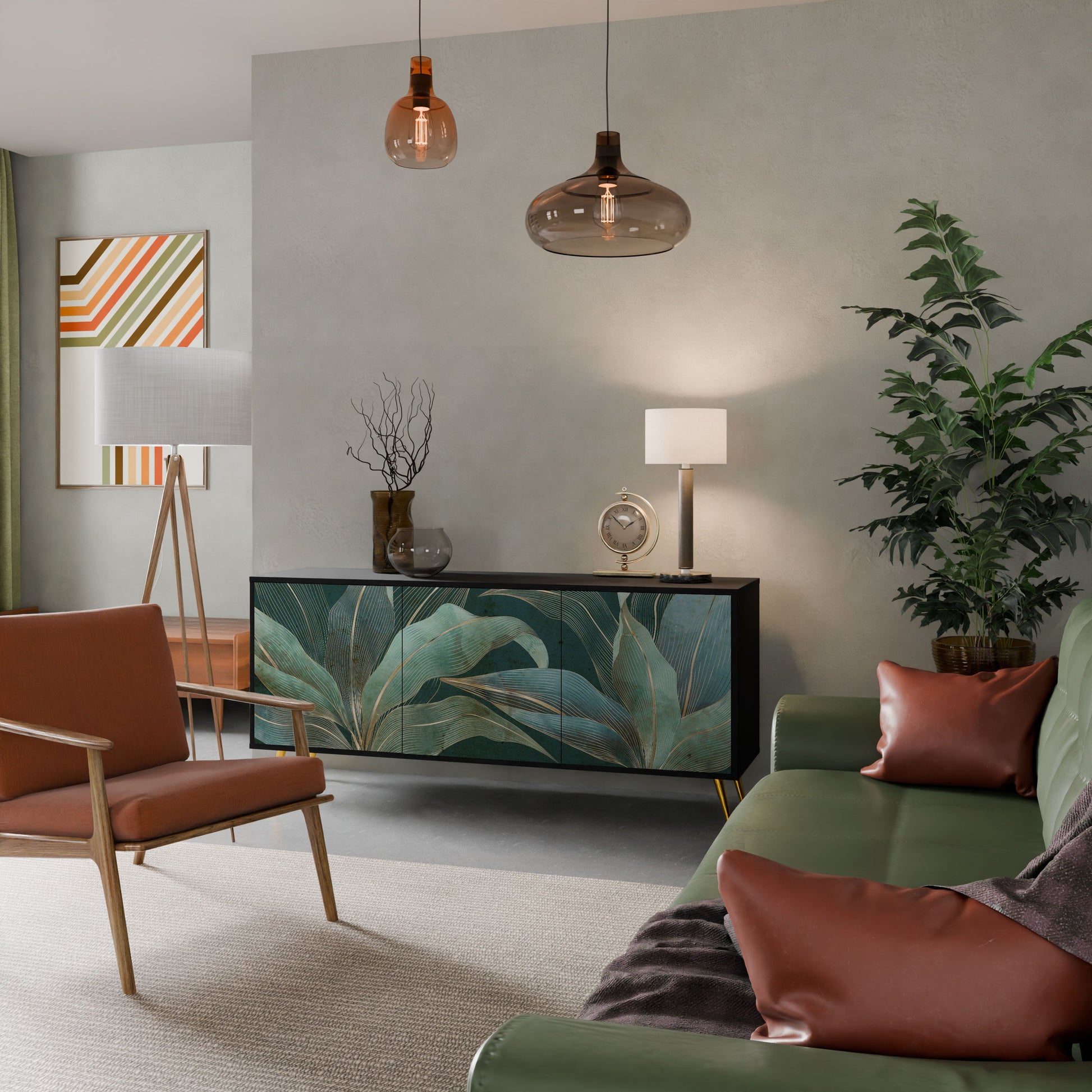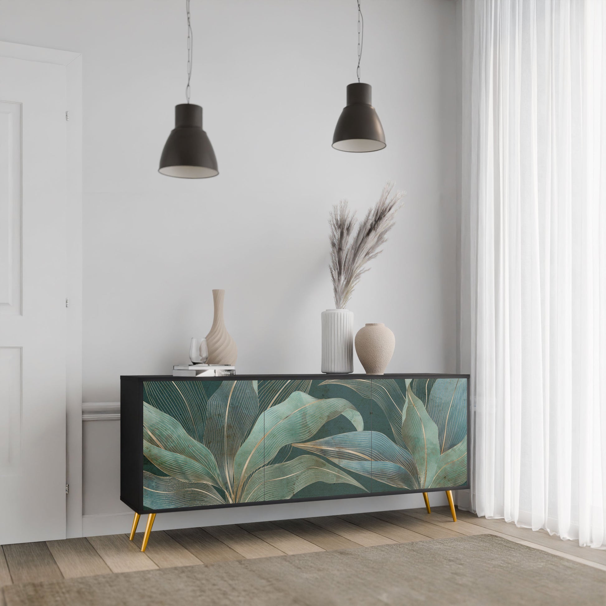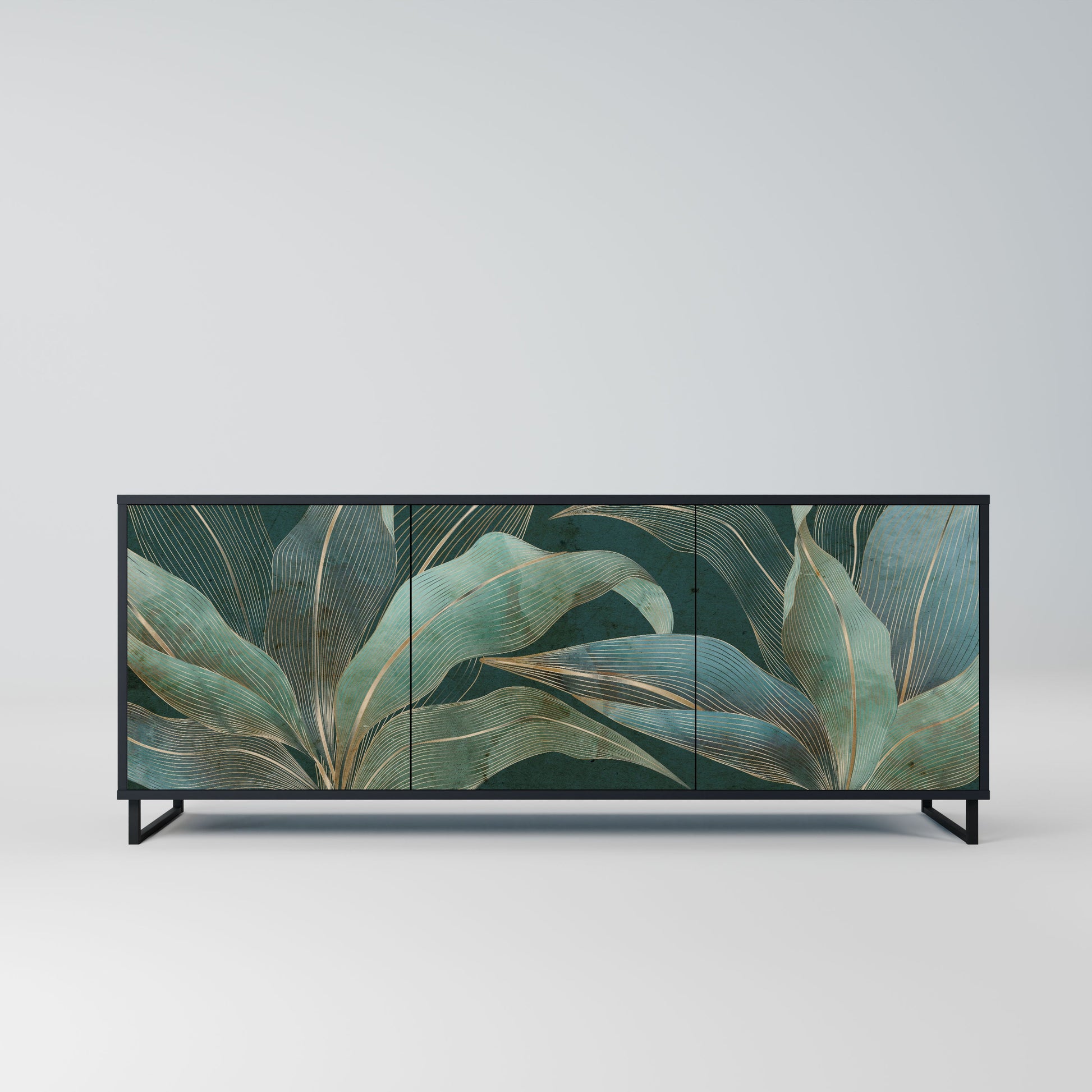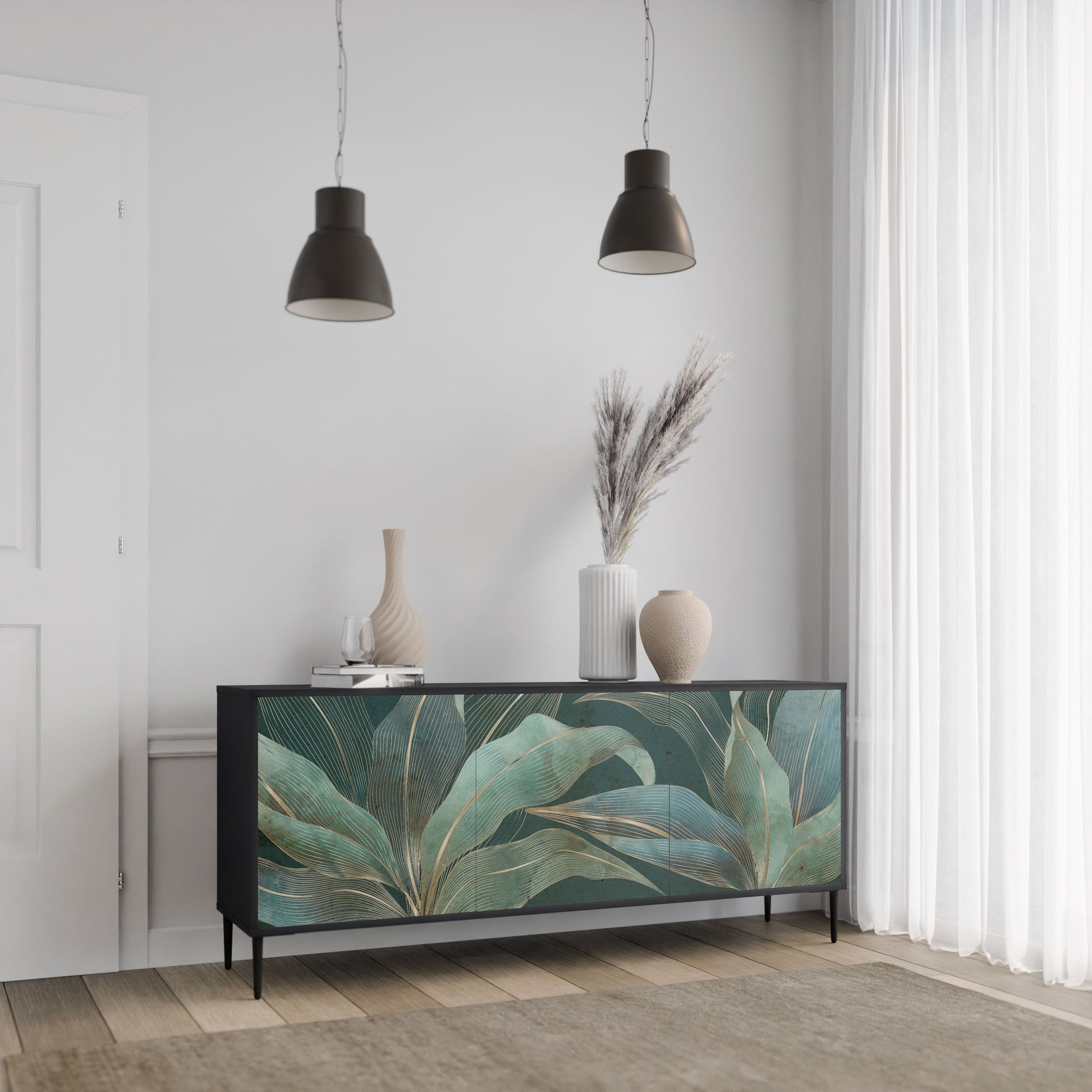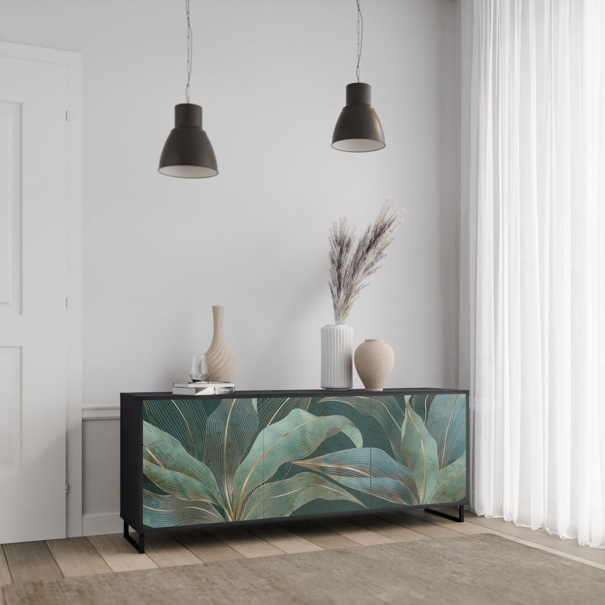 Eleganza e funzionalità in un unico mobile: la nostra credenza a 3 ante con corpo nero è la soluzione perfetta per gli amanti degli interni eleganti e moderni. Il corpo nero enfatizza il carattere audace del mobile, mentre i frontali con una stampa unica aggiungono un tocco artistico. Si adatta perfettamente al soggiorno, alla camera da letto o all'ufficio, completando sia gli arrangiamenti moderni che quelli industriali.