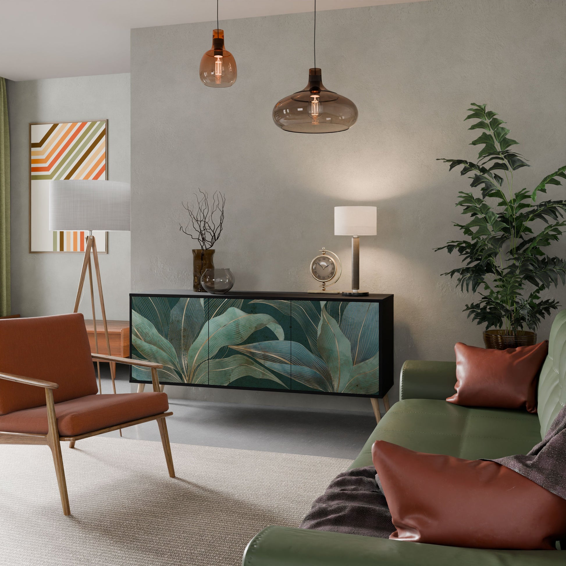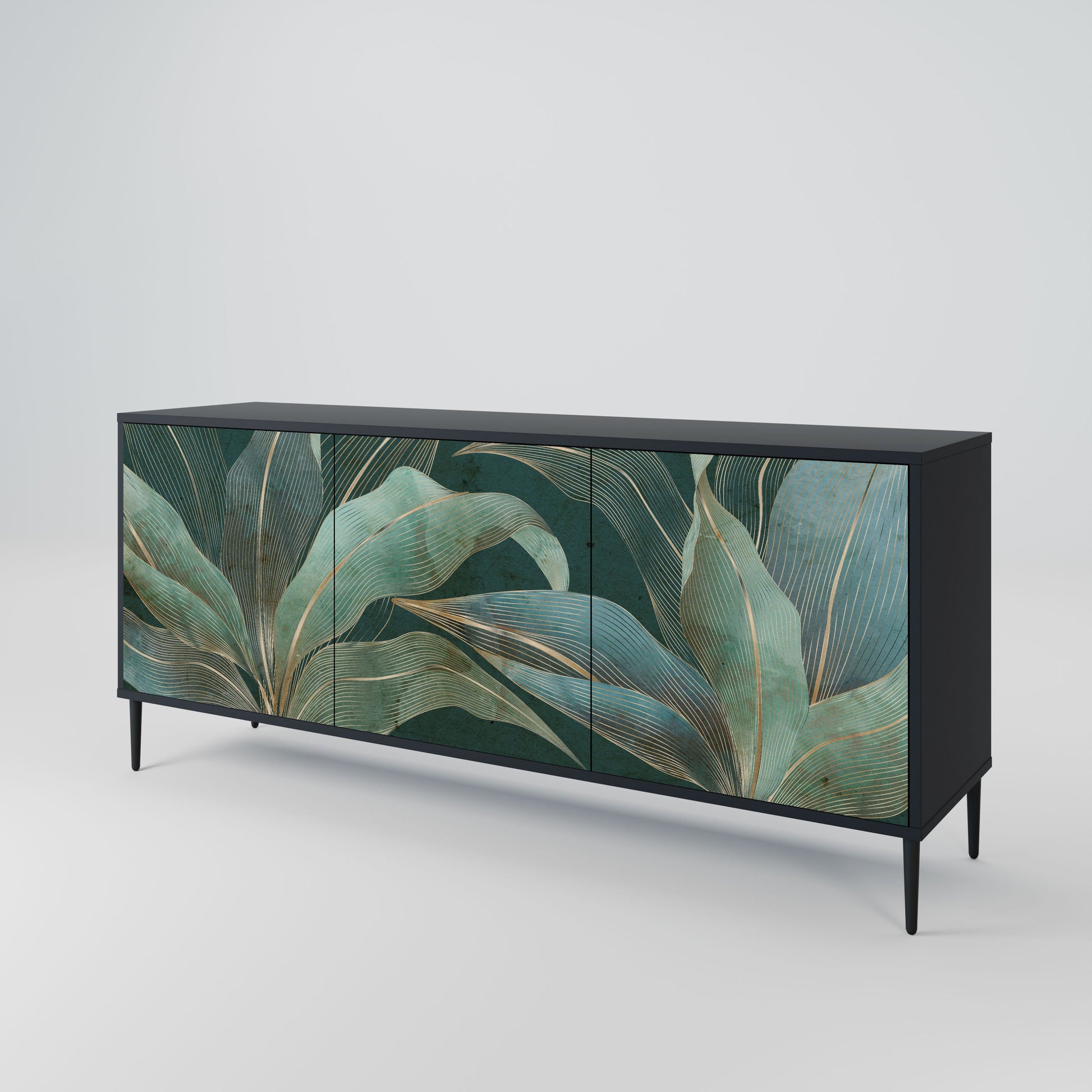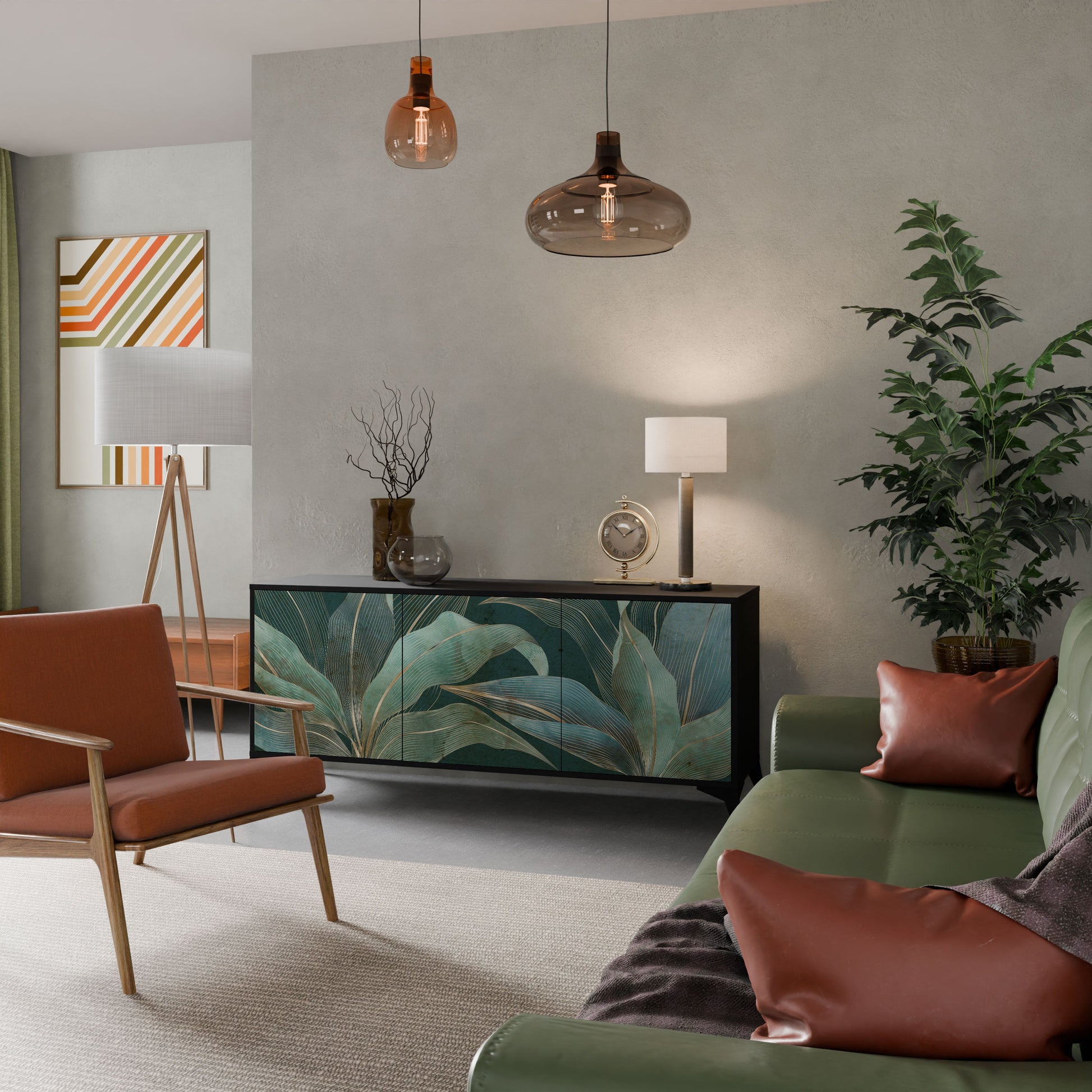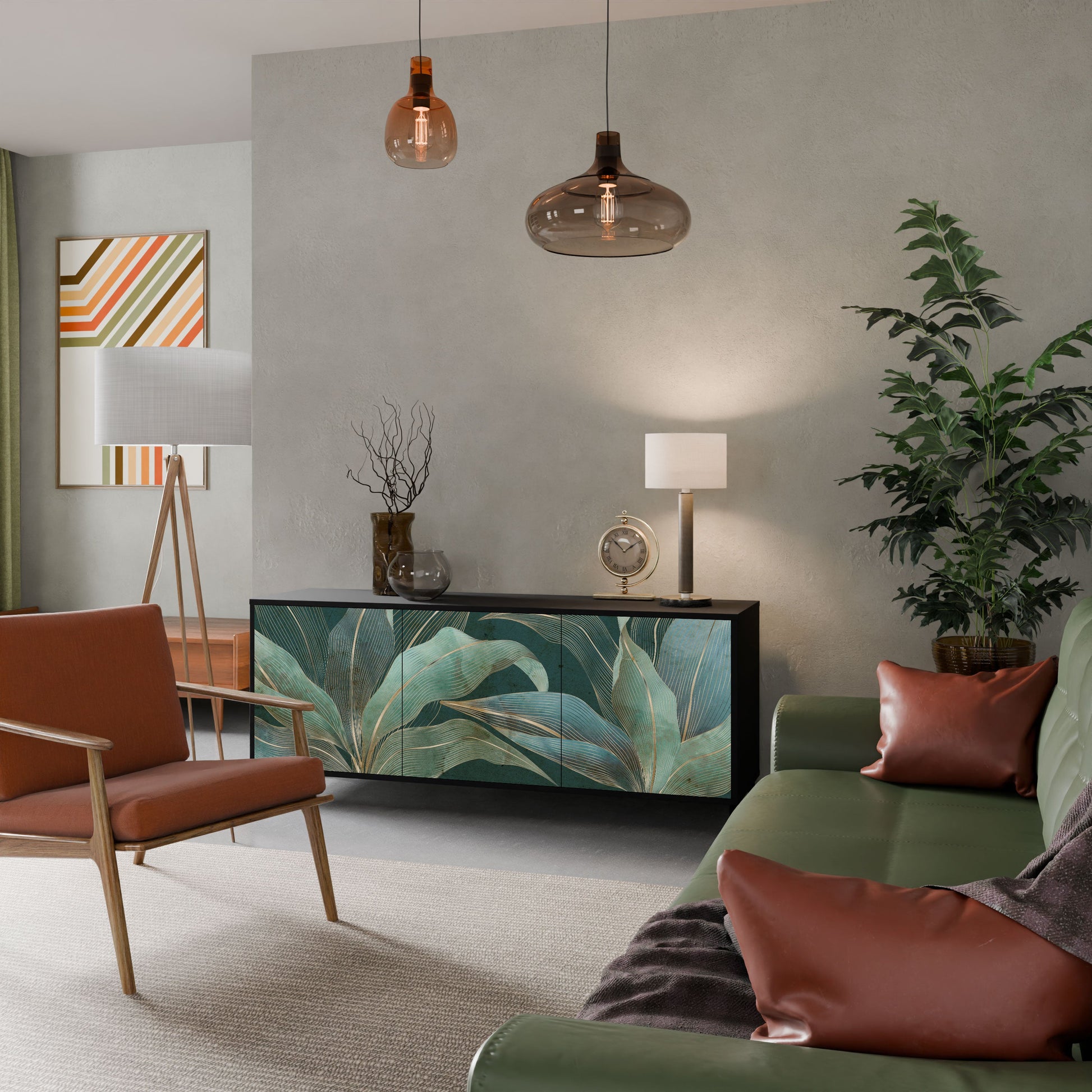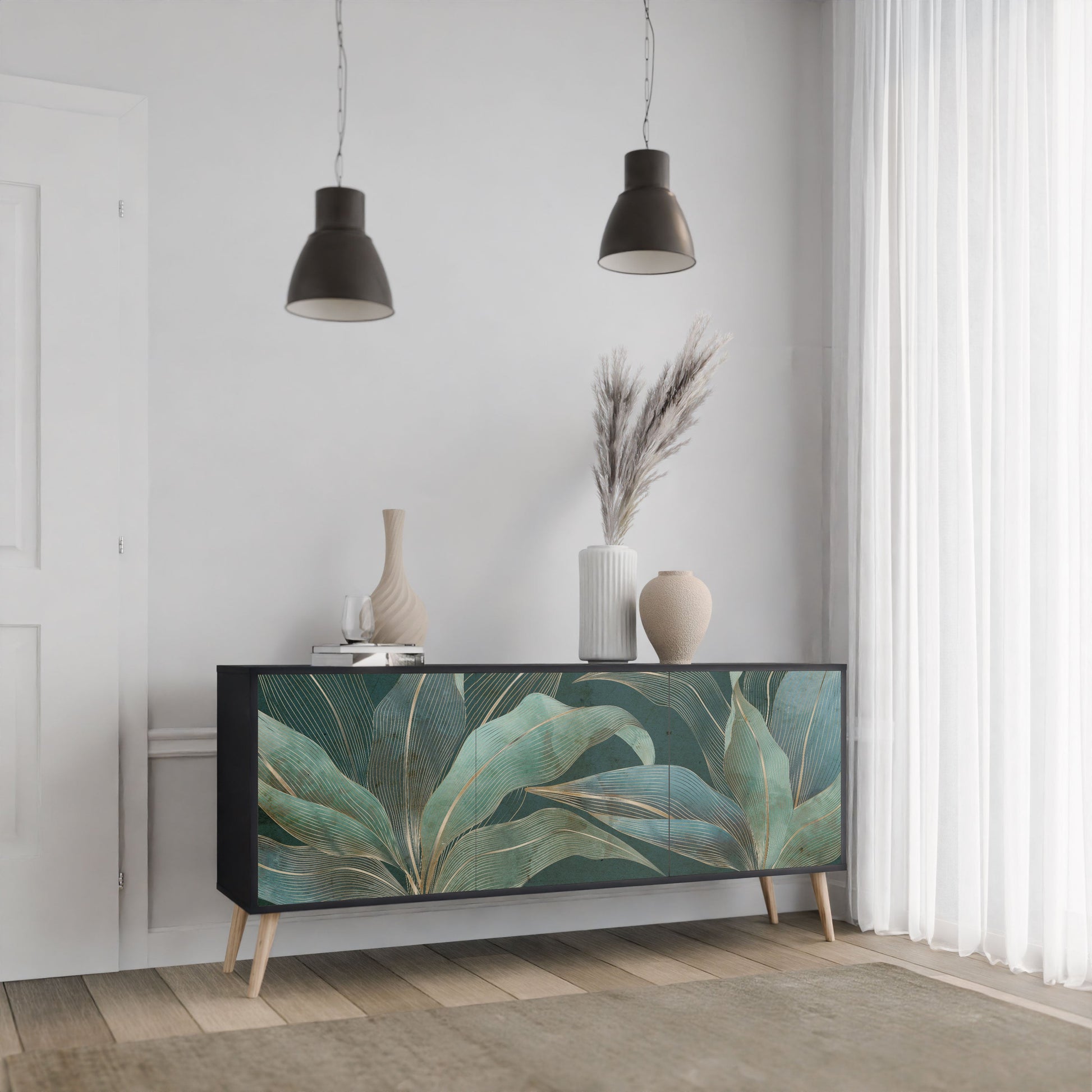 Eleganza e funzionalità in un unico mobile: la nostra credenza a 3 ante con corpo nero è la soluzione perfetta per gli amanti degli interni eleganti e moderni. Il corpo nero enfatizza il carattere audace del mobile, mentre i frontali con una stampa unica aggiungono un tocco artistico. Si adatta perfettamente al soggiorno, alla camera da letto o all'ufficio, completando sia gli arrangiamenti moderni che quelli industriali.