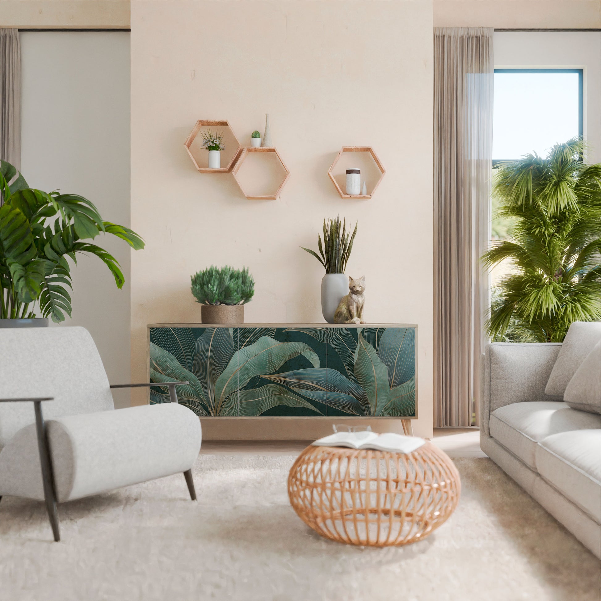 Scopri l'eleganza e la bellezza naturale del legno con la nostra credenza a 3 ante in finitura rovere. Questo pezzo elegante unisce la robustezza di un corpo in legno al dettaglio estetico delle ante anteriori stampate, creando un design coerente e attraente. Perfetta sia per il soggiorno che per la camera da letto, questa credenza aggiunge un tocco di classe e funzionalità a qualsiasi interno.