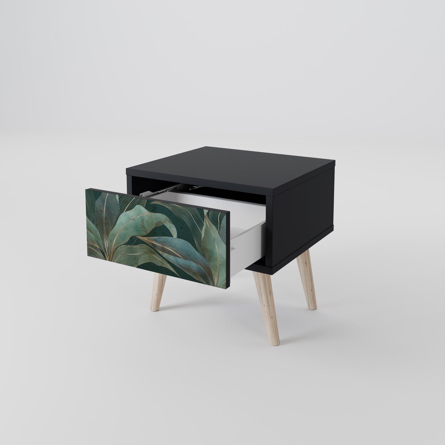 Scoprite raffinatezza e praticità in un design compatto con il nostro comodino con cassetto in un'elegante finitura nera. Questo mobile elegante e funzionale fonde stile contemporaneo e design minimalista, diventando un'aggiunta di grande impatto a qualsiasi camera da letto.