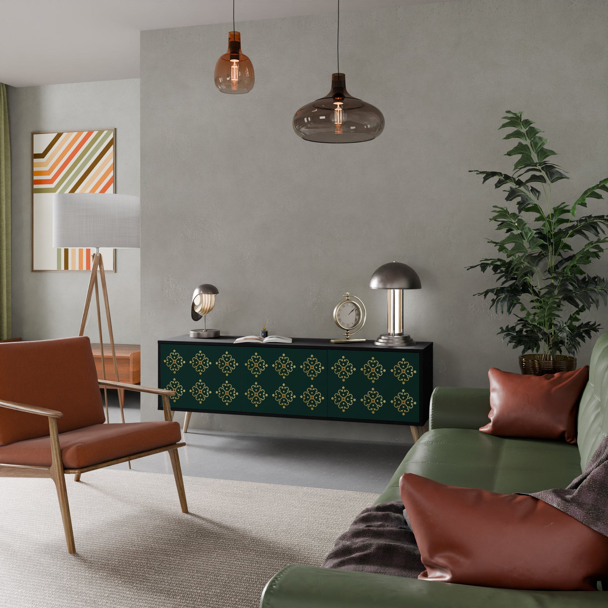 Il corpo nero del supporto crea un accento audace e moderno che si abbina magnificamente ad allestimenti industriali e minimalisti. I frontali con una stampa di design aggiungono carattere e unicità, rendendo questo pezzo non solo pratico ma anche un elemento decorativo di spicco.