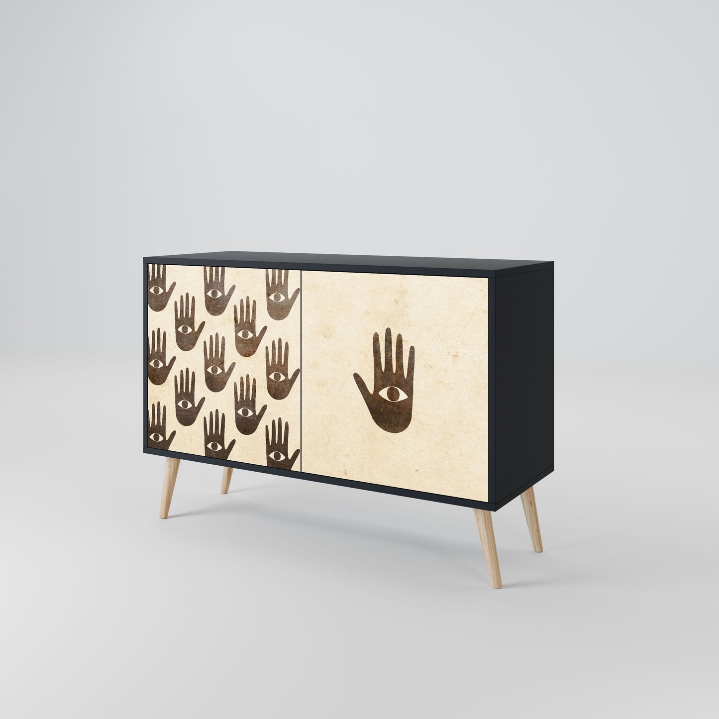 Eleganza e funzionalità in un unico mobile: la nostra credenza a 2 ante con corpo nero è la soluzione perfetta per gli amanti degli interni eleganti e moderni. Il corpo nero enfatizza il carattere audace del mobile, mentre i frontali con una stampa unica aggiungono un tocco artistico. Si adatta perfettamente al soggiorno, alla camera da letto o all'ufficio, completando sia gli arrangiamenti moderni che quelli industriali.