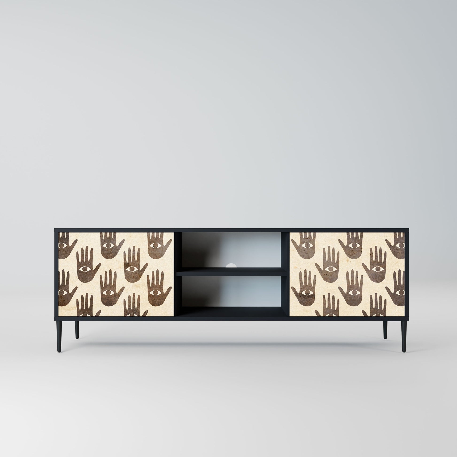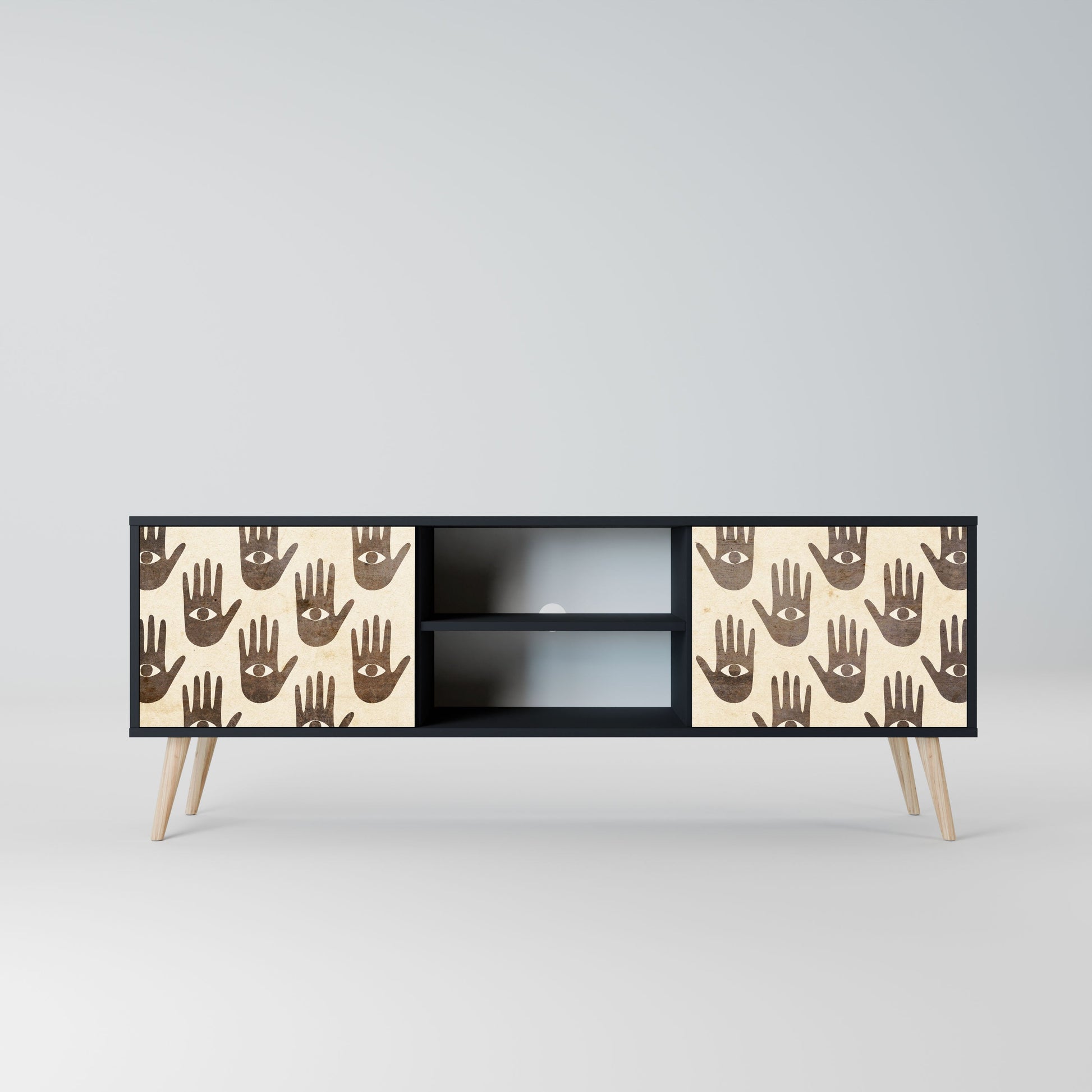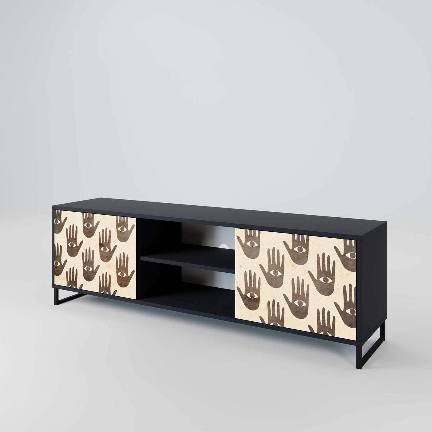 Il corpo nero conferisce al mobile TV un aspetto elegante e moderno, mentre i frontali con una stampa eccezionale attirano l'attenzione, rendendolo il punto focale di ogni stanza. L'interno spazioso offre spazio per dispositivi elettronici, cavi, telecomandi e altri accessori, aiutandoti a mantenere ordine e organizzazione.