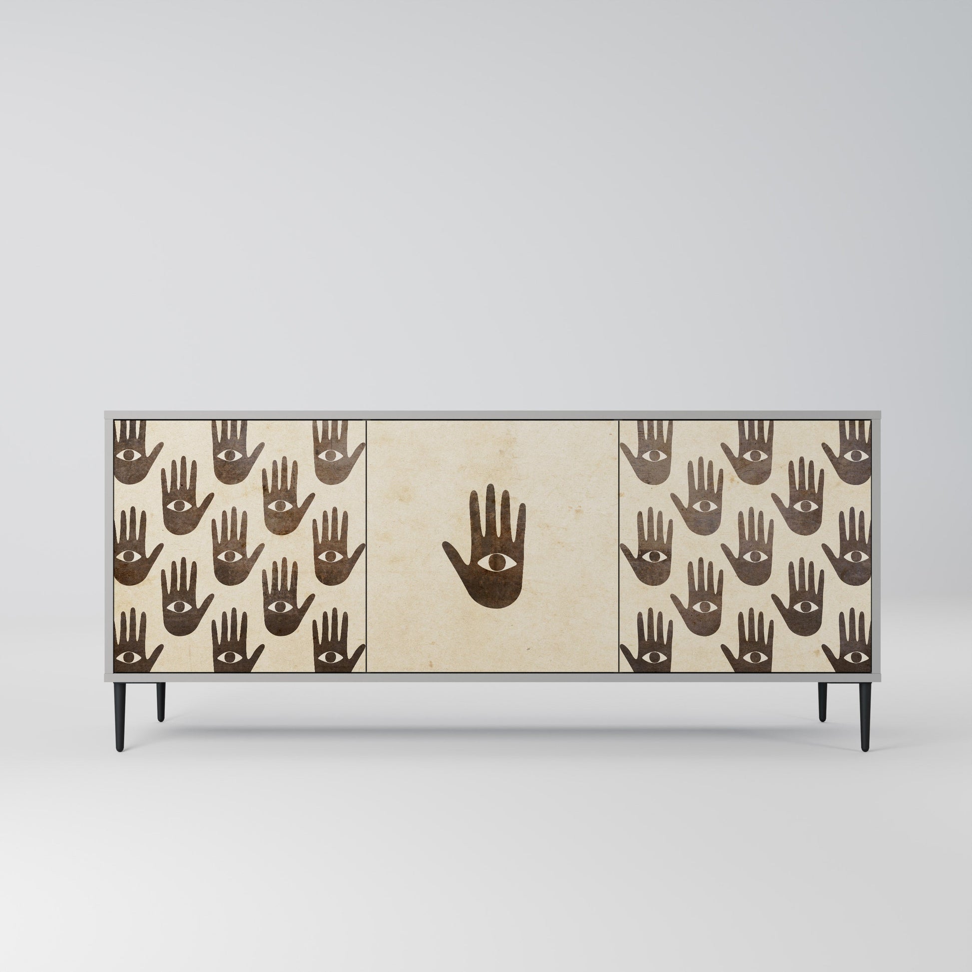 Eleganza e funzionalità in un unico mobile: la nostra credenza a 3 ante con struttura grigia è la soluzione perfetta per gli amanti degli interni eleganti e moderni. La struttura grigia enfatizza il carattere raffinato del mobile, mentre i frontali con una stampa esclusiva aggiungono un tocco artistico. Si adatta perfettamente al soggiorno, alla camera da letto o all'ufficio, completando sia gli arredi moderni che quelli industriali.