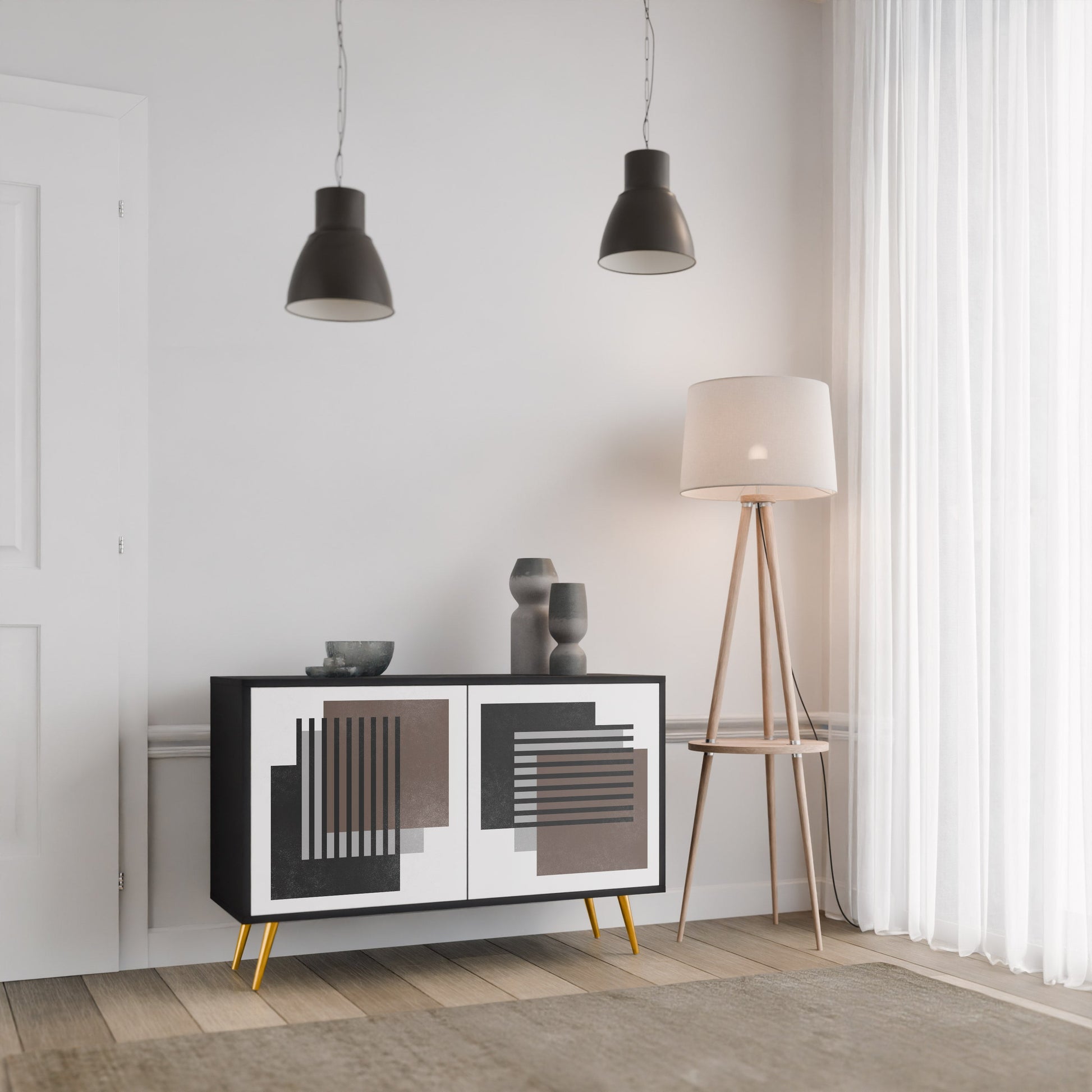 Eleganza e funzionalità in un unico mobile: la nostra credenza a 2 ante con corpo nero è la soluzione perfetta per gli amanti degli interni eleganti e moderni. Il corpo nero enfatizza il carattere audace del mobile, mentre i frontali con una stampa unica aggiungono un tocco artistico. Si adatta perfettamente al soggiorno, alla camera da letto o all'ufficio, completando sia gli arrangiamenti moderni che quelli industriali.