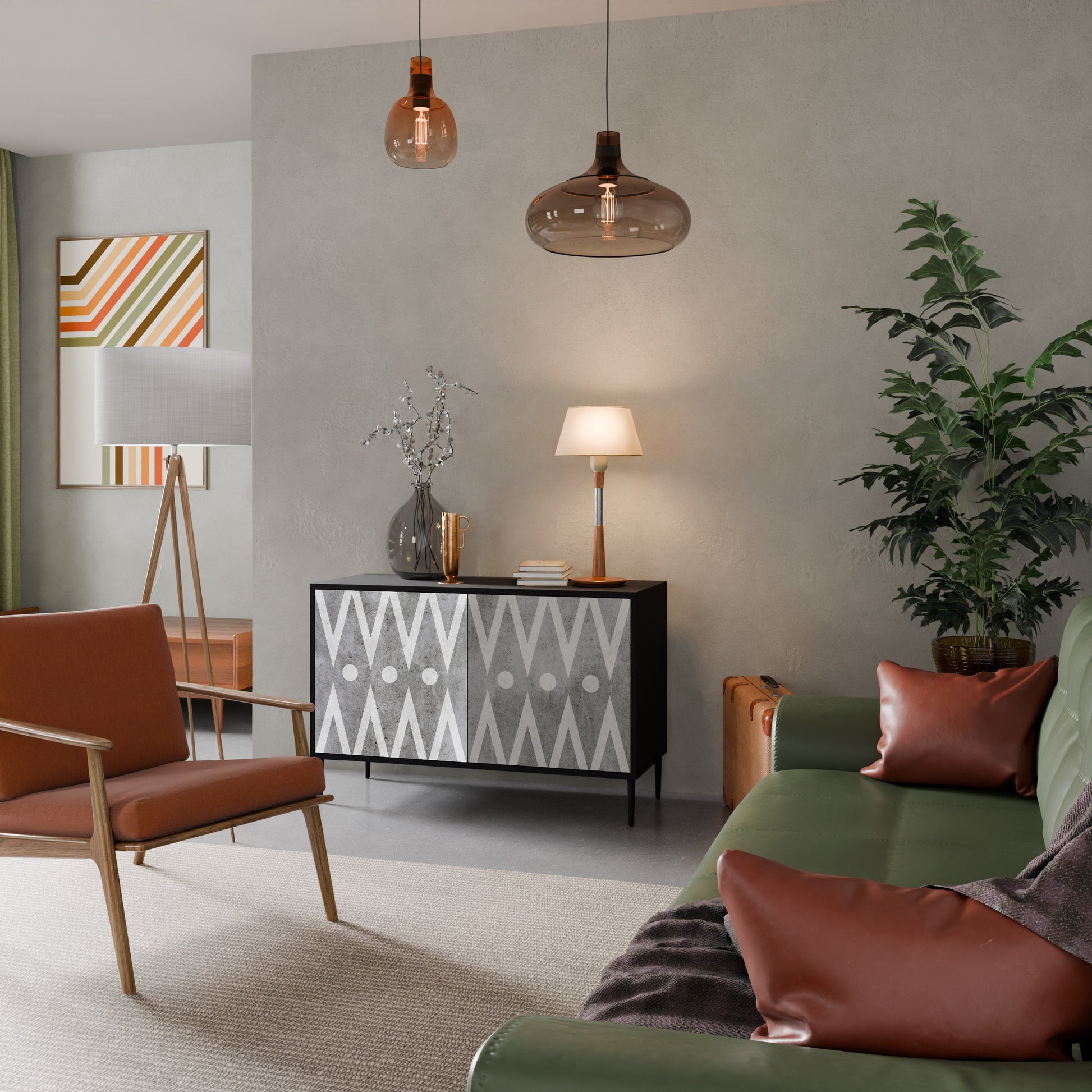 Eleganza e funzionalità in un unico mobile: la nostra credenza a 2 ante con corpo nero è la soluzione perfetta per gli amanti degli interni eleganti e moderni. Il corpo nero enfatizza il carattere audace del mobile, mentre i frontali con una stampa unica aggiungono un tocco artistico. Si adatta perfettamente al soggiorno, alla camera da letto o all'ufficio, completando sia gli arrangiamenti moderni che quelli industriali.