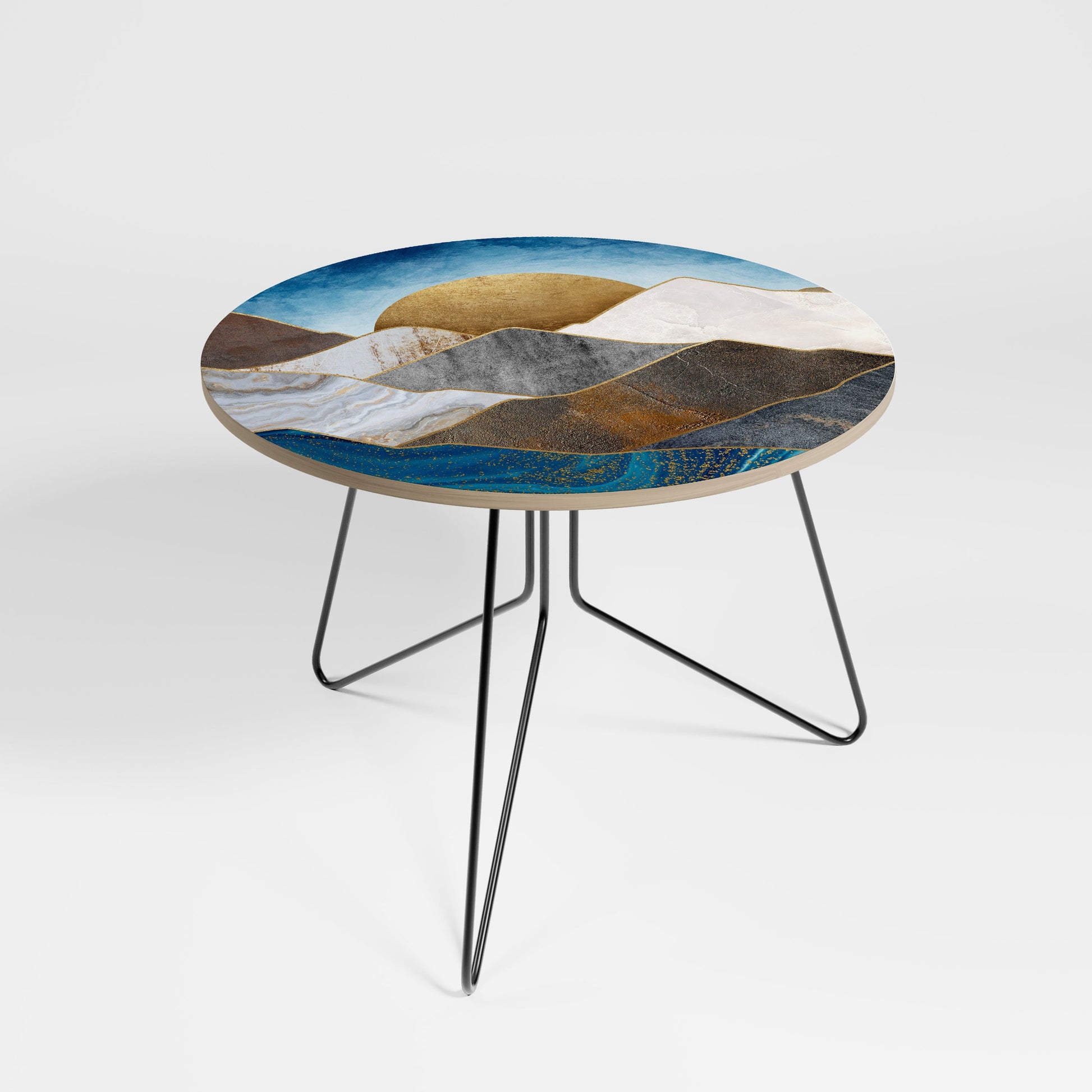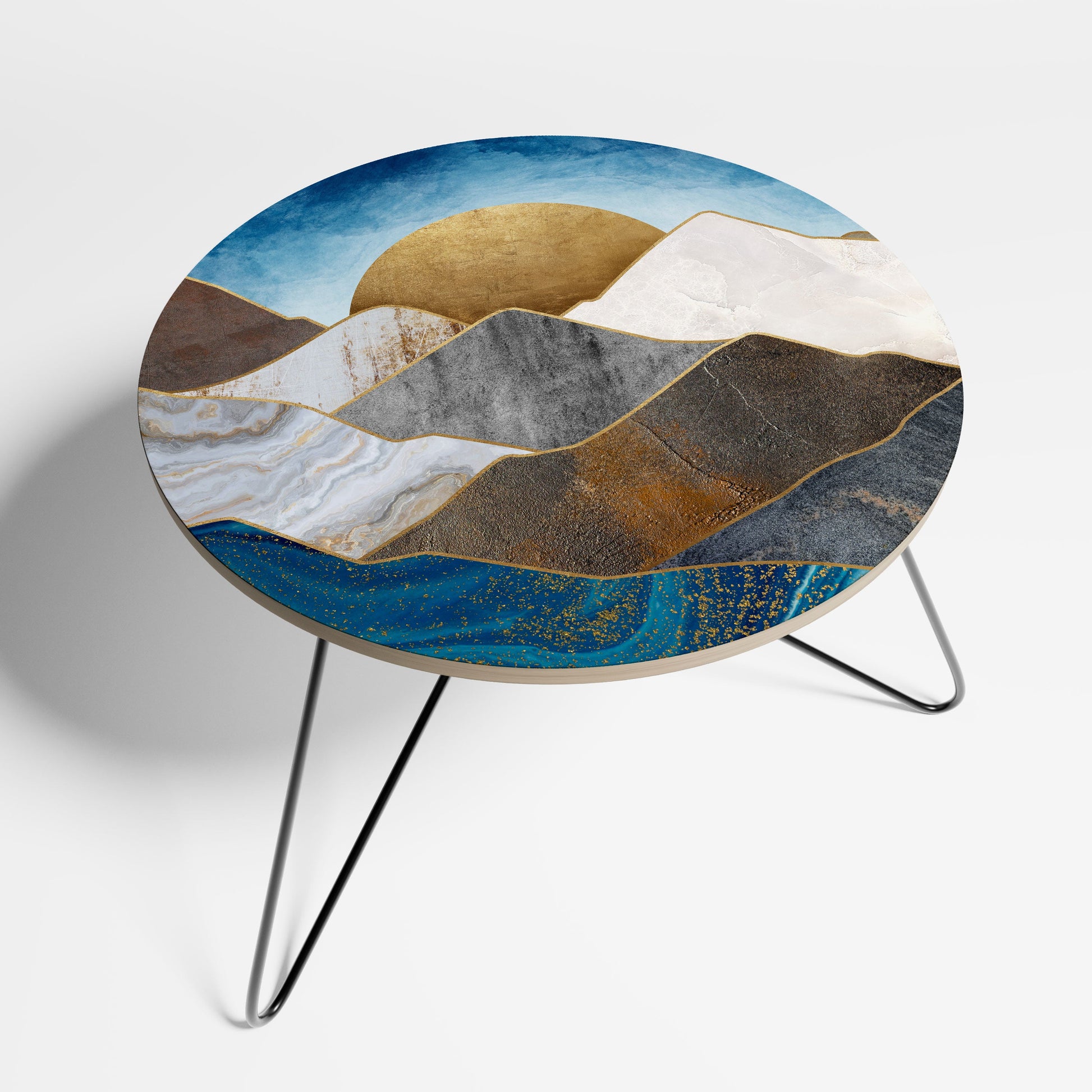 Il piano del tavolo presenta un motivo stampato di alta qualità, che aggiunge un tocco artistico distintivo al tuo spazio. Realizzato in resistente truciolato rivestito in laminato, garantisce un utilizzo duraturo e resistenza all'usura quotidiana.