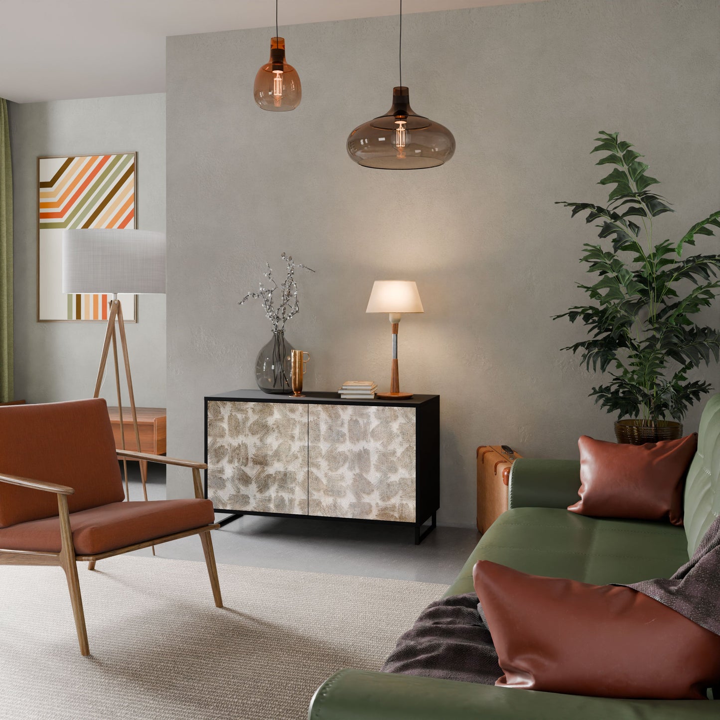 Eleganza e funzionalità in un unico mobile: la nostra credenza a 2 ante con corpo nero è la soluzione perfetta per gli amanti degli interni eleganti e moderni. Il corpo nero enfatizza il carattere audace del mobile, mentre i frontali con una stampa unica aggiungono un tocco artistico. Si adatta perfettamente al soggiorno, alla camera da letto o all'ufficio, completando sia gli arrangiamenti moderni che quelli industriali.