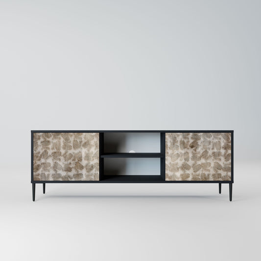 Il corpo nero conferisce al mobile TV un aspetto elegante e moderno, mentre i frontali con una stampa eccezionale attirano l'attenzione, rendendolo il punto focale di ogni stanza. L'interno spazioso offre spazio per dispositivi elettronici, cavi, telecomandi e altri accessori, aiutandoti a mantenere ordine e organizzazione.