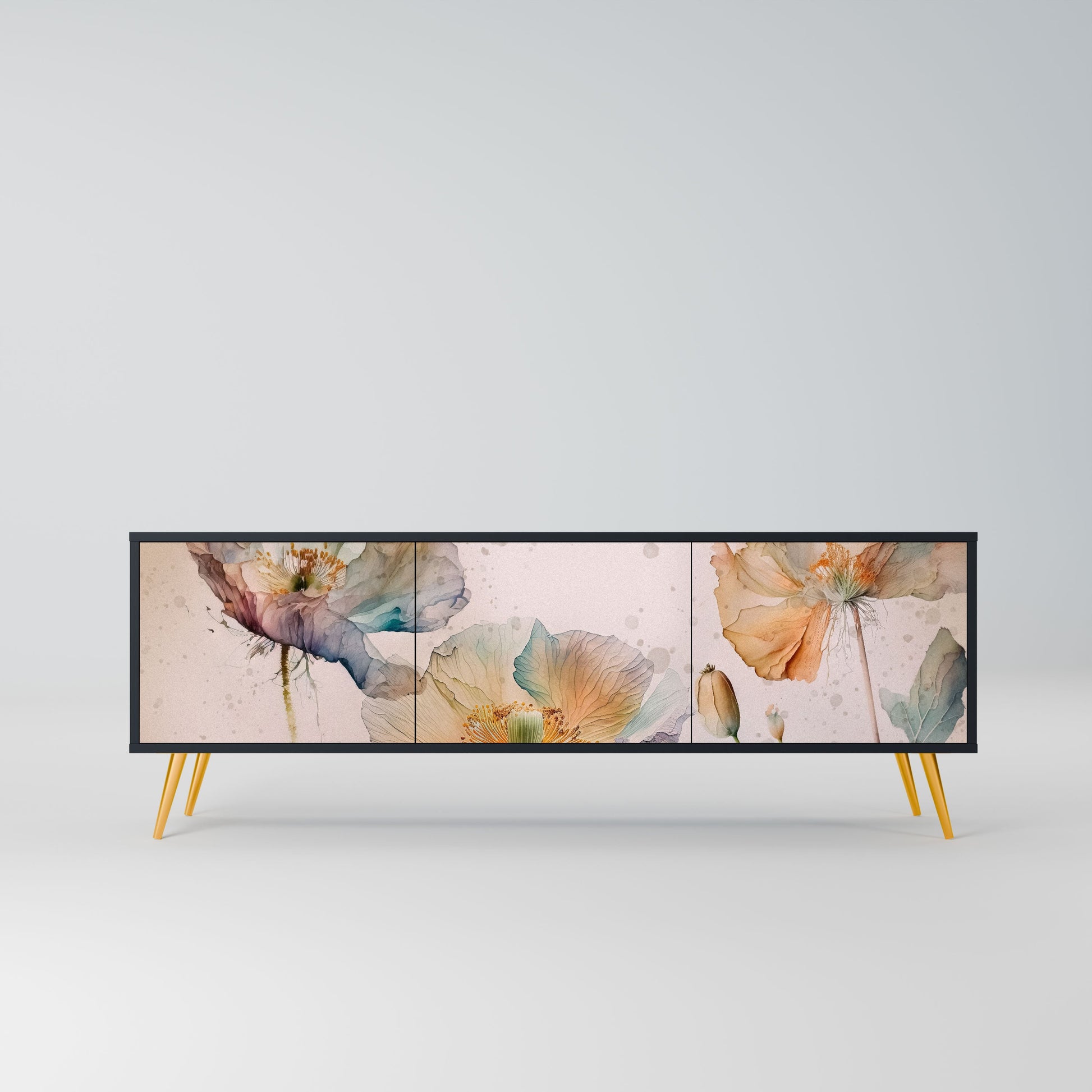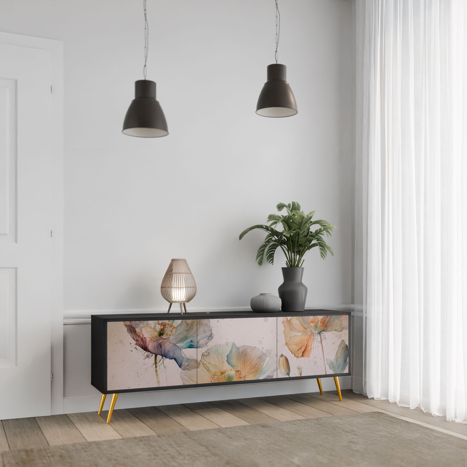 Mobile TV SOFTEN POPPY a 3 ante con finitura nera
