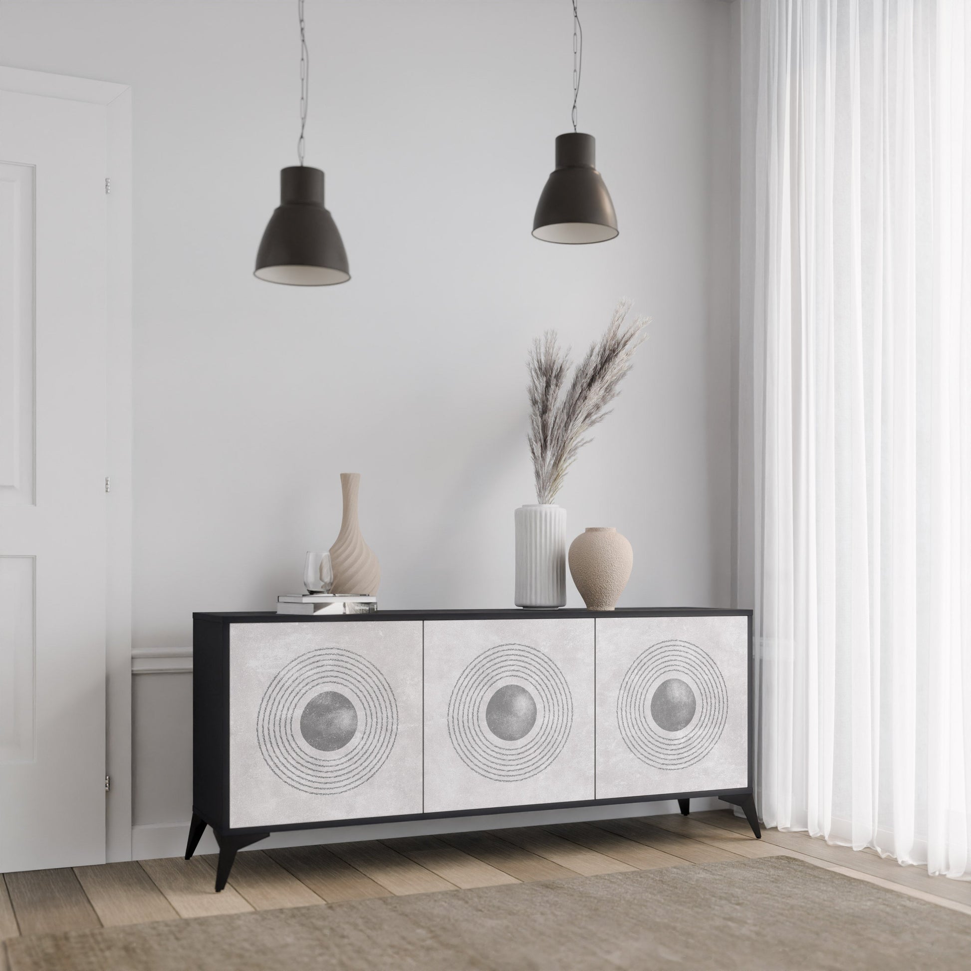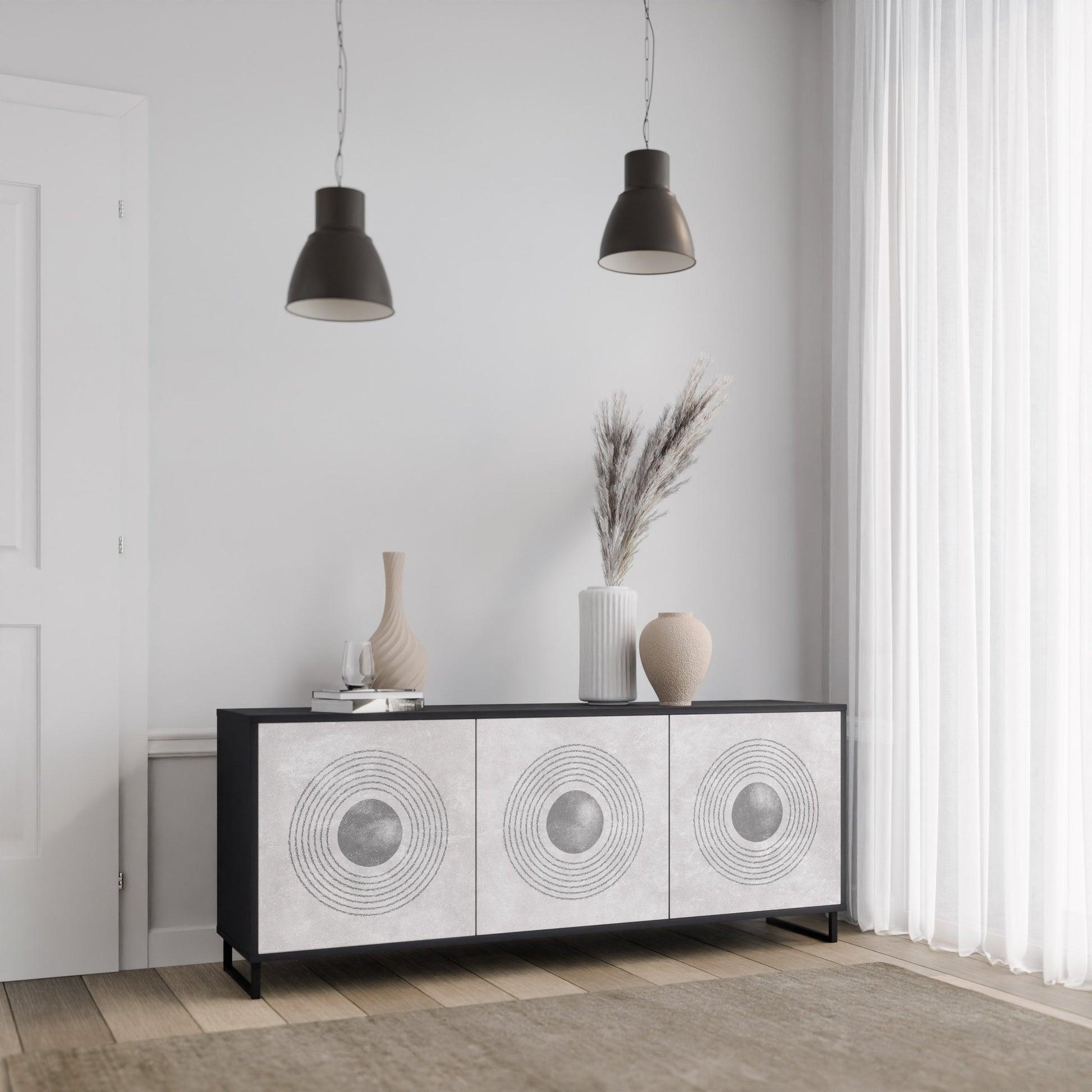 Credenza a 3 ante SOLID CIRCLES in finitura nera