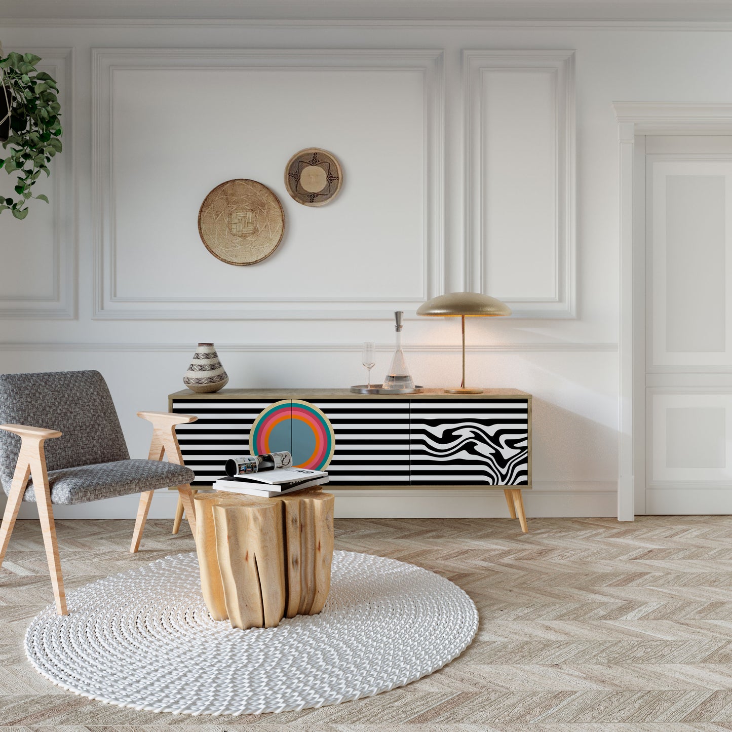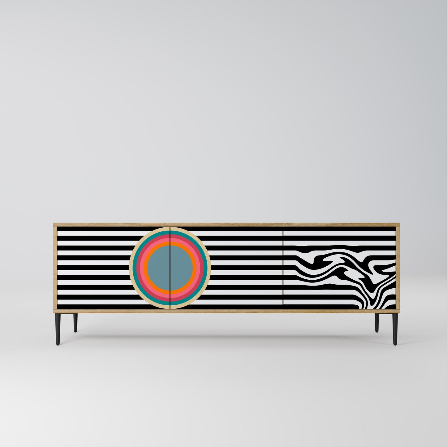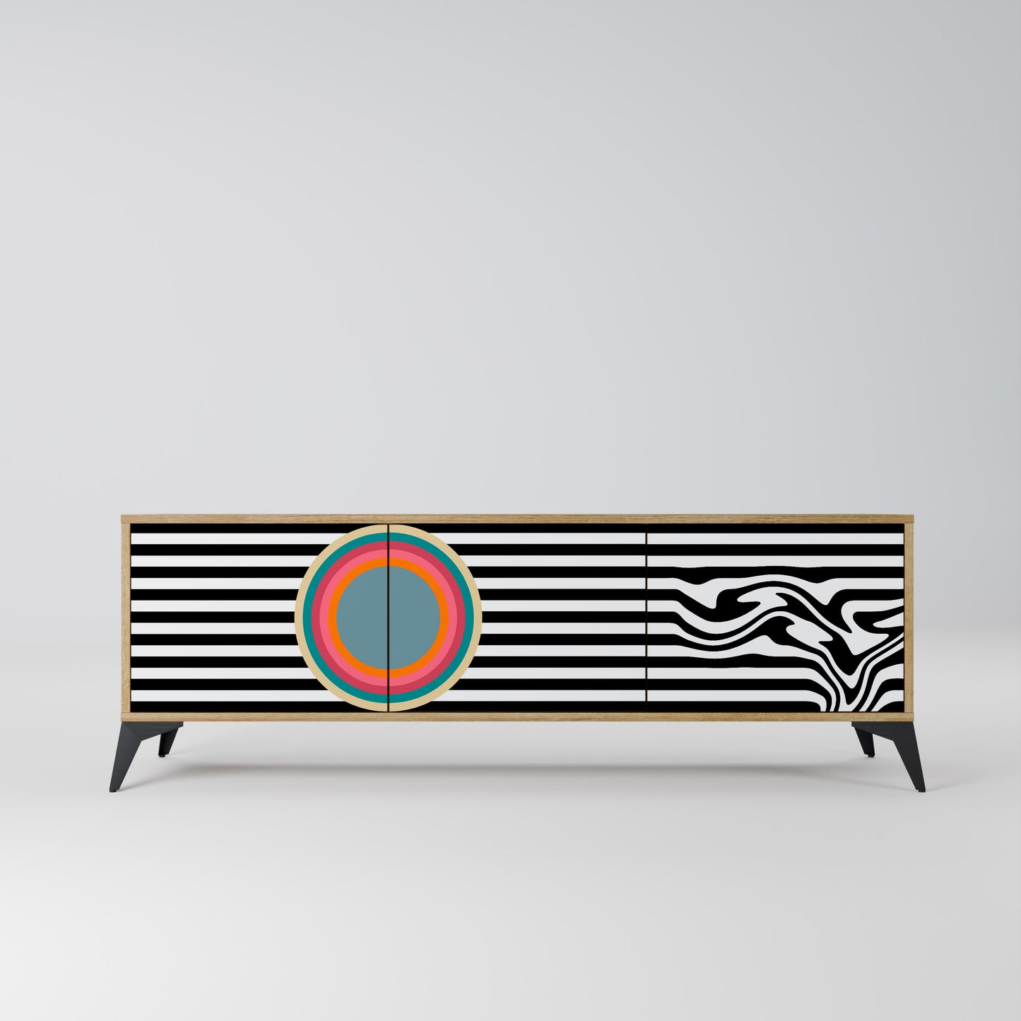 Scopri la soluzione perfetta per riporre e organizzare con il nostro mobile TV a 3 ante. Realizzato con materiali resistenti, che combinano gambe in legno con un corpo laminato, questo mobile è sia elegante che funzionale. Le ante in legno con una stampa accattivante aggiungono un tocco di eleganza, rendendolo una scelta eccellente per qualsiasi interno.
