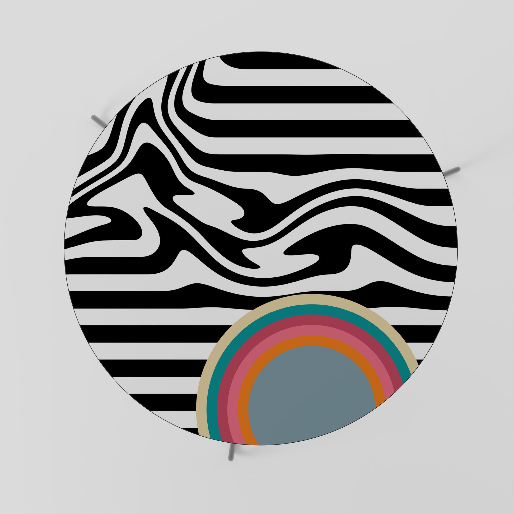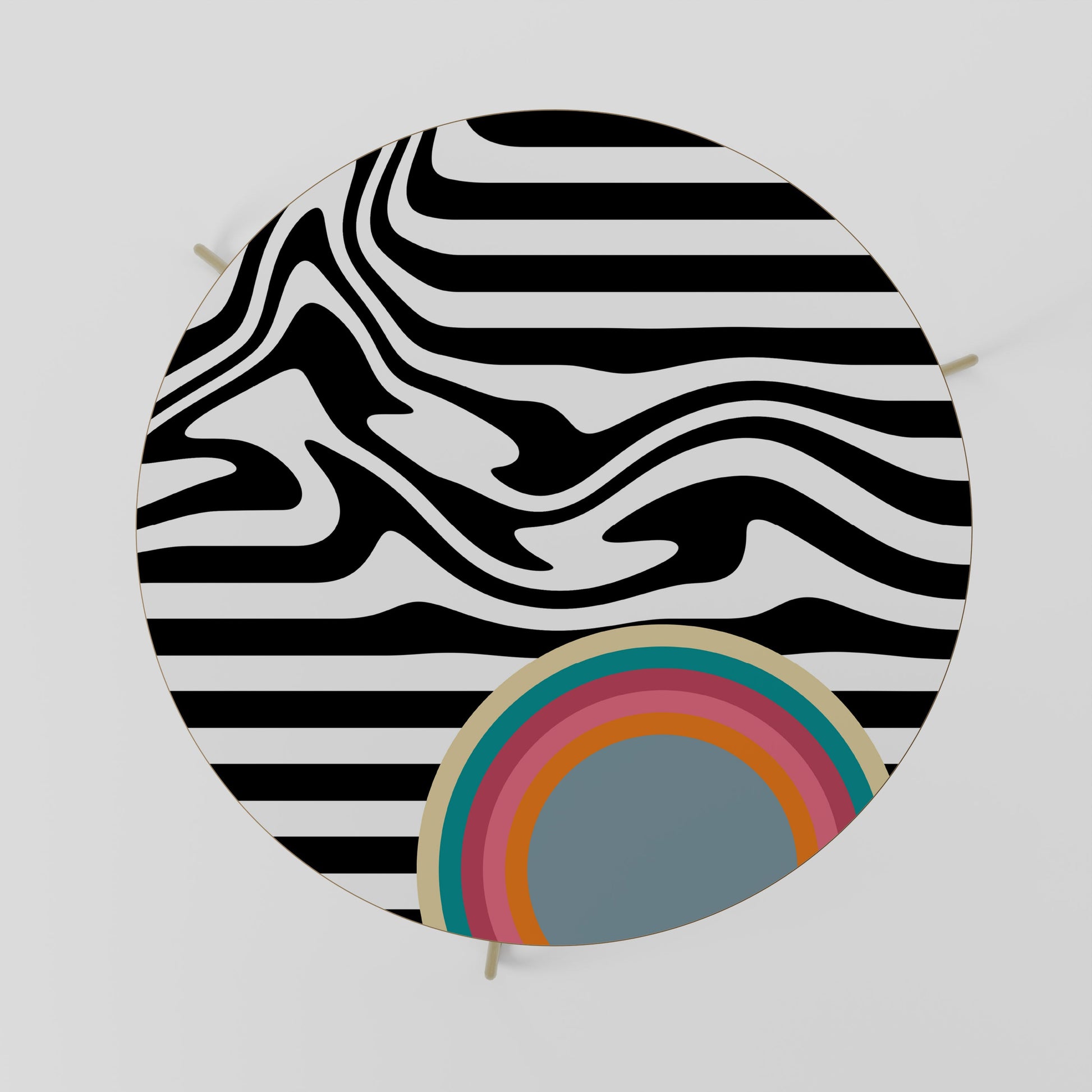 Il piano del tavolo presenta un motivo stampato di alta qualità, che aggiunge un tocco artistico distintivo al tuo spazio. Realizzato in resistente truciolato rivestito in laminato, garantisce un utilizzo duraturo e resistenza all'usura quotidiana.