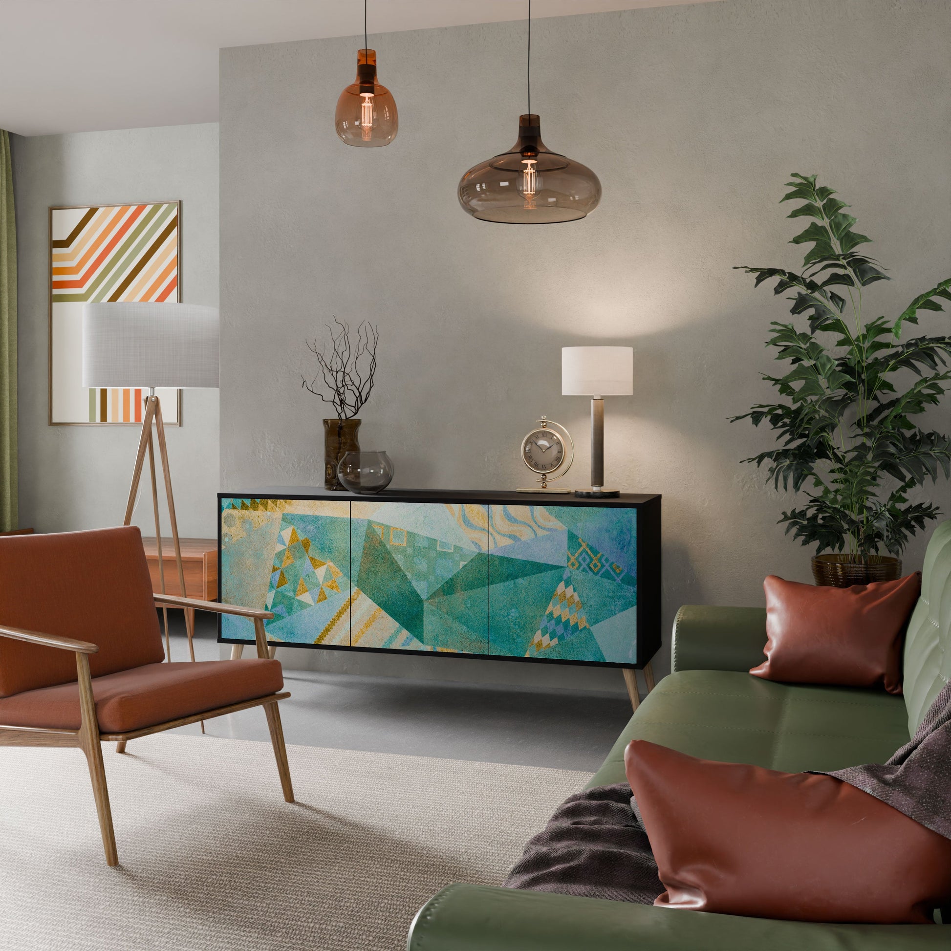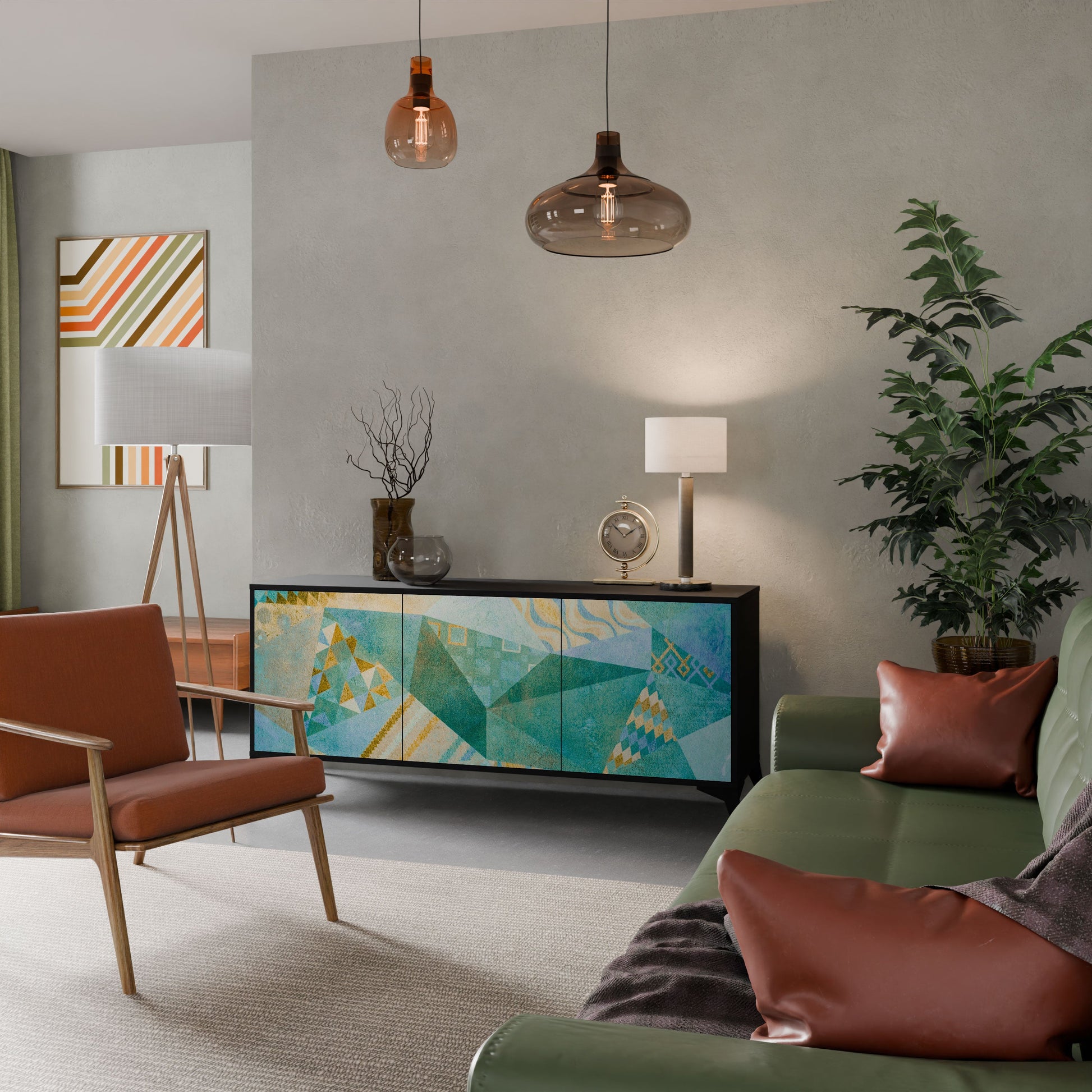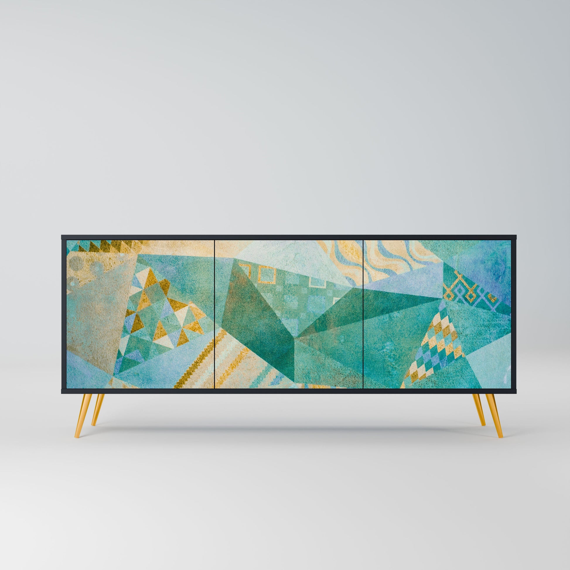 Eleganza e funzionalità in un unico mobile: la nostra credenza a 3 ante con corpo nero è la soluzione perfetta per gli amanti degli interni eleganti e moderni. Il corpo nero enfatizza il carattere audace del mobile, mentre i frontali con una stampa unica aggiungono un tocco artistico. Si adatta perfettamente al soggiorno, alla camera da letto o all'ufficio, completando sia gli arrangiamenti moderni che quelli industriali.