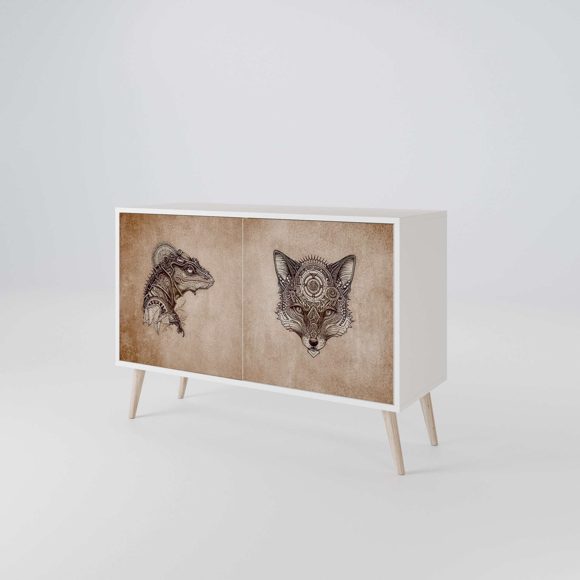 Eleganza e funzionalità in un unico mobile: la nostra madia a 2 ante con corpo bianco è la soluzione perfetta per gli amanti degli interni eleganti e moderni. Il corpo bianco sottolinea il carattere pulito e raffinato del mobile, mentre i frontali con una stampa unica aggiungono un tocco artistico. Si adatta perfettamente al soggiorno, alla camera da letto o all'ufficio, integrandosi con composizioni moderne e scandinave.
