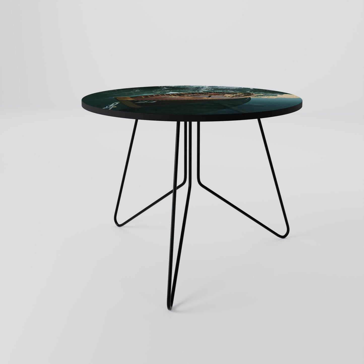 - Gambe con pinna nera / Bordo del tavolo con finitura nera