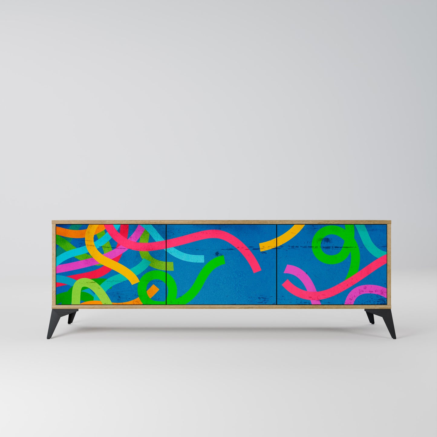 Scopri la soluzione perfetta per riporre e organizzare con il nostro mobile TV a 3 ante. Realizzato con materiali resistenti, che combinano gambe in legno con un corpo laminato, questo mobile è sia elegante che funzionale. Le ante in legno con una stampa accattivante aggiungono un tocco di eleganza, rendendolo una scelta eccellente per qualsiasi interno.