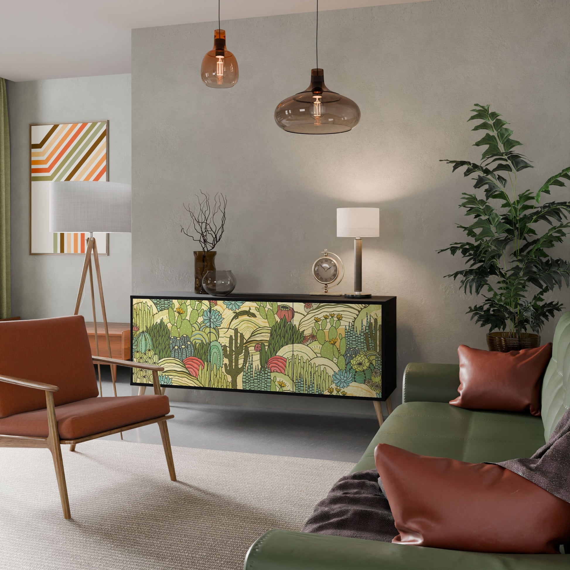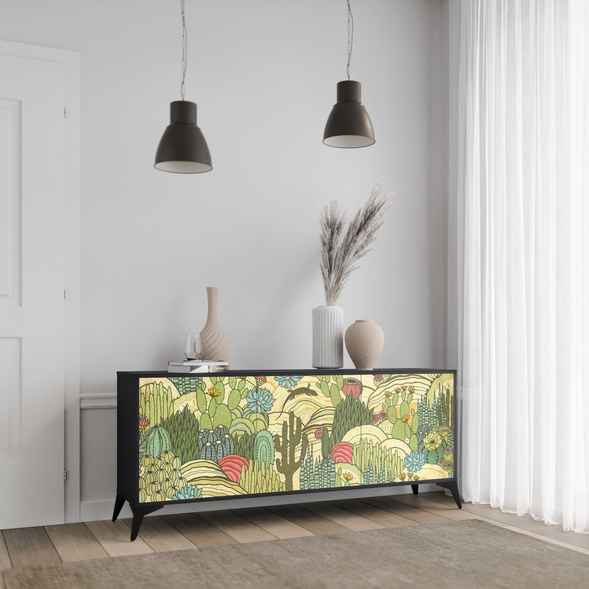 Credenza SUCCULENTS KALEIDOSCOPE a 3 ante in finitura nera
