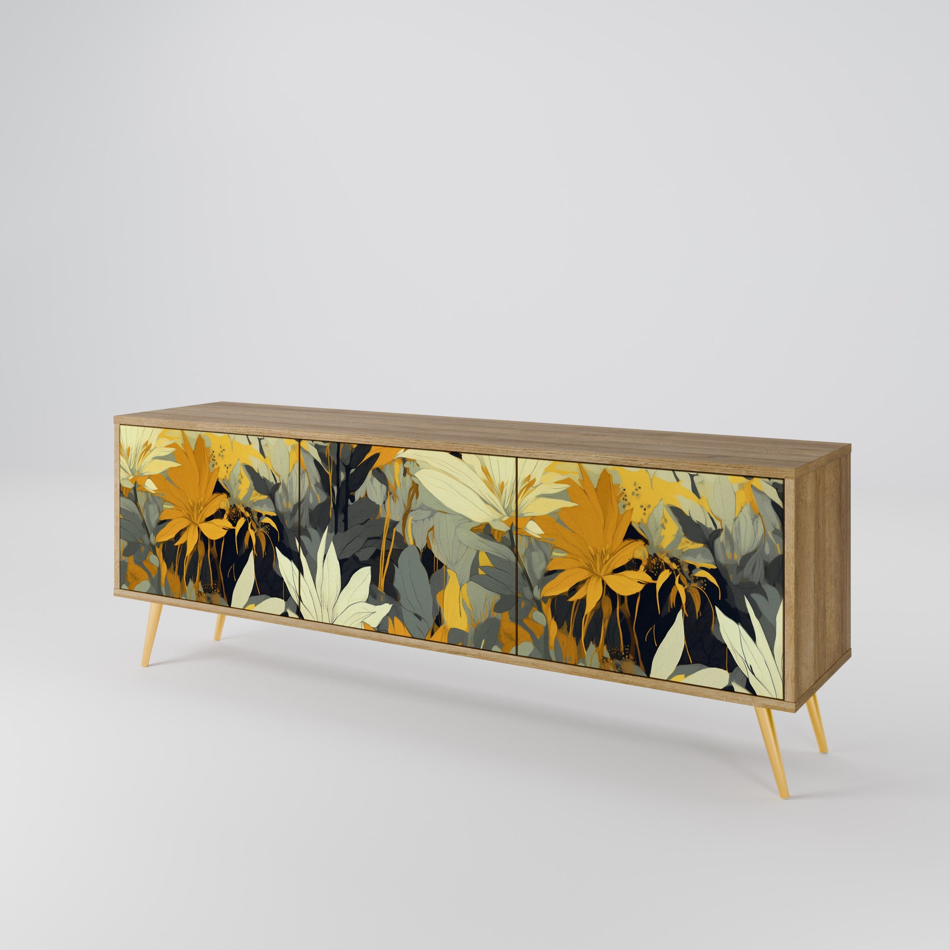 Scopri la soluzione perfetta per riporre e organizzare con il nostro mobile TV a 3 ante. Realizzato con materiali resistenti, che combinano gambe in legno con un corpo laminato, questo mobile è sia elegante che funzionale. Le ante in legno con una stampa accattivante aggiungono un tocco di eleganza, rendendolo una scelta eccellente per qualsiasi interno.